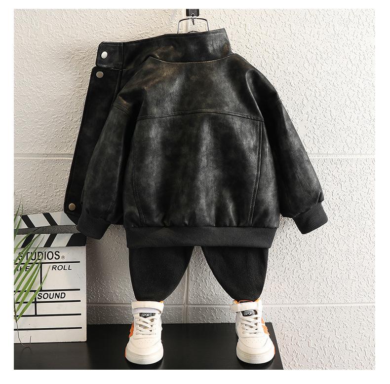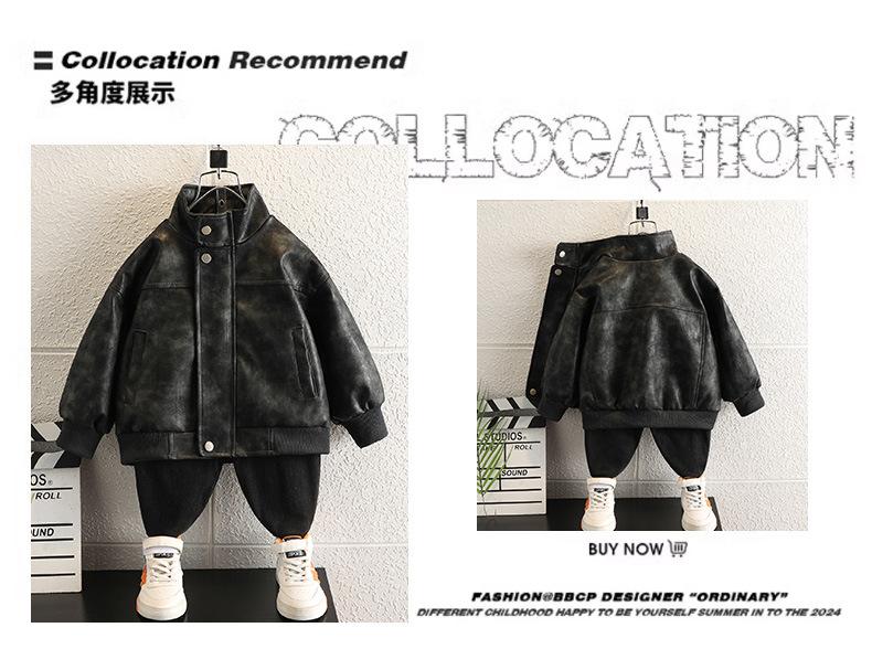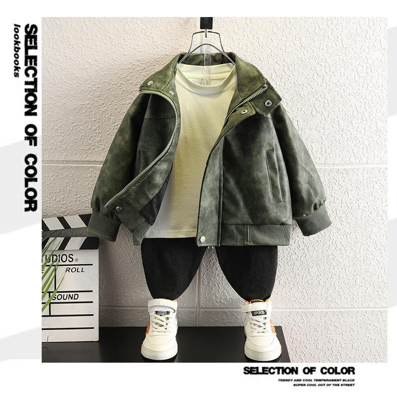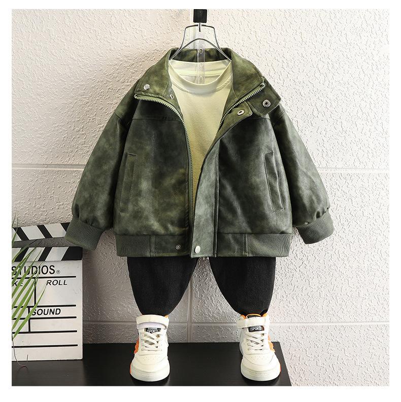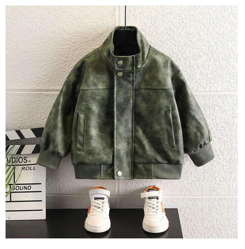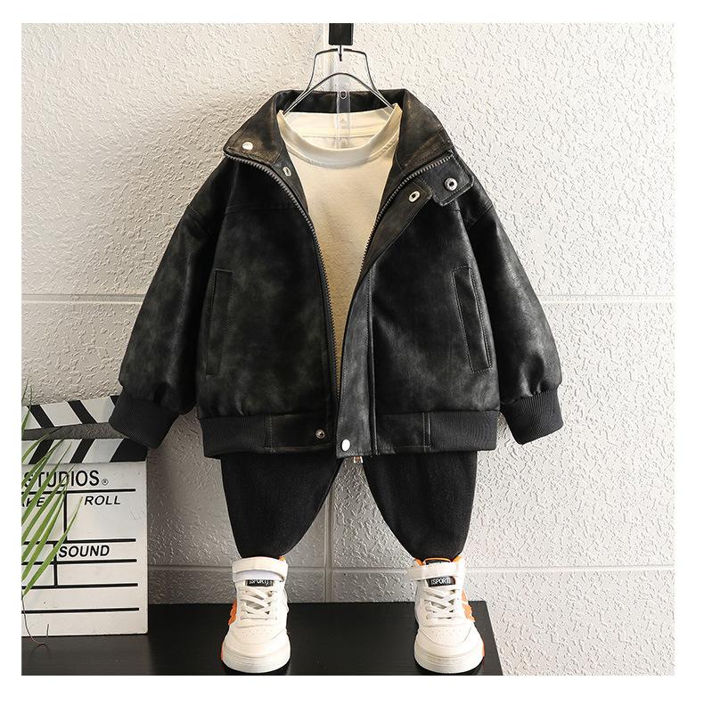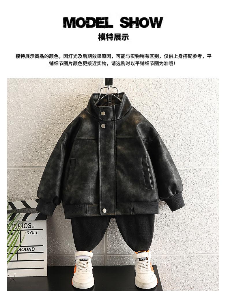 Yipi, chicos guapos, otoño 2024, cuero, nueva ropa infantil de estilo extranjero, abrigo de motocicleta de calle frita de moda para bebés, primavera y otoño