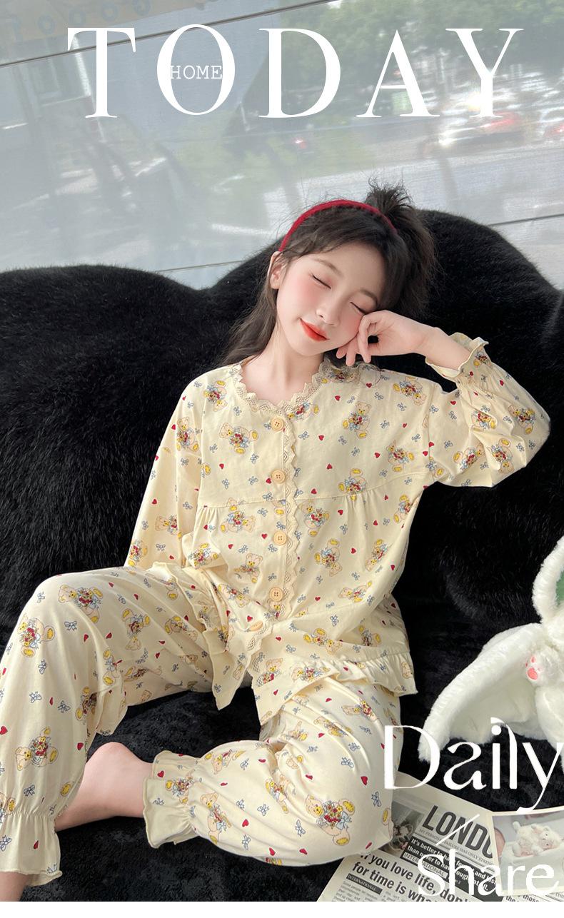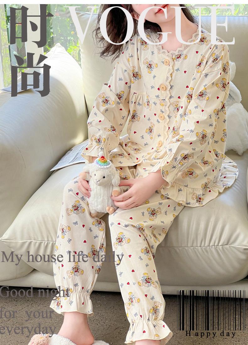 Pijamas para niños Algodón puro Estilo coreano Primavera y otoño Manga larga Niñas 2024 Nuevo Algodón Categoría a Ropa de casa europea y americana para niños grandes