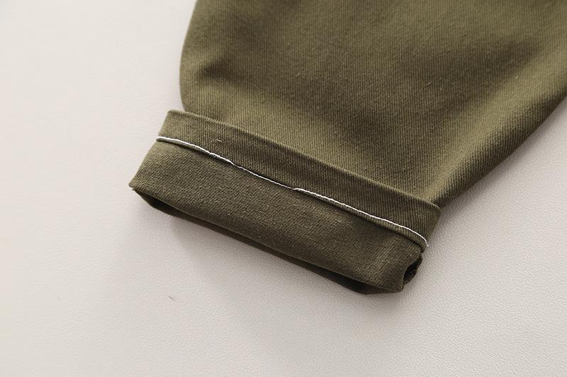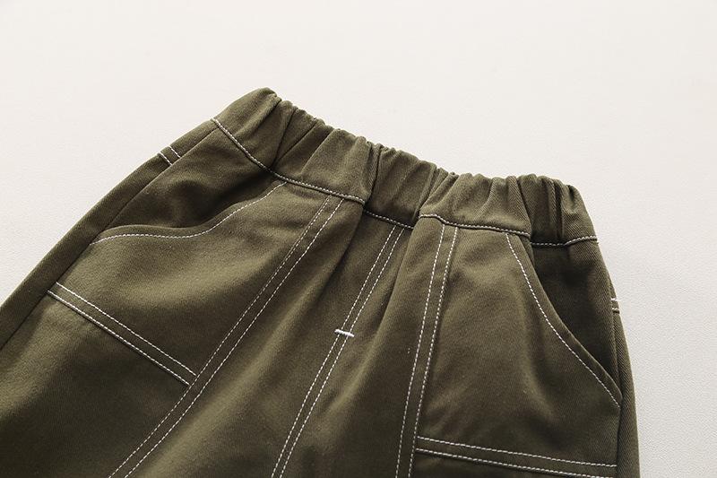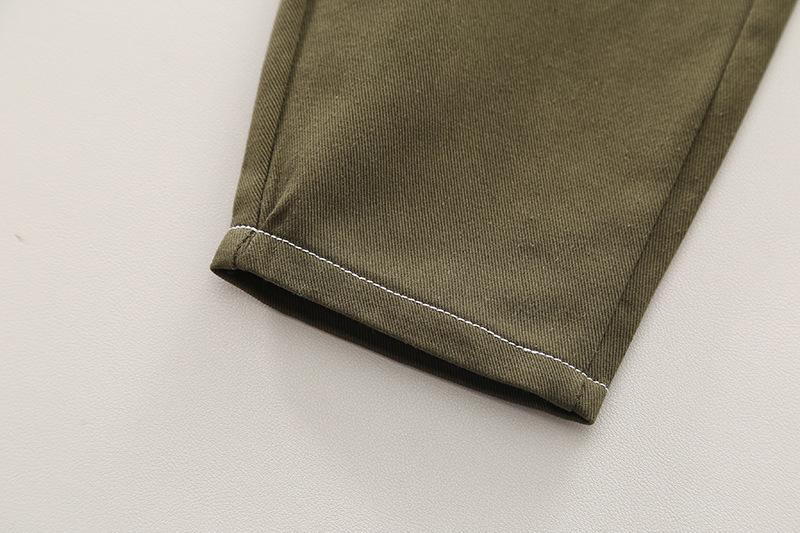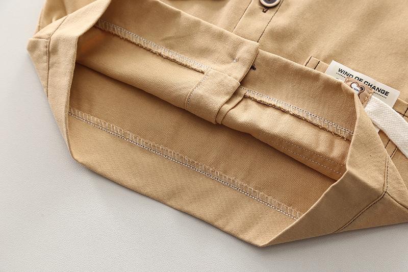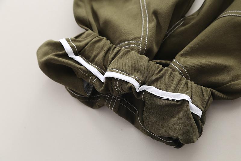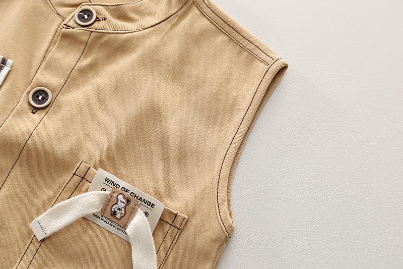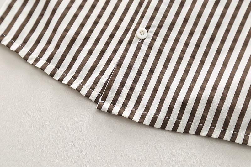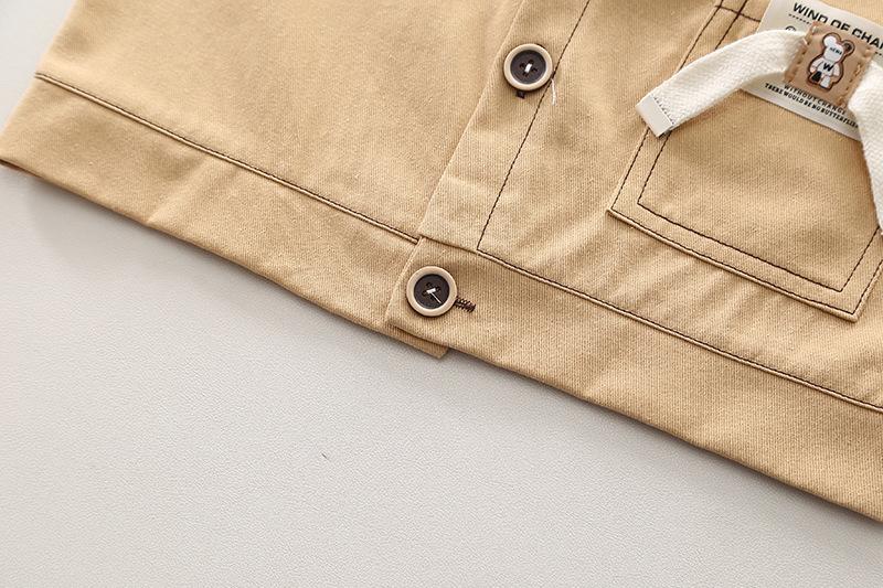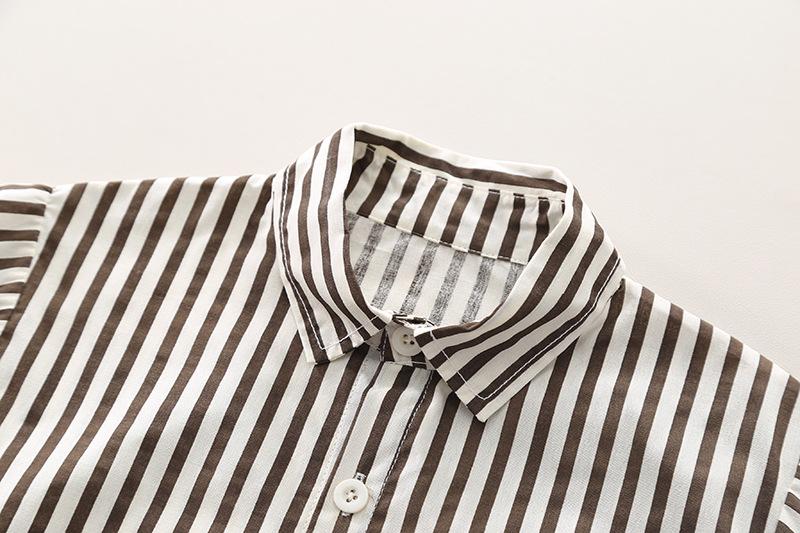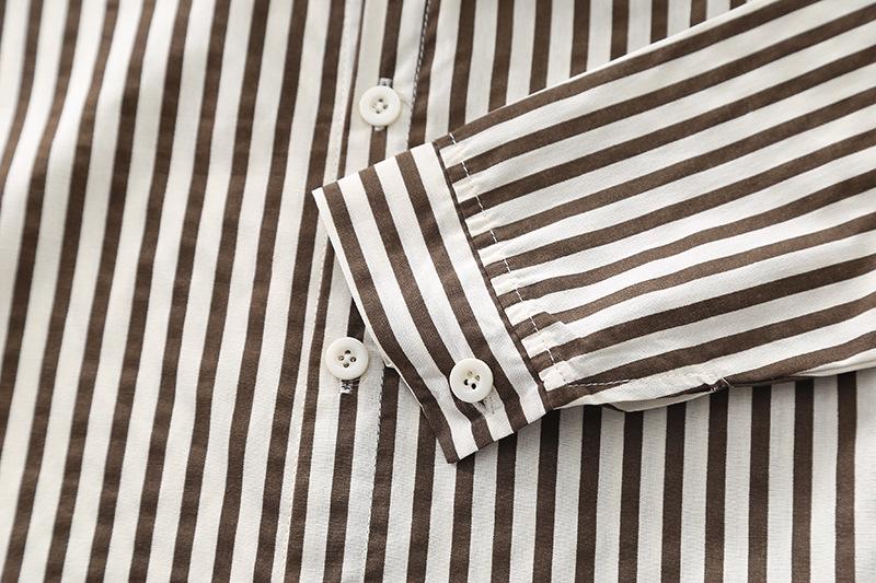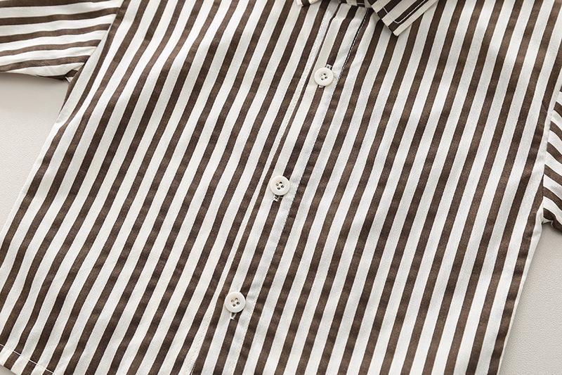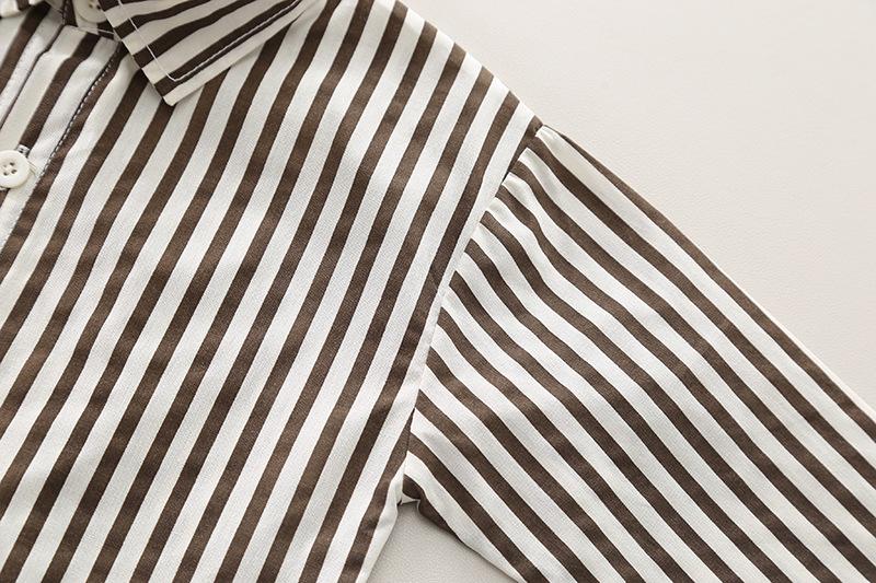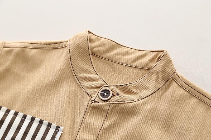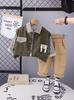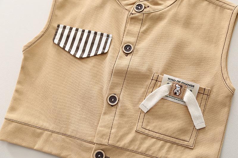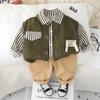 khaki striped shirt pocket bear long sleeve three-piece set, Green Striped Shirt Pocket Bear Long Sleeve Three-Piece Set