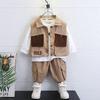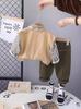 Traje de otoño para niños 2024, nuevo estilo occidental, chaleco atractivo de primavera y otoño para bebés y niños, ropa de tres piezas para bebés y niños, tendencia