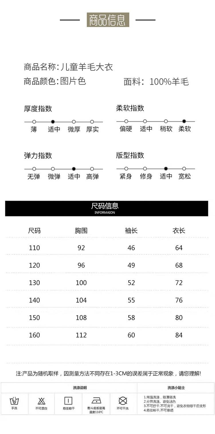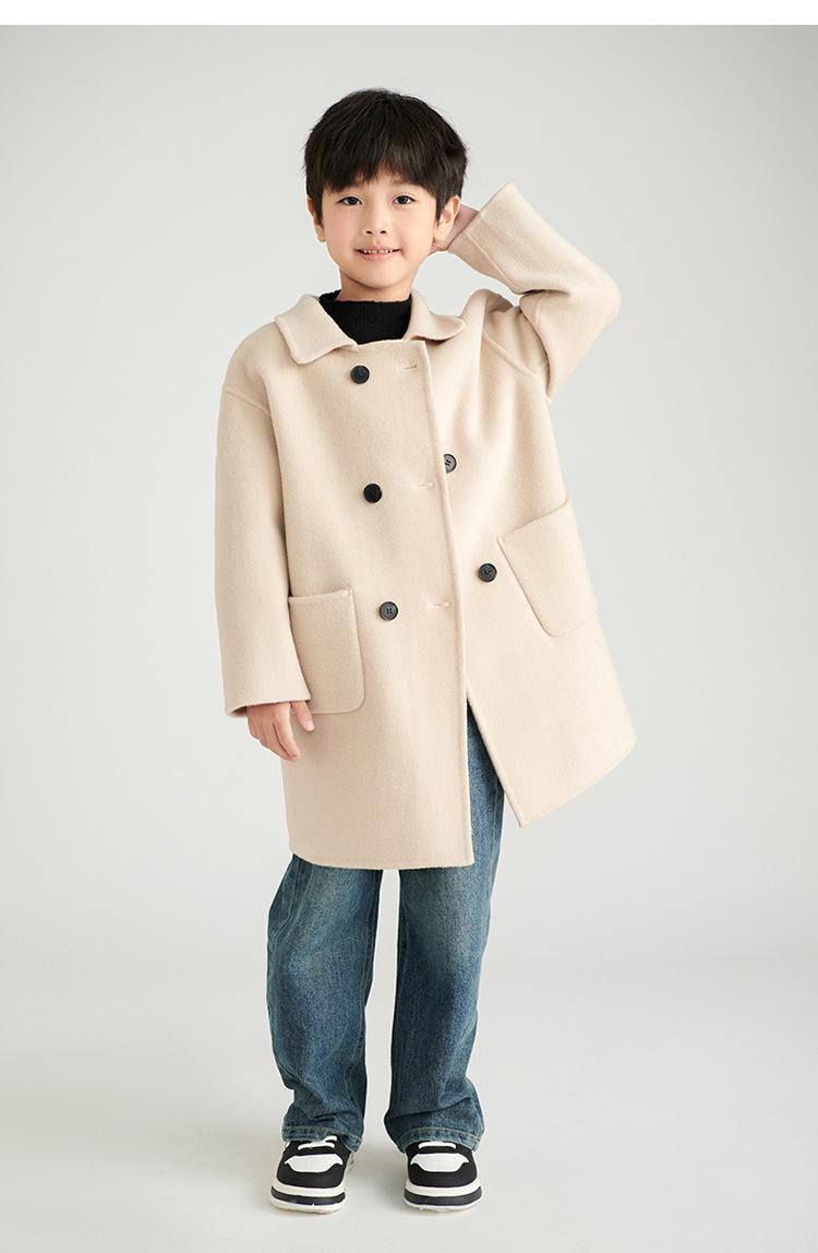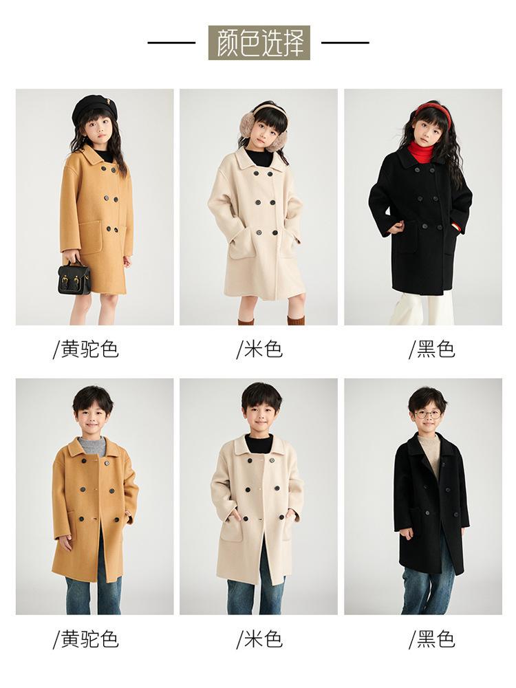Abrigo de lana para niños, otoño e invierno 2024, abrigo de lana gruesa de 100% lana para padres e hijos, para niños y niñas.