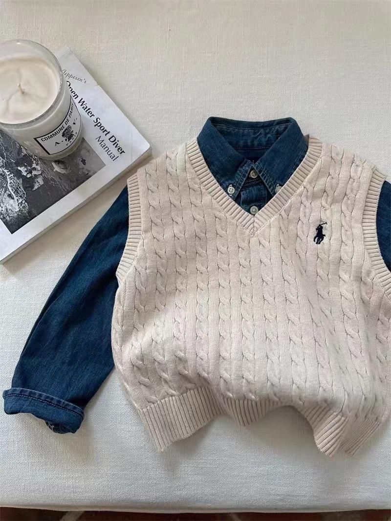 Chaleco Suéter para Niños Niños 2025 Primavera Nuevo Más Fácil para Combinar Tops Moda Bebé Chaleco Tejido Color Sólido para Mujer