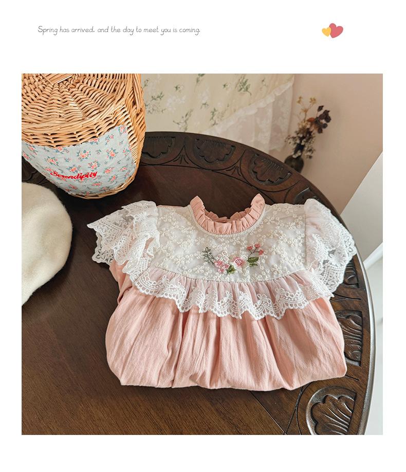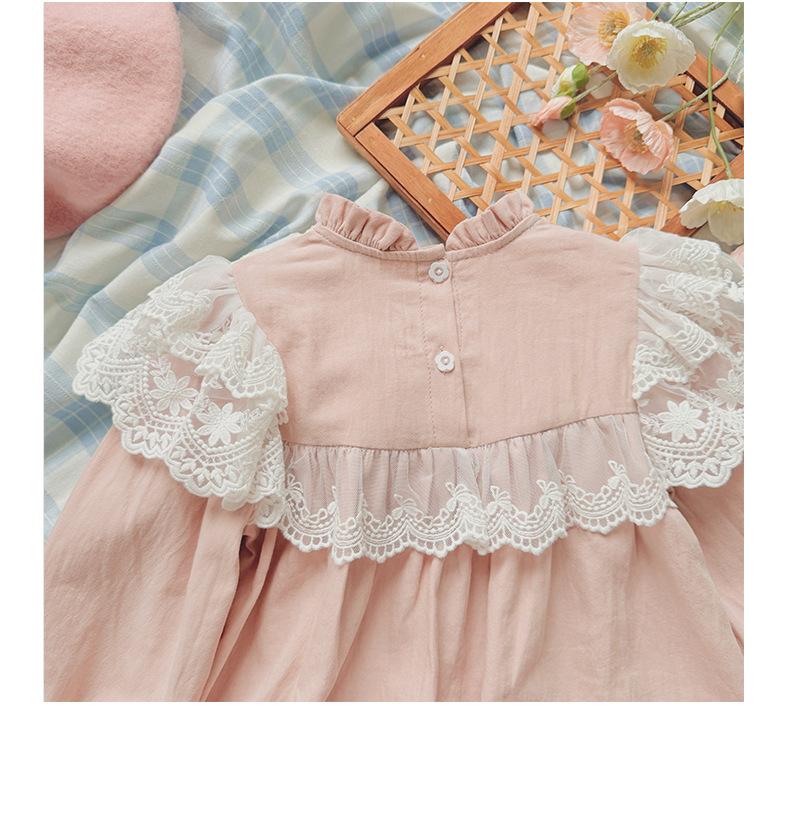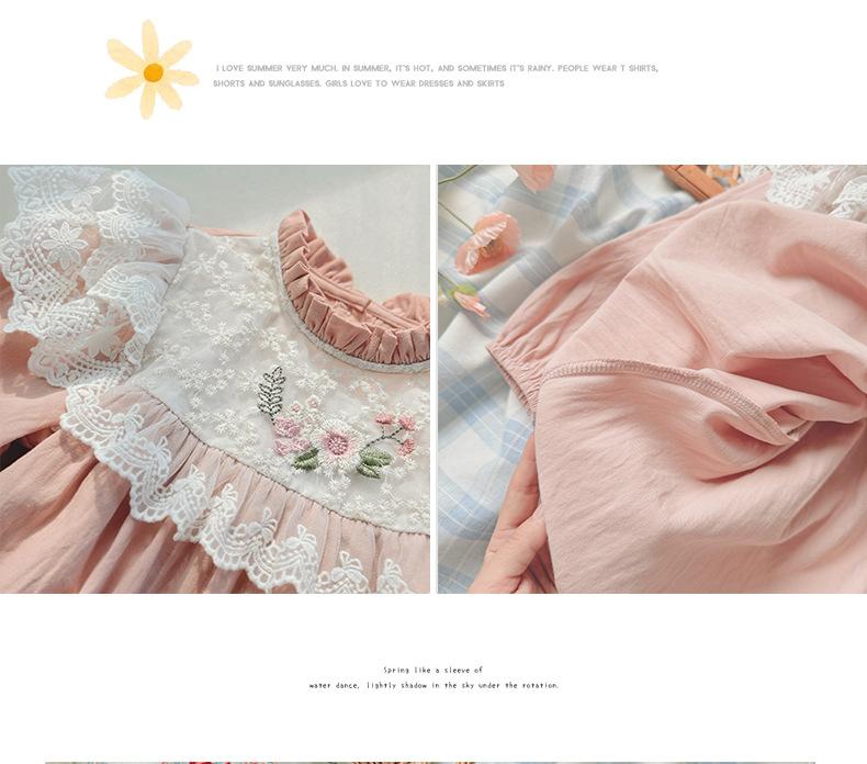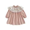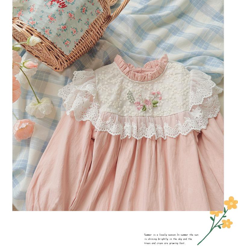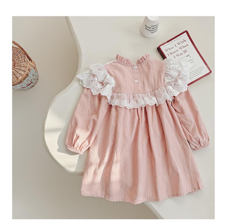 Vestido de niña con bordado de flores para niña, ropa coreana para niña, otoño 2024, cuello alto, manga larga, encaje, dulce princesa
