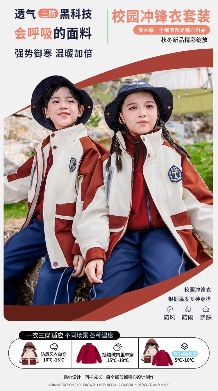 Uniforme escolar tres en uno para estudiantes de primaria, primavera y otoño, ropa de jardín de infantes, ropa de clase de otoño e invierno para niños.