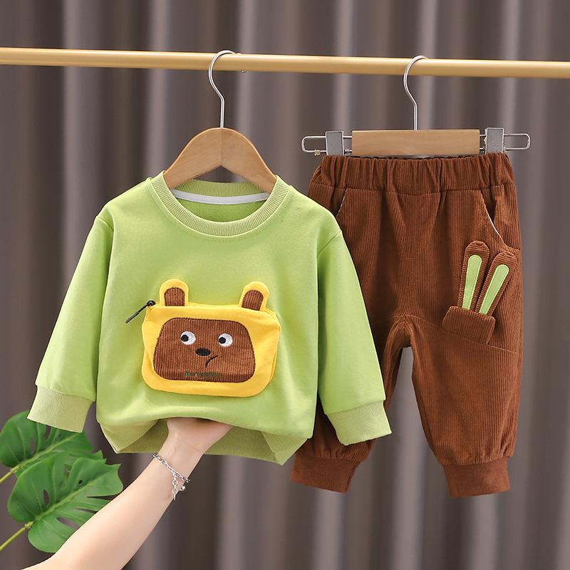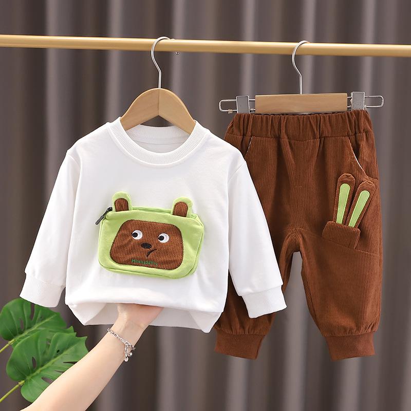 Conjunto deportivo de dos piezas con orejas de oso para bebé, nuevo estilo occidental, 2024