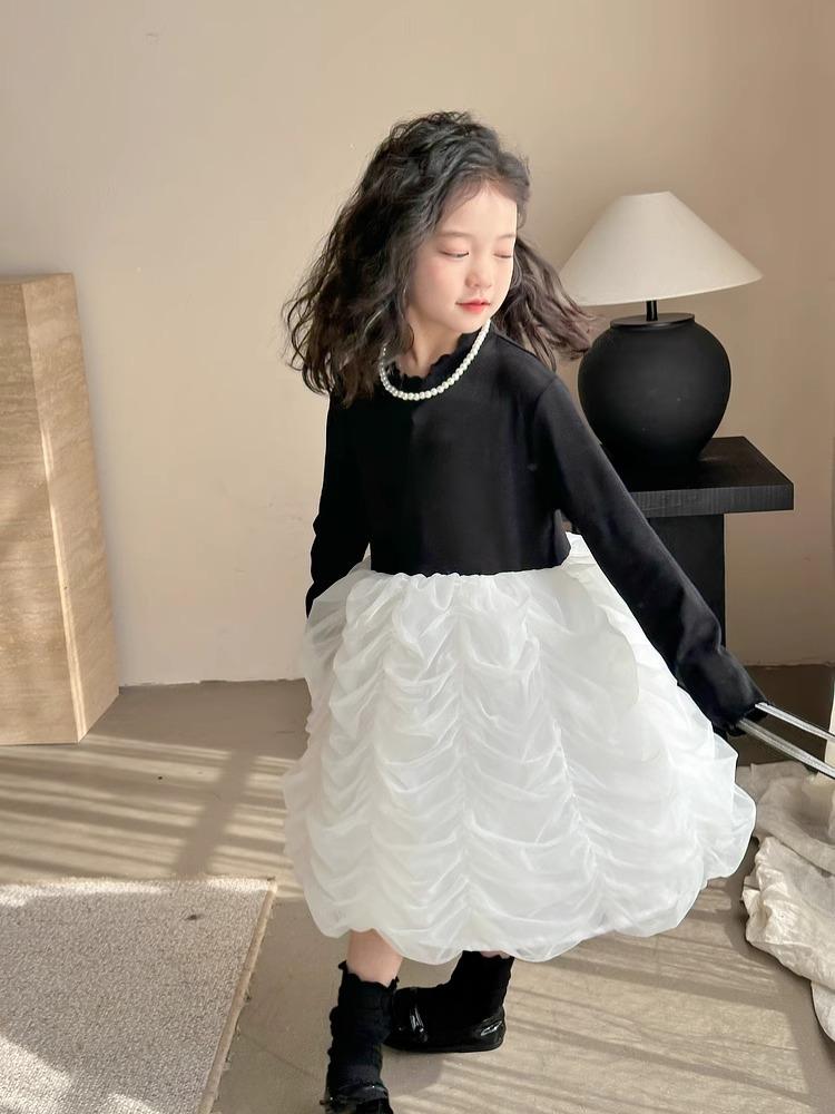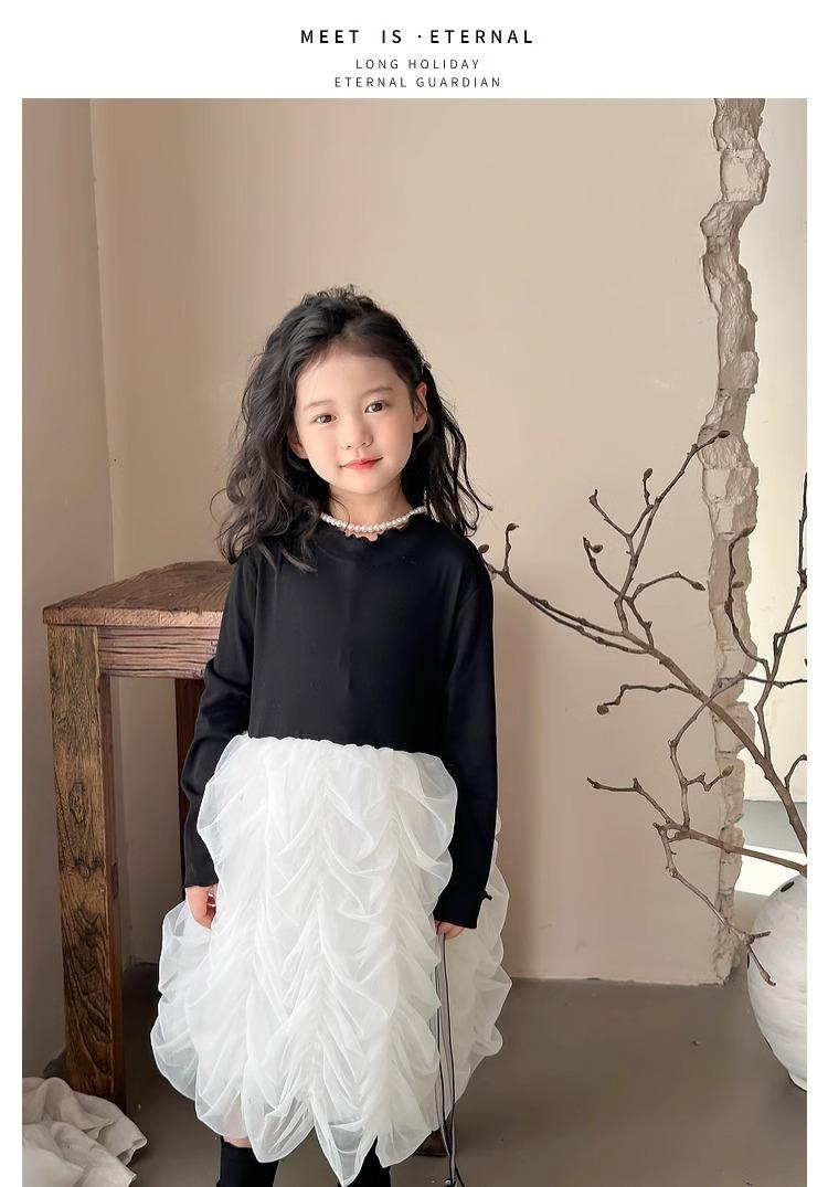 Vestido de niña, primavera 2024, nuevo estilo, vestido de hada infantil, vestido de bebé Hepburn, vestido de princesa infantil