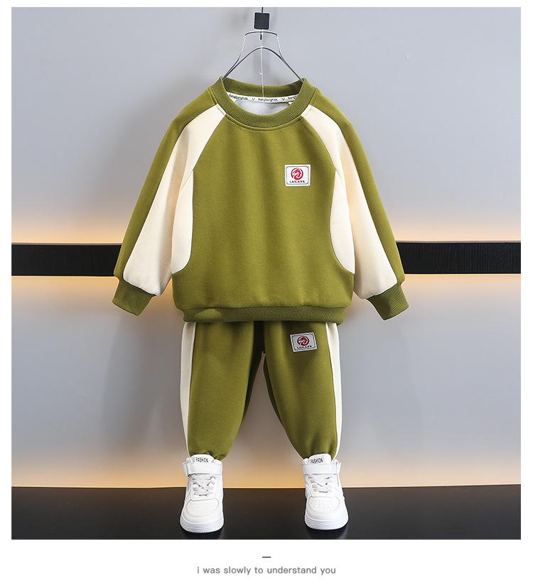 Traje de Suéter de Otoño para Niños 2025 Nuevo Estilo Coreano Bebé Guapo Casual Traje de Dos Piezas Traje de Comercio Exterior para Niños