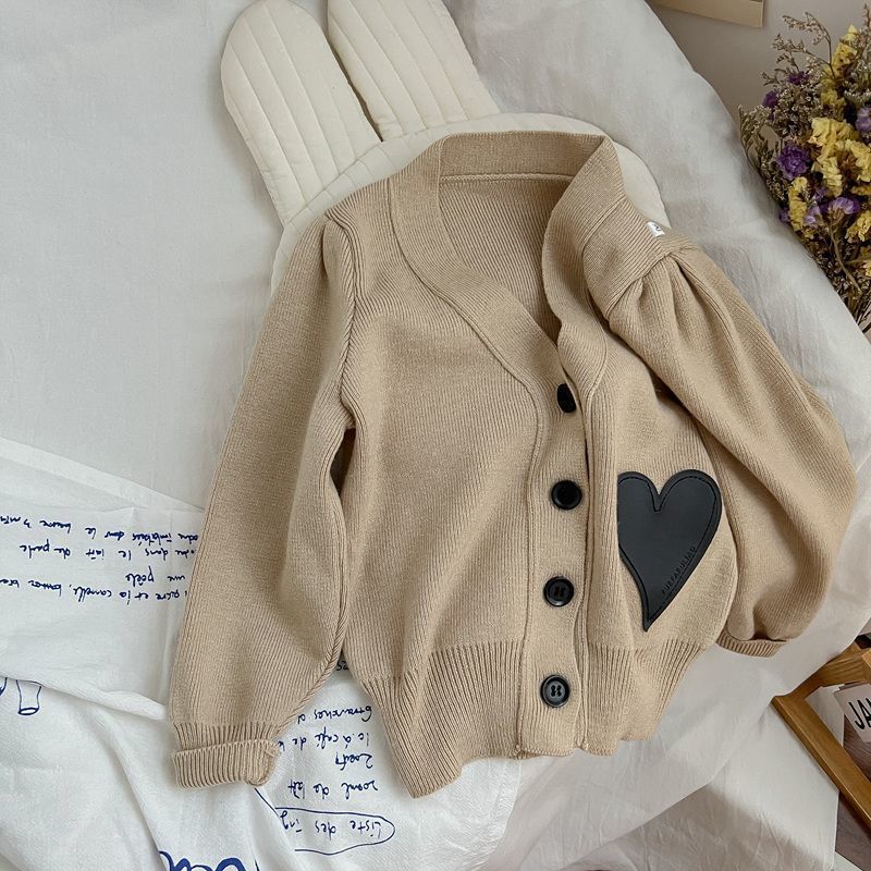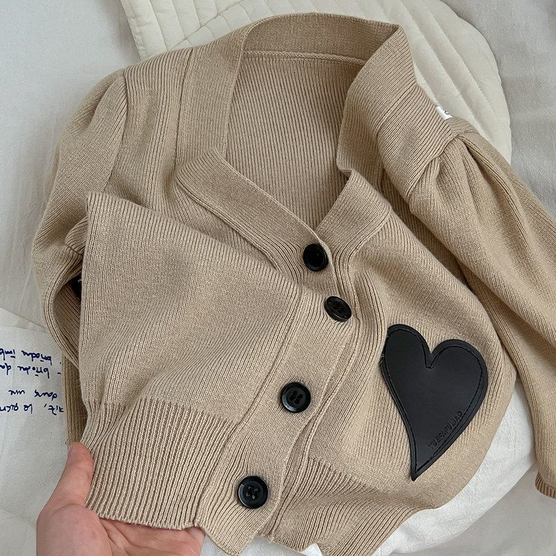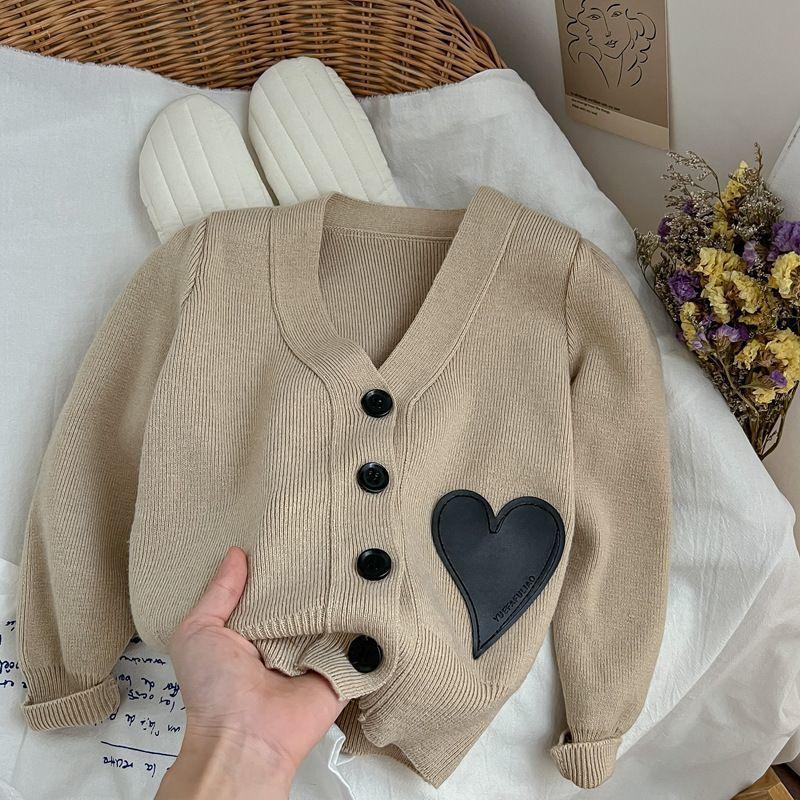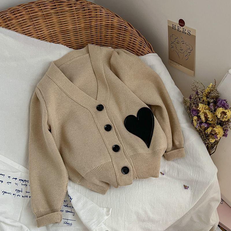 [En stock] Cárdigan de punto para niña, chaqueta nueva de primavera, cárdigan informal de amor para mujer, suéter coreano de manga larga