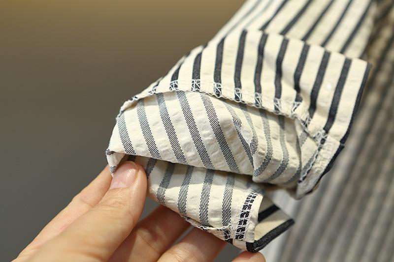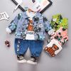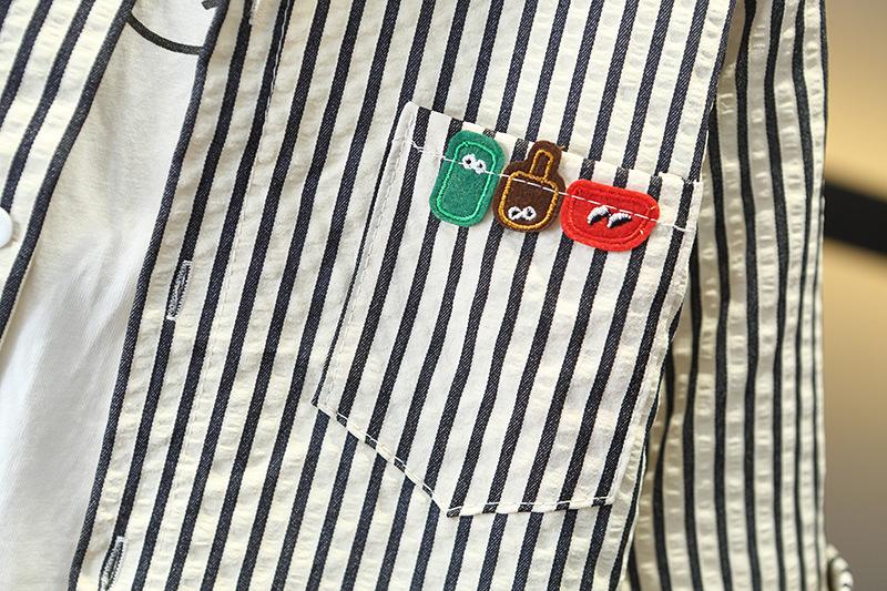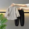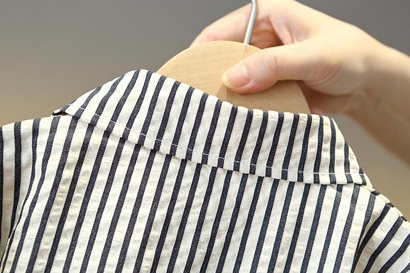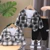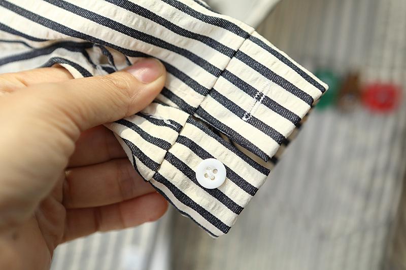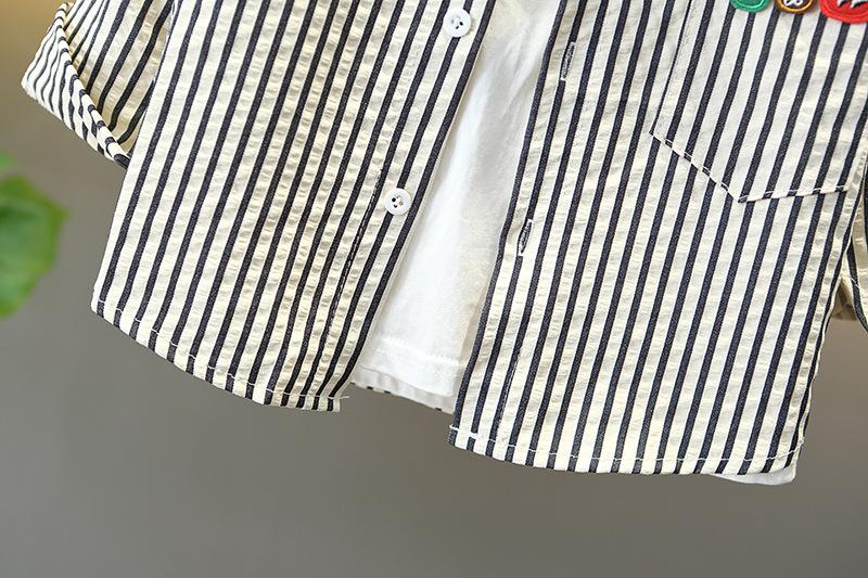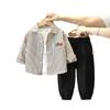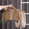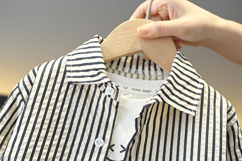Traje de camisa de otoño para niños 2024, nueva y atractiva ropa de bebé, conjunto de dos piezas de manga larga a rayas de estilo occidental para bebé