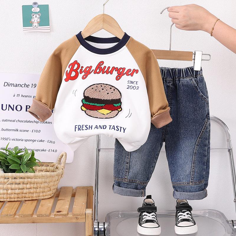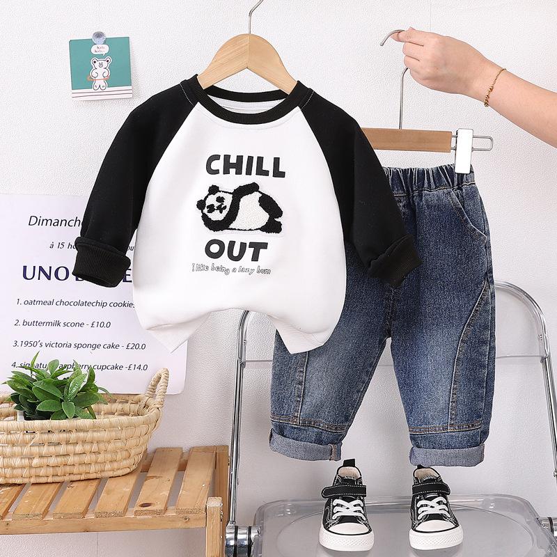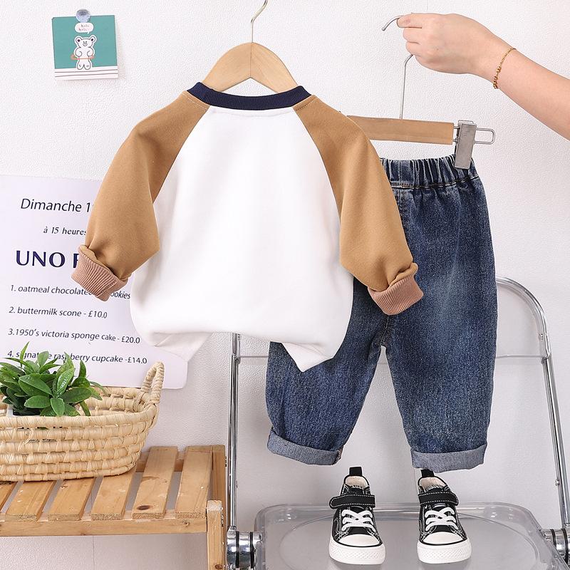 Ropa de primavera y otoño para niños, traje de otoño para niños, sudadera de dibujos animados de manga larga, ropa de dos piezas estilo occidental para bebés, 2024