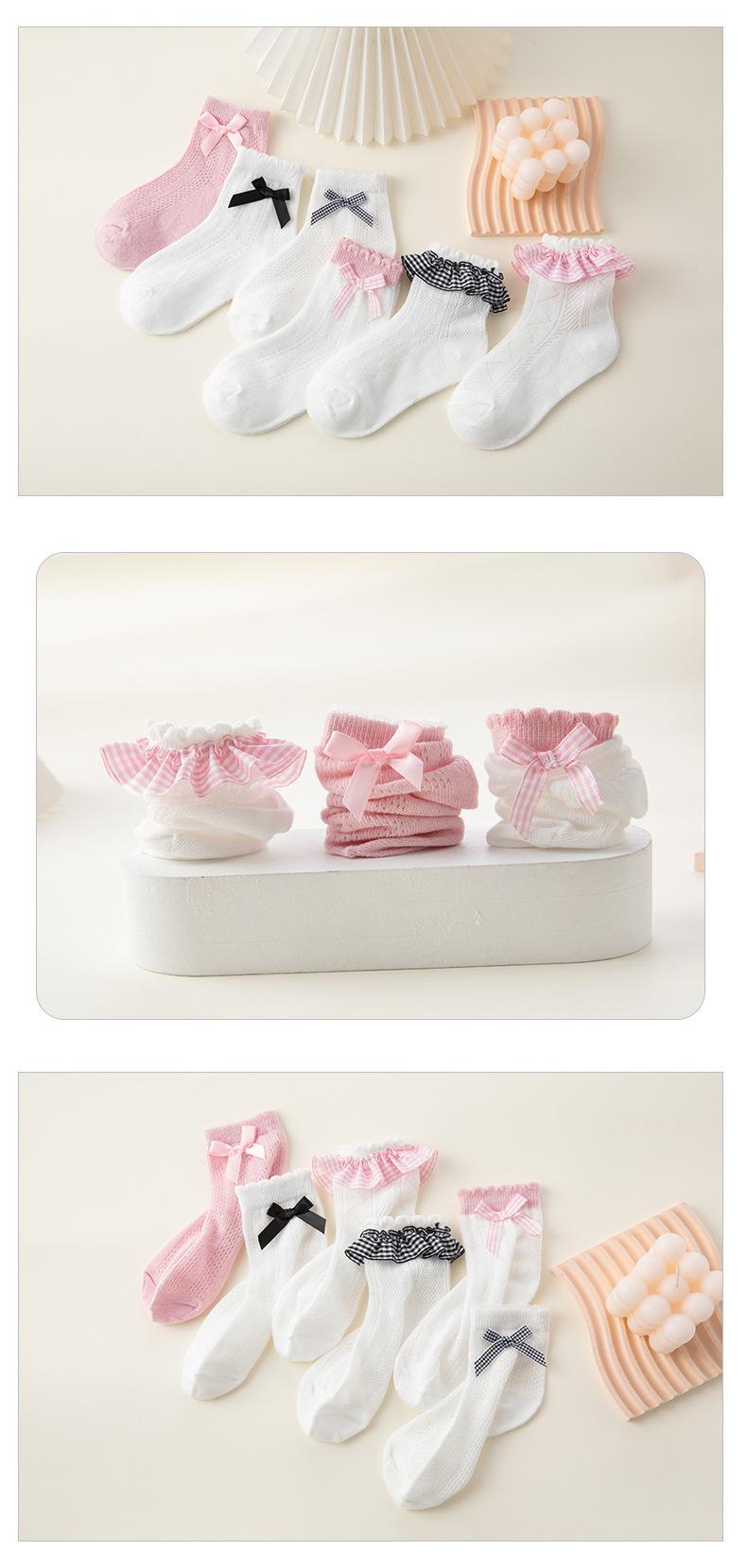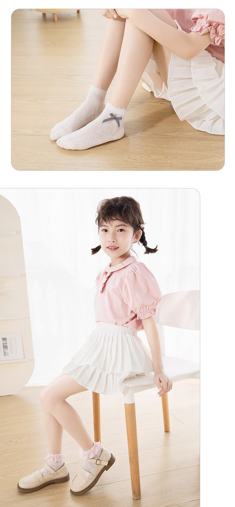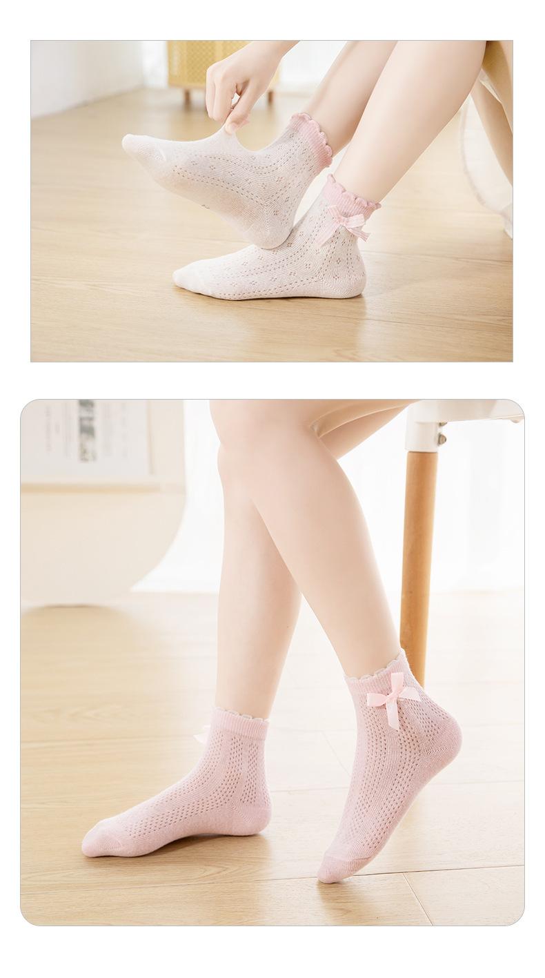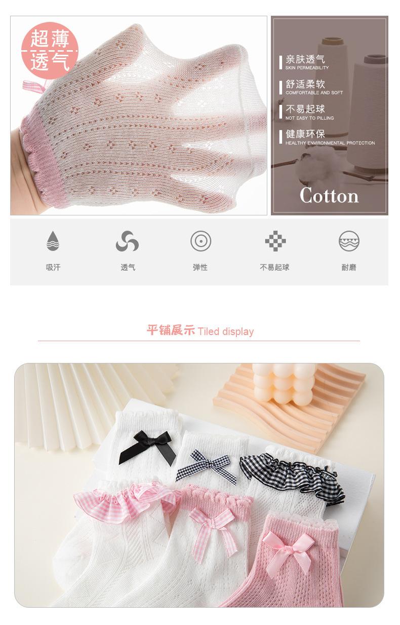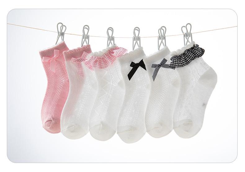 Calcetines de verano para niñas, calcetines de princesa con encaje a cuadros, calcetines de malla ultrafinos y transpirables, calcetines para niños, calcetines con lazo