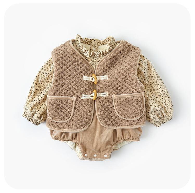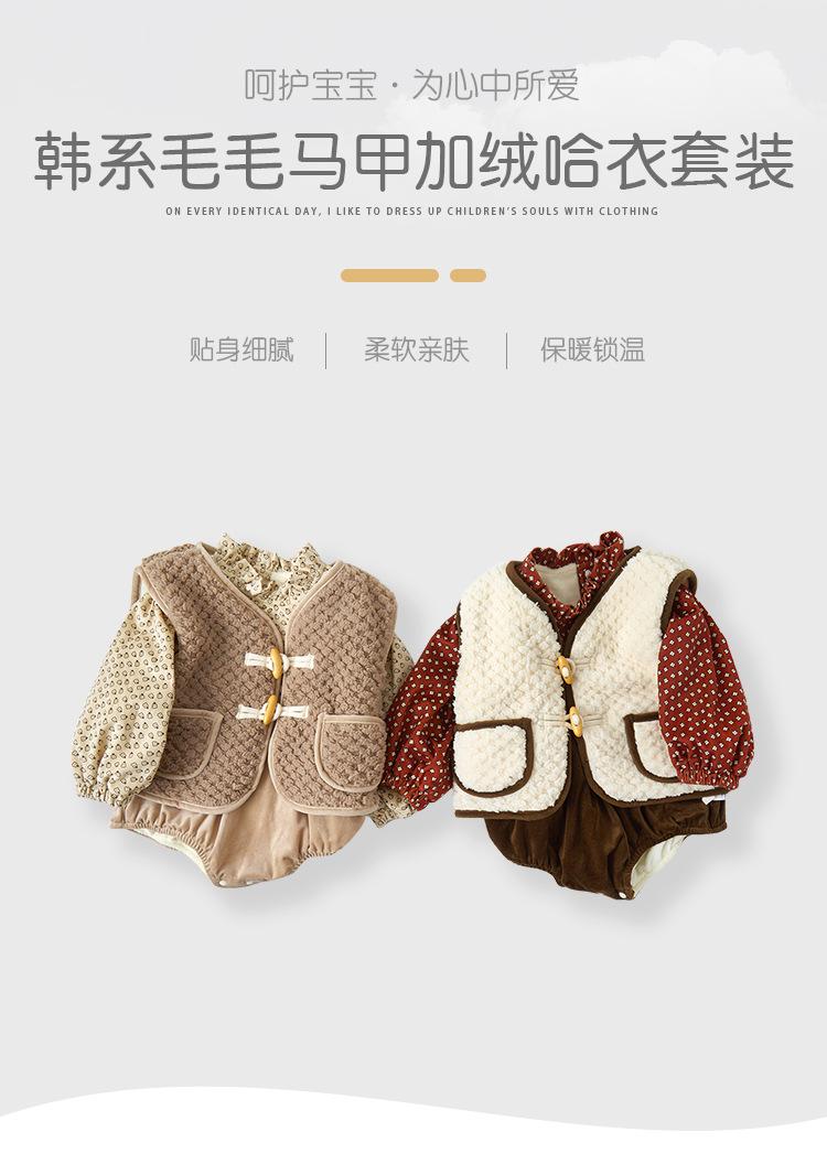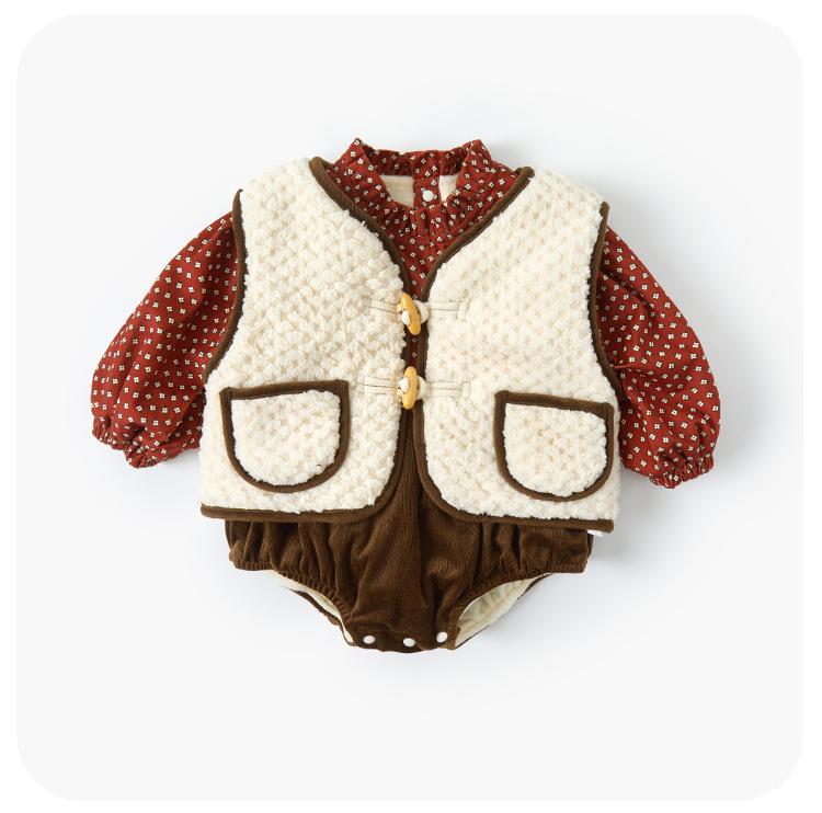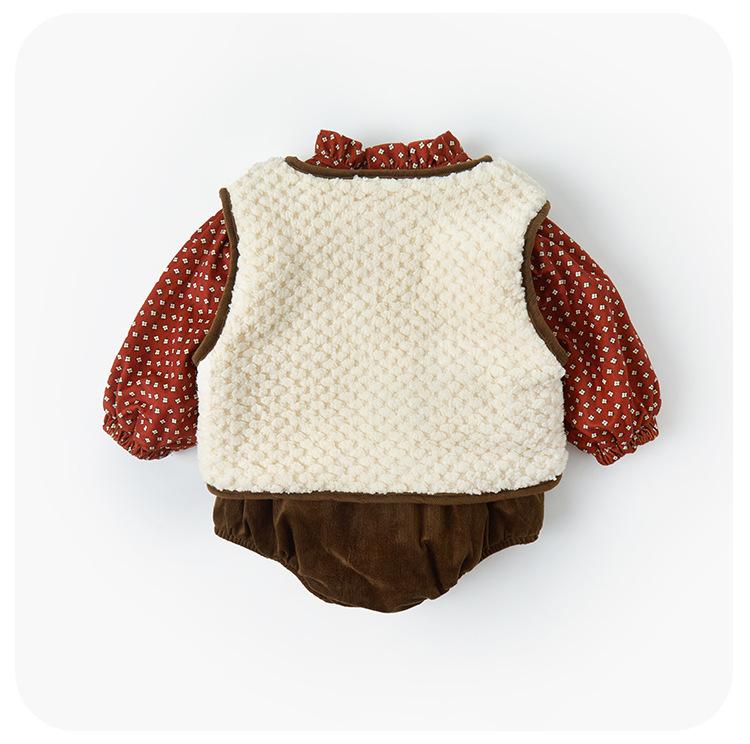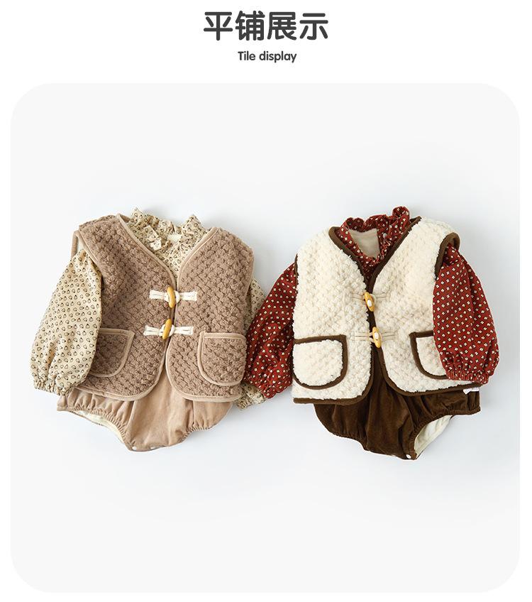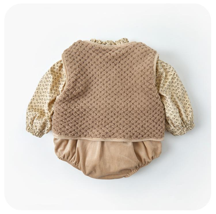 Chaleco de Invierno para Bebé Niña Traje de Dos Piezas para Bebé Otoño e Invierno 2024 Recién Nacido Estilo Grueso con Forro Polar