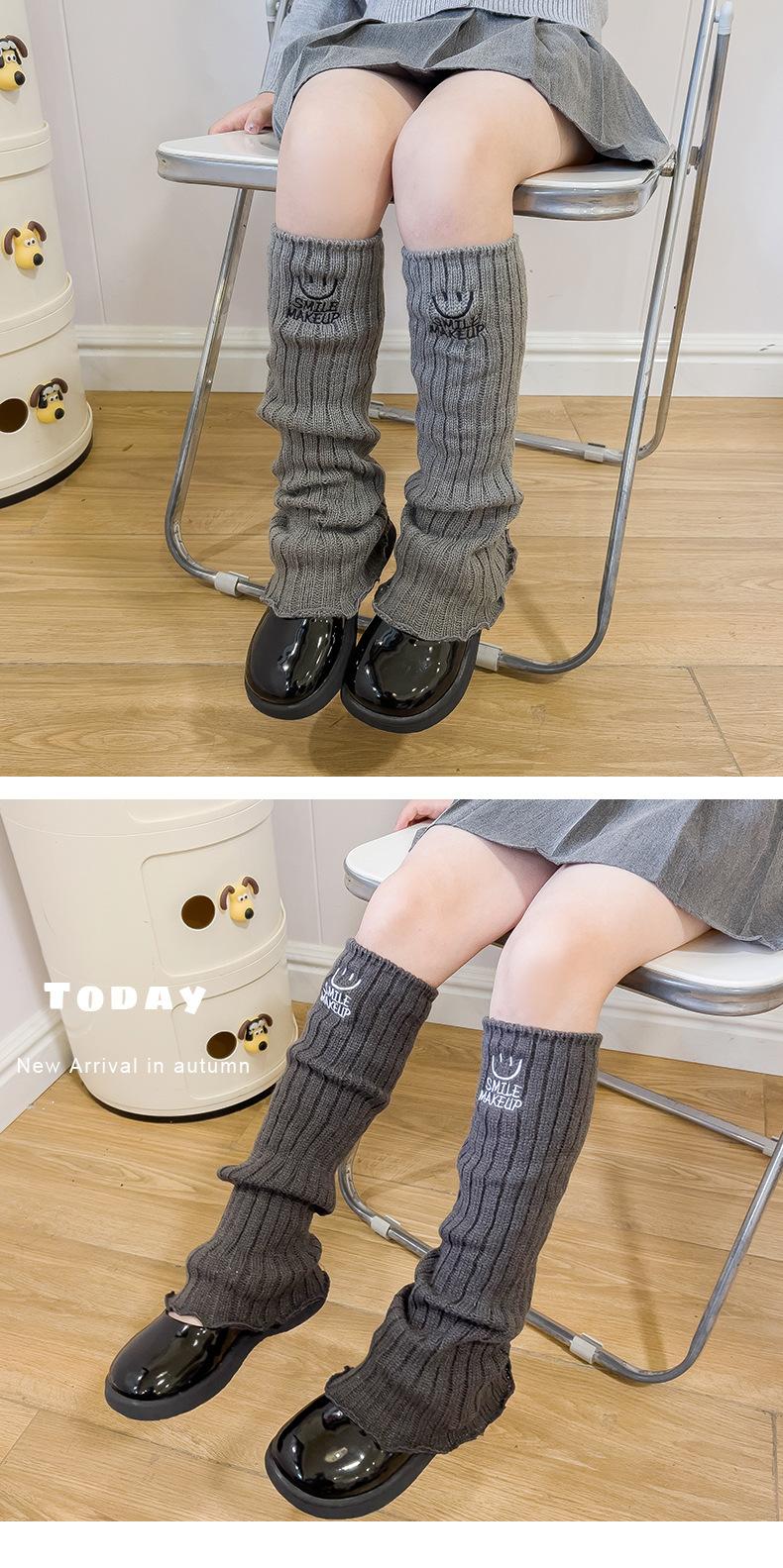 Calcetines bordados para niñas, de primavera y otoño, largos, de tubo marrón, de lana tejida, fabricantes coreanos de cubiertas cálidas para las piernas para otoño e invierno.