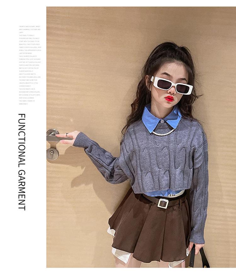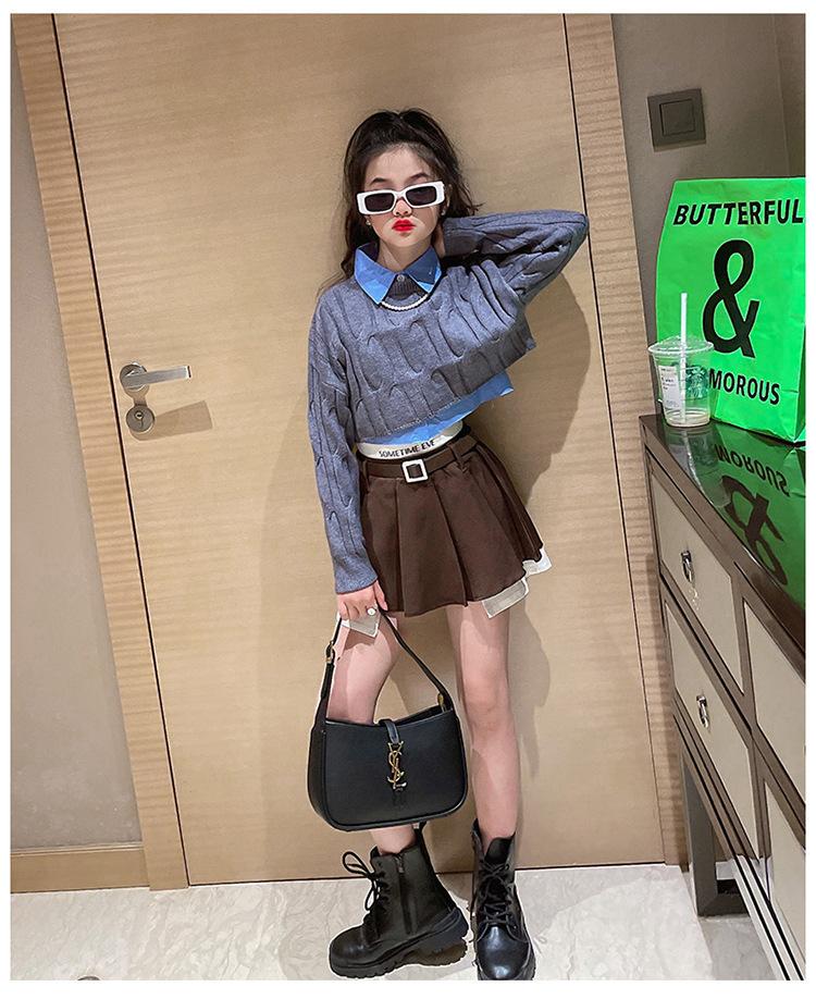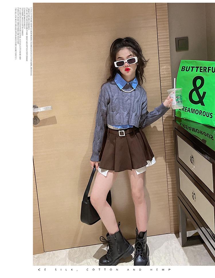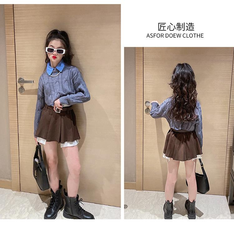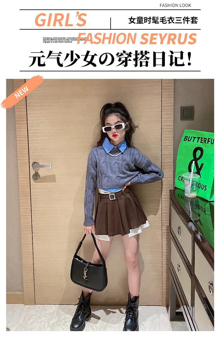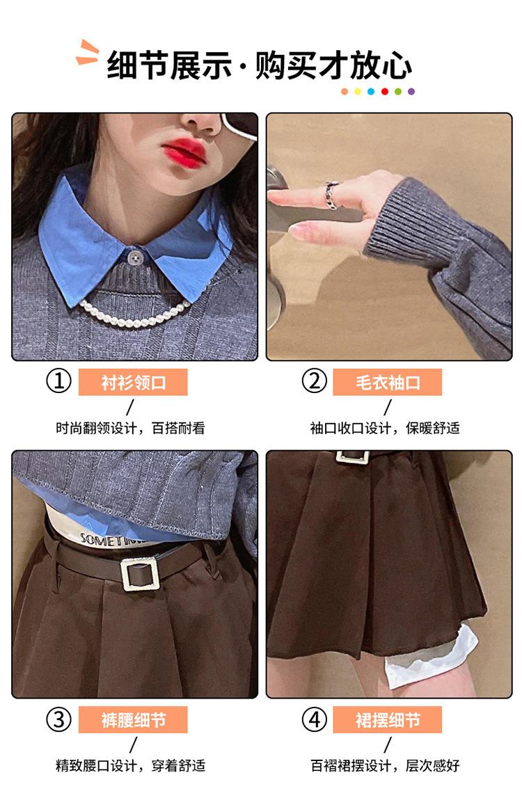 Traje de primavera y otoño para niñas de estilo japonés y coreano 2022, elegante suéter con giro apilado, camisa, falda corta, traje de tres piezas a la moda