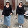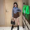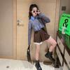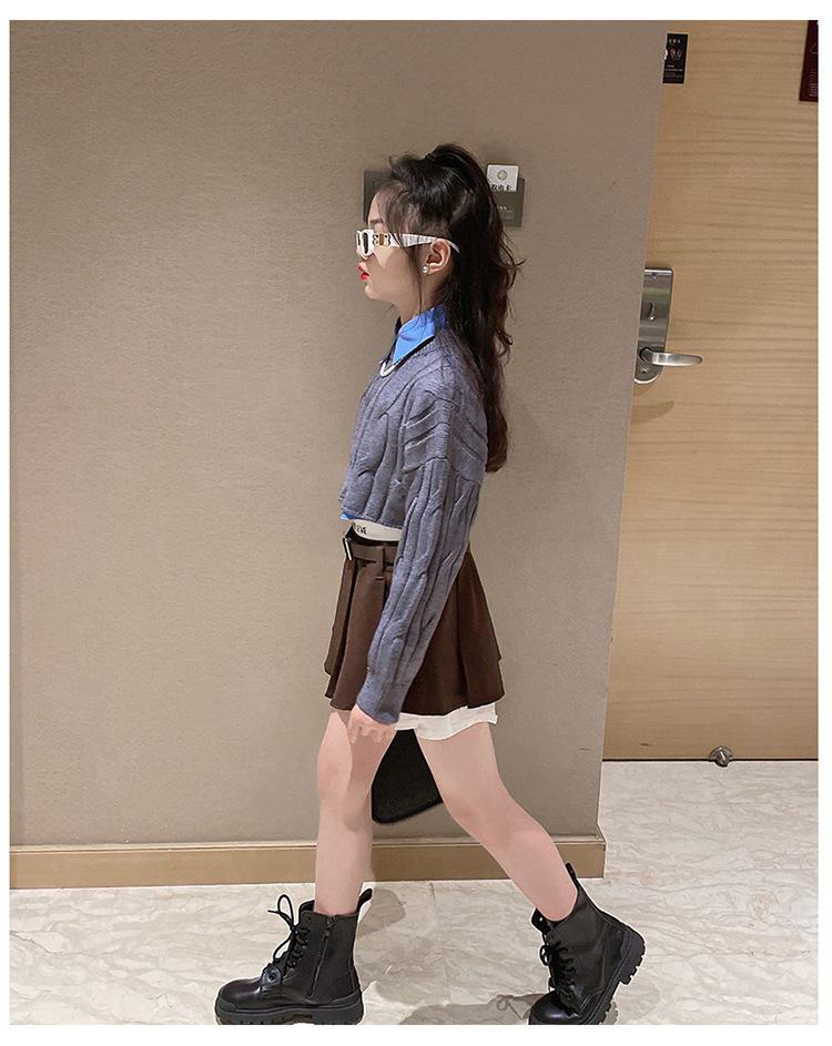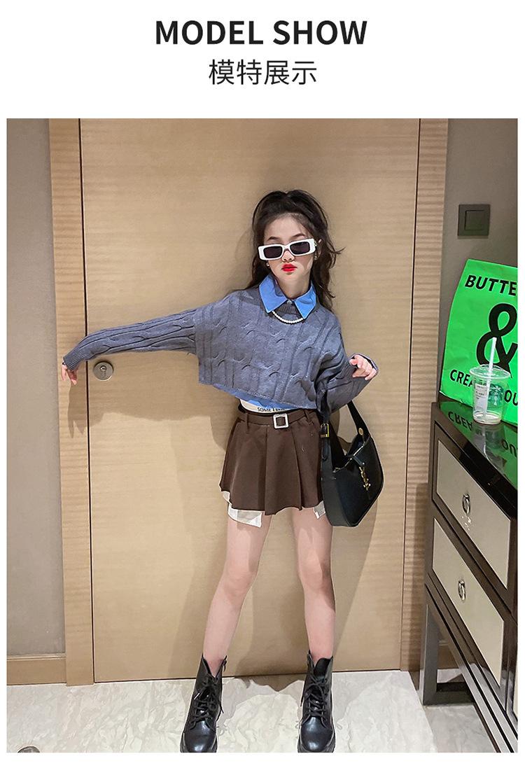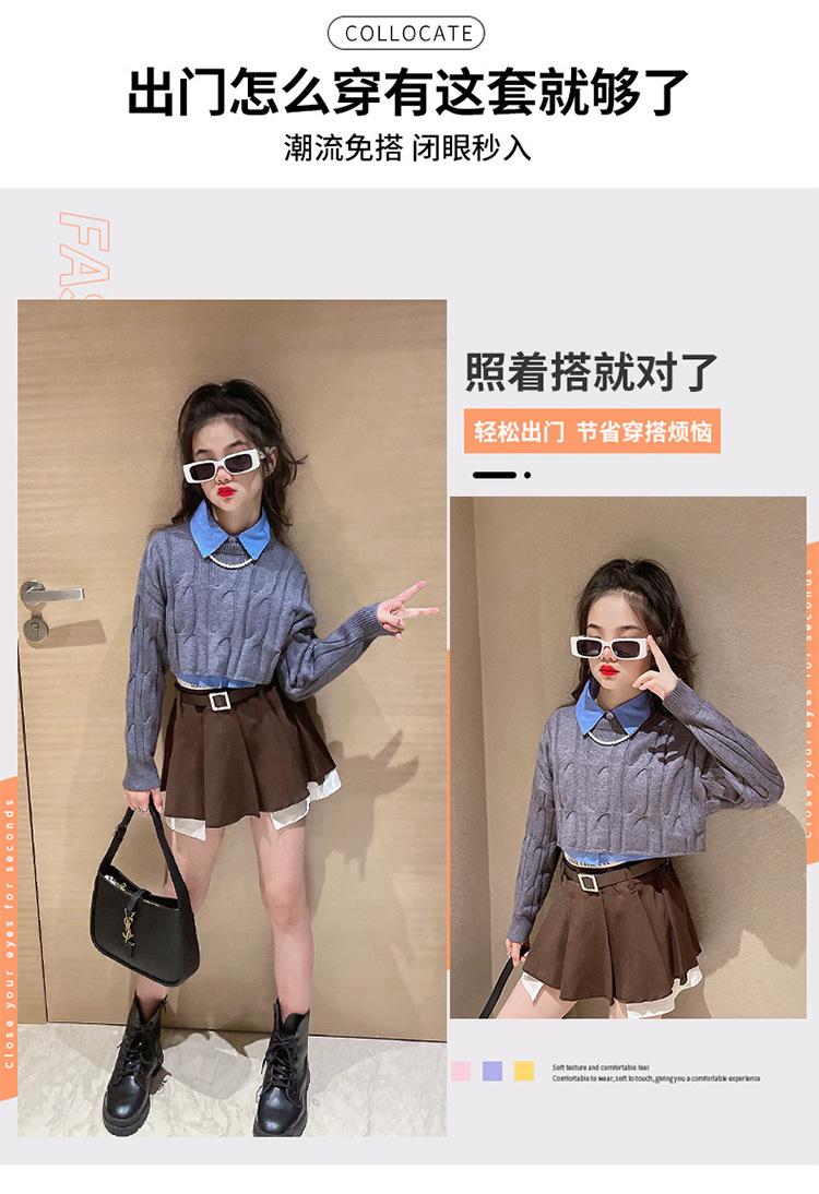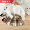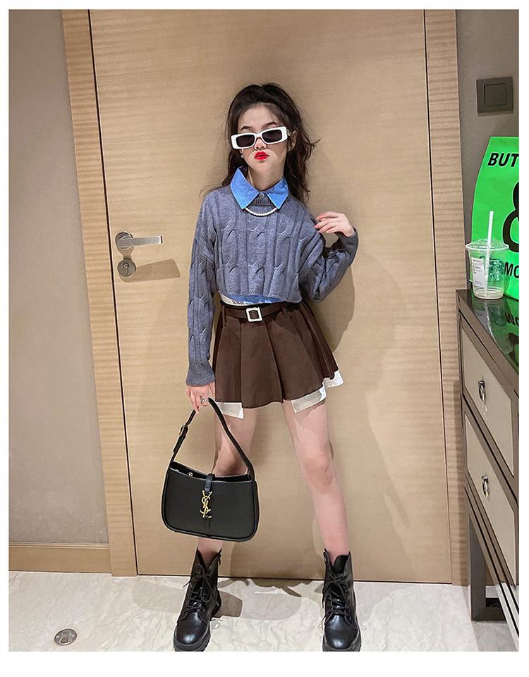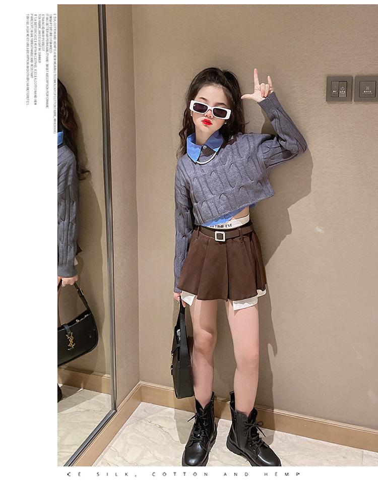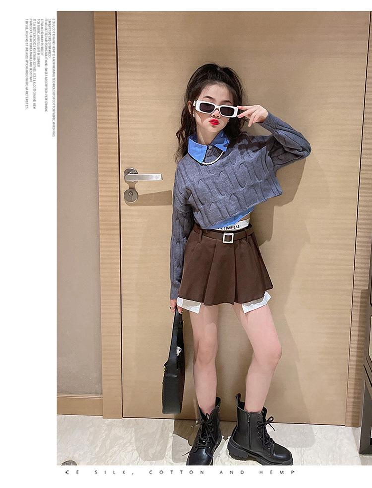 Traje de primavera y otoño para niñas de estilo japonés y coreano 2022, elegante suéter con giro apilado, camisa, falda corta, traje de tres piezas a la moda