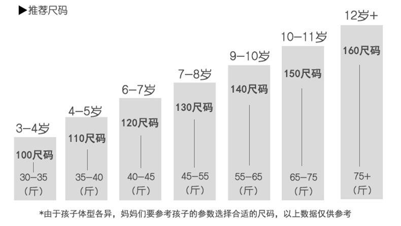 110cm, 120cm, 130cm, 140cm, 150cm, 160cm, 170cm