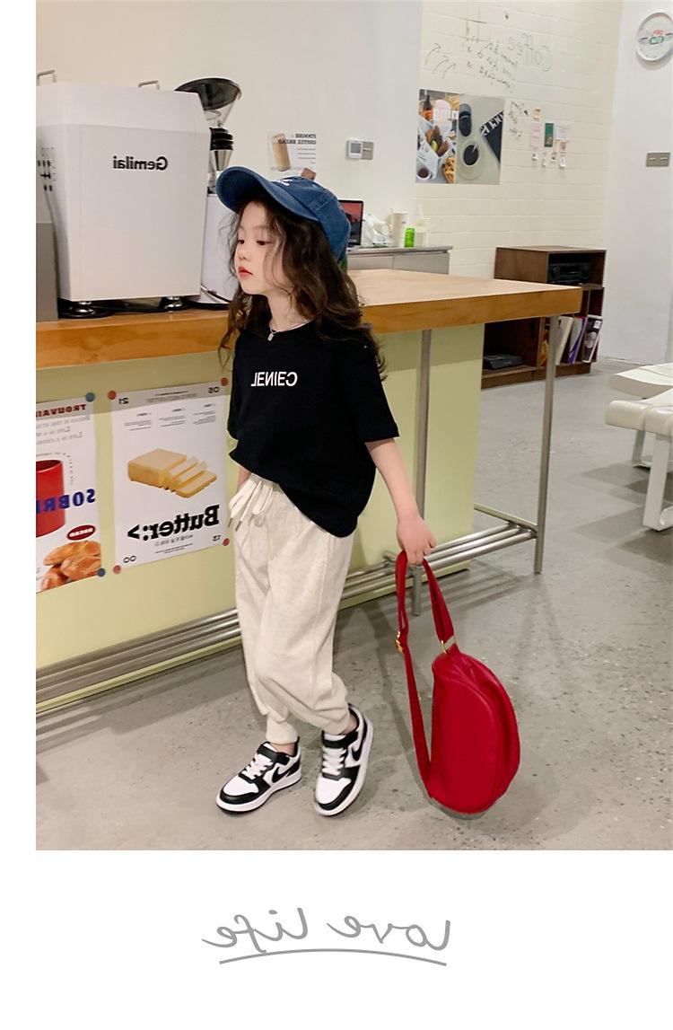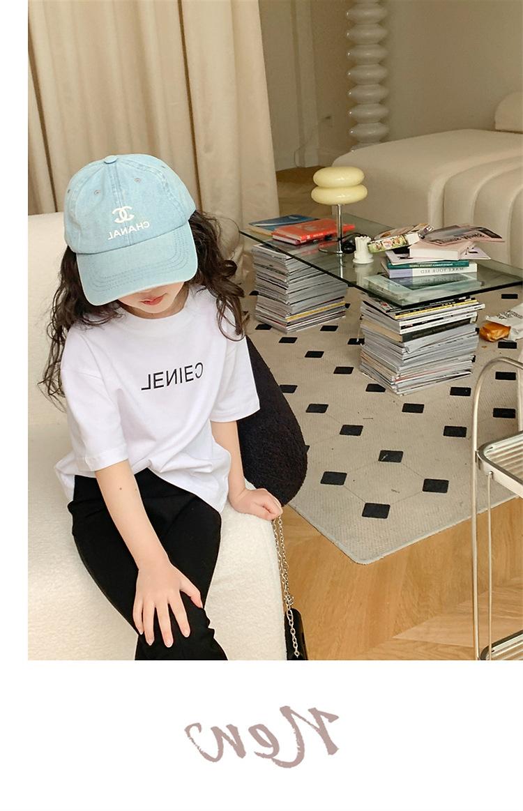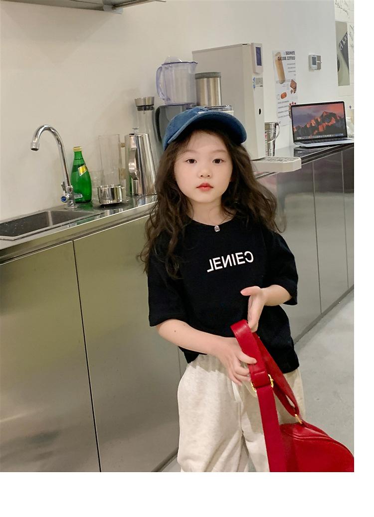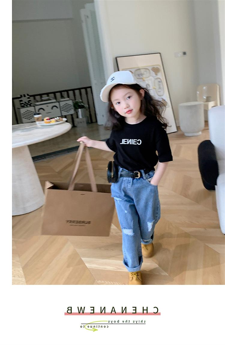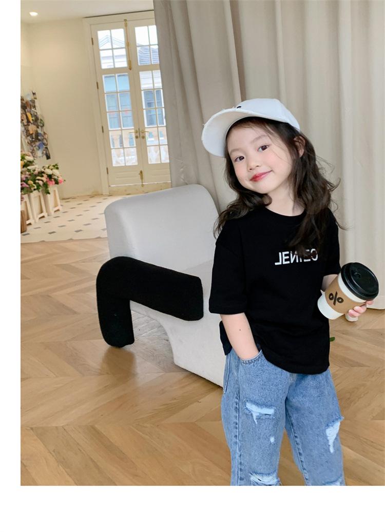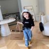 Camiseta de manga corta para niños, cuello redondo, nueva camiseta de verano 2024, estilo coreano, ropa informal para niñas, letras de algodón para bebés