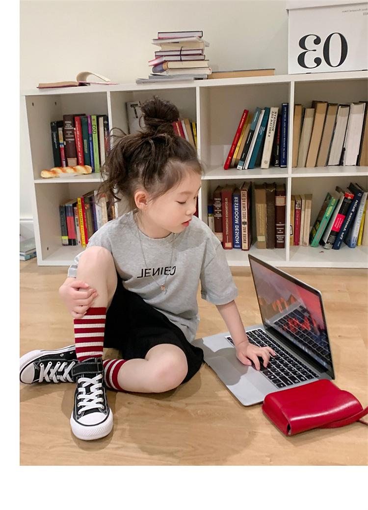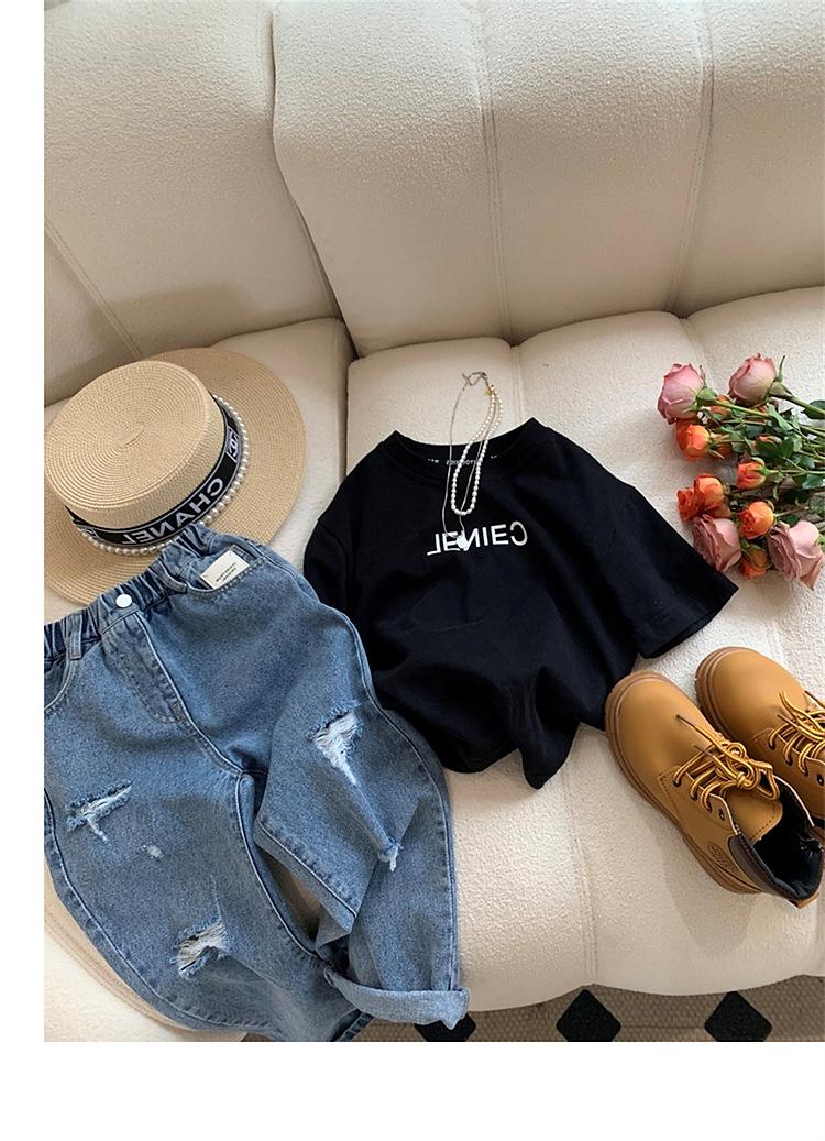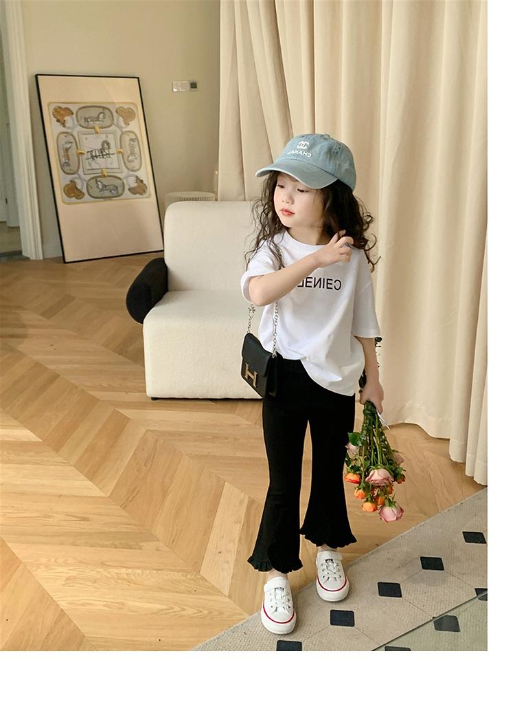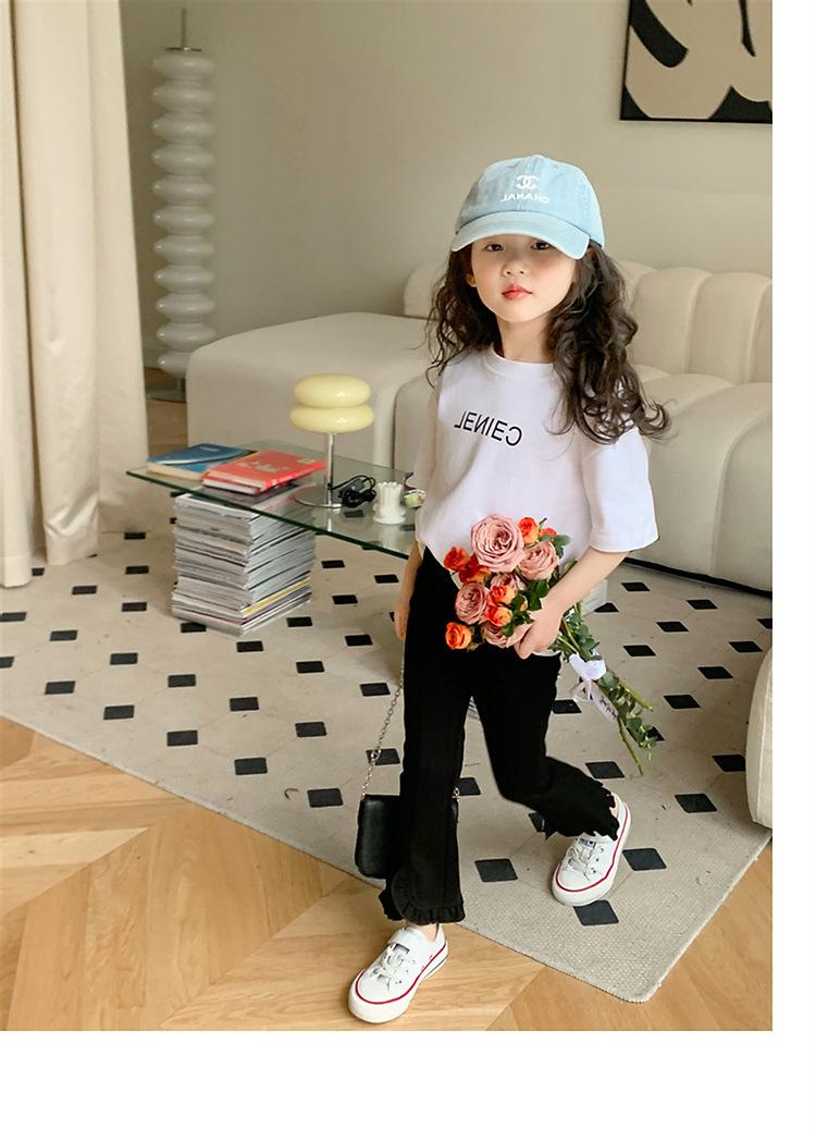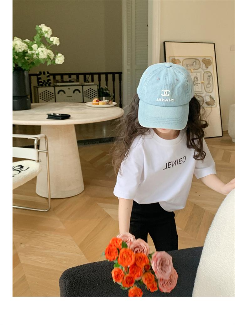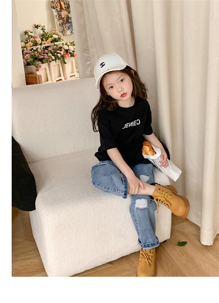 Camiseta de manga corta para niños, cuello redondo, nueva camiseta de verano 2024, estilo coreano, ropa informal para niñas, letras de algodón para bebés