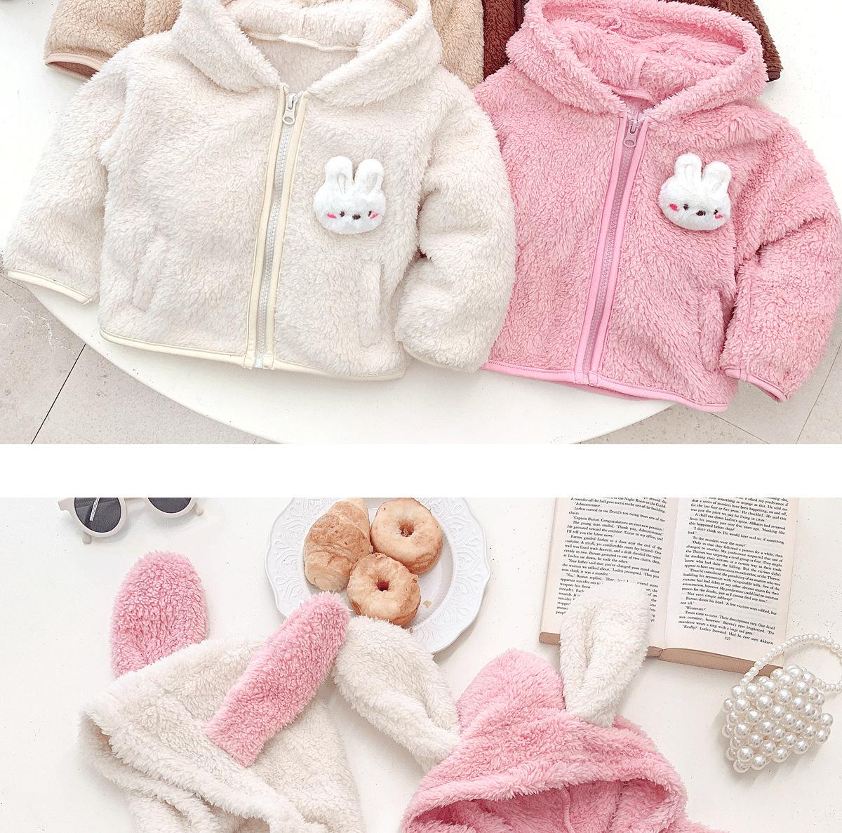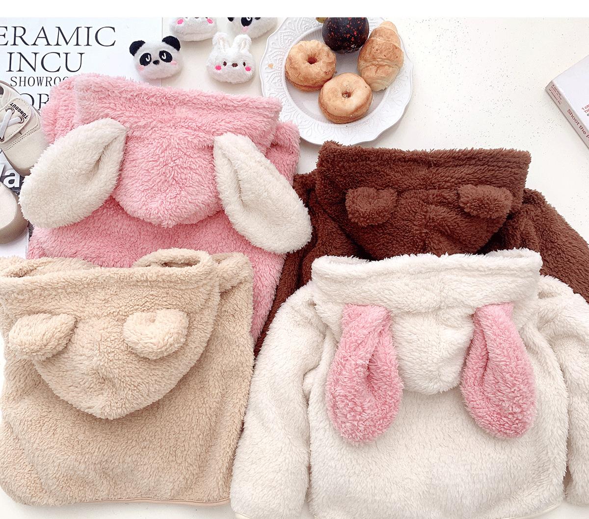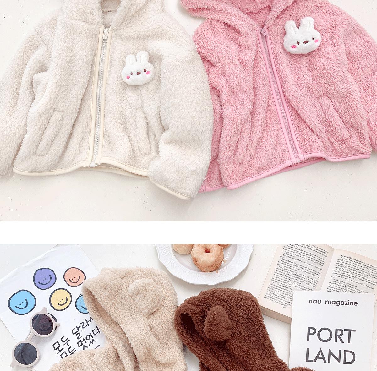 Abrigo con capucha de conejito para niños y niñas, ropa de bebé de manga larga súper linda, chaqueta de lana de otoño e invierno para bebé