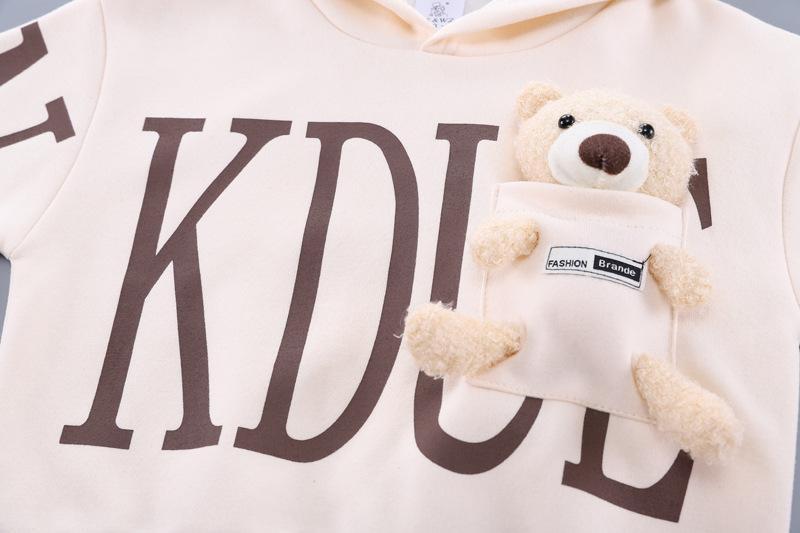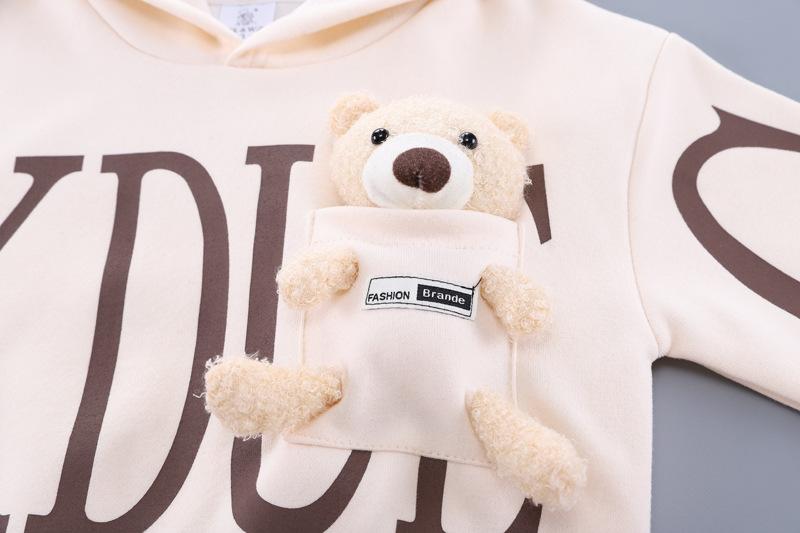 creamy-white Big English Bear Long-sleeved Two-piece Set, Brown large English bear long sleeve two-piece set, ...