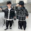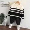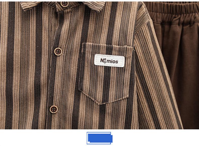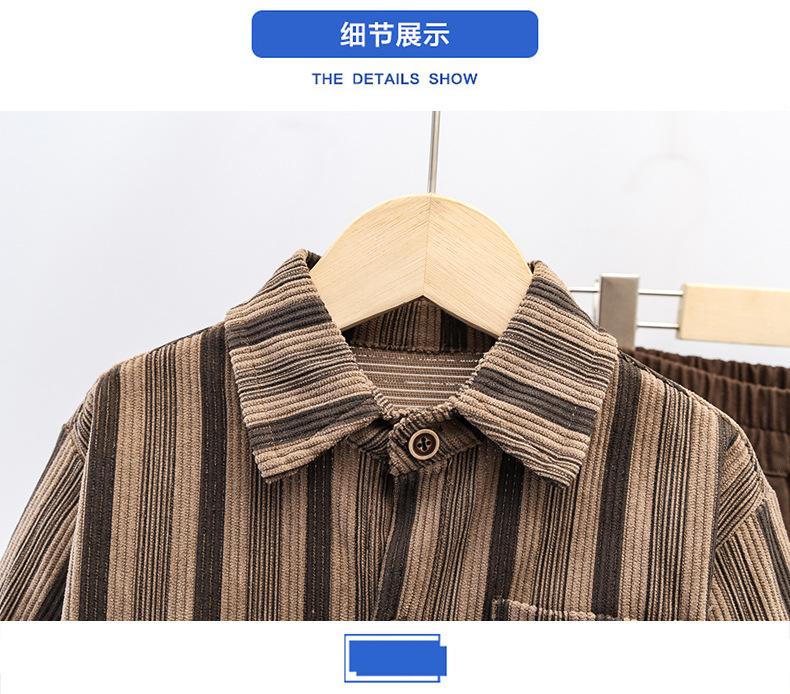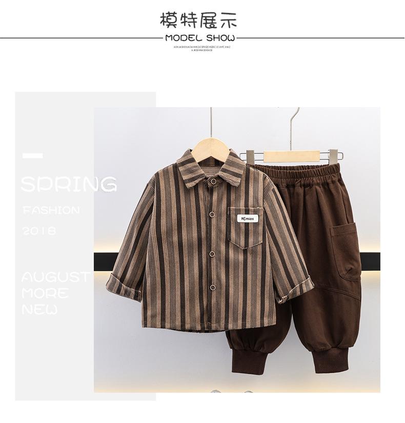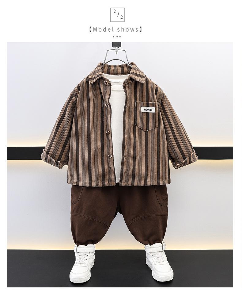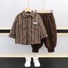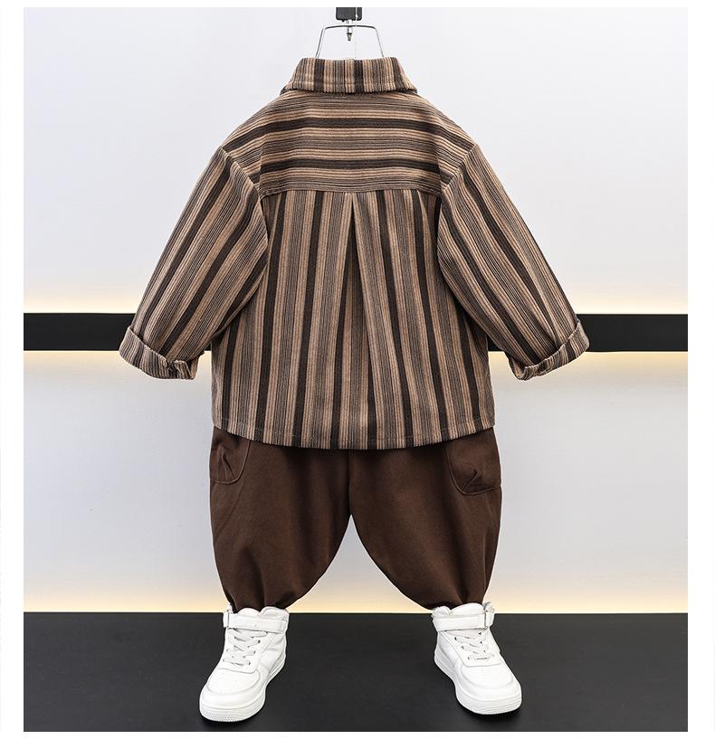 Traje de Otoño para Niño 2025 Nuevo Guapo Camisa Rayada para Niños Conjunto de Dos Piezas Estilo Occidental Ropa de Otoño Moderna para Niño