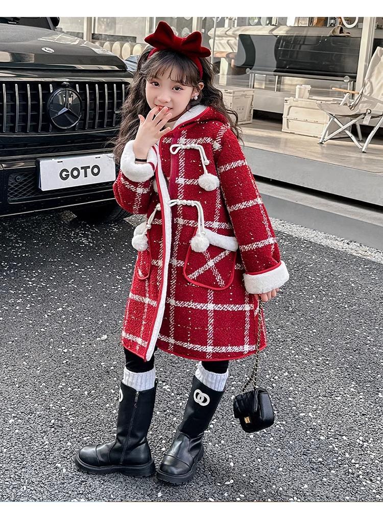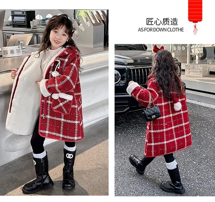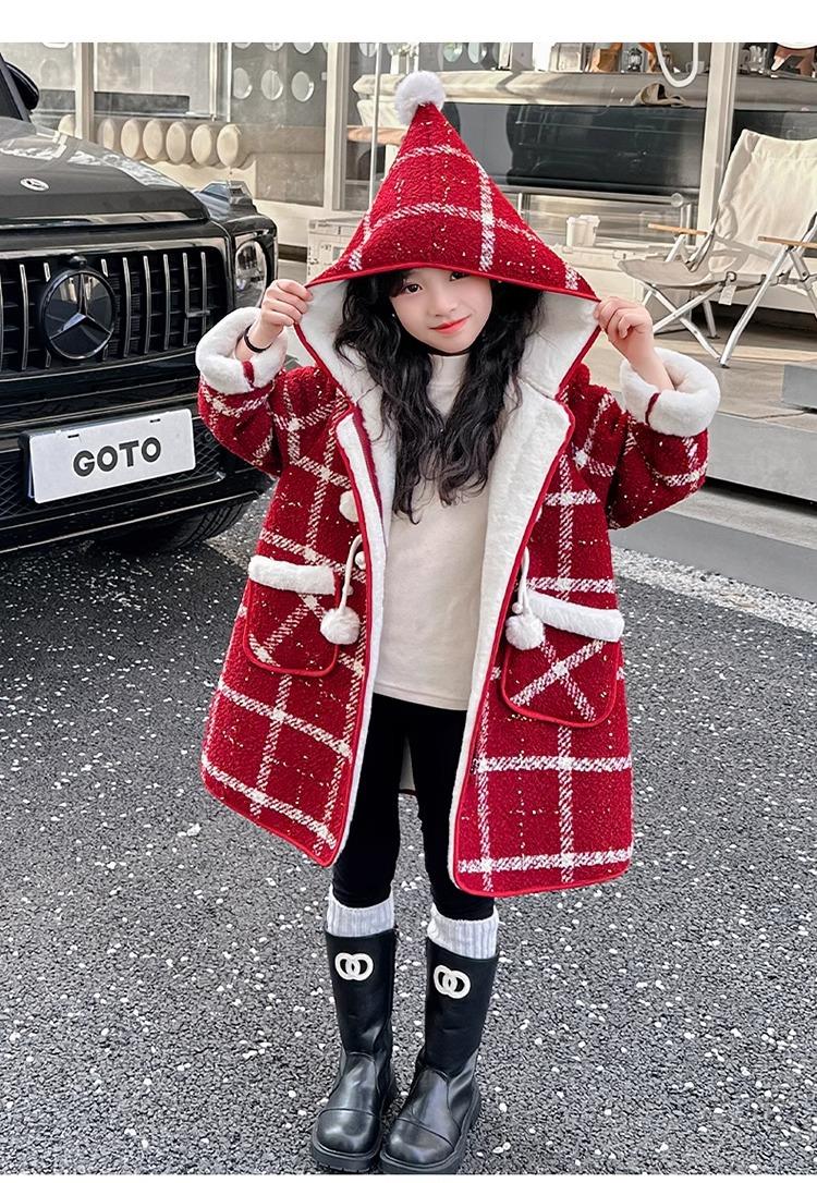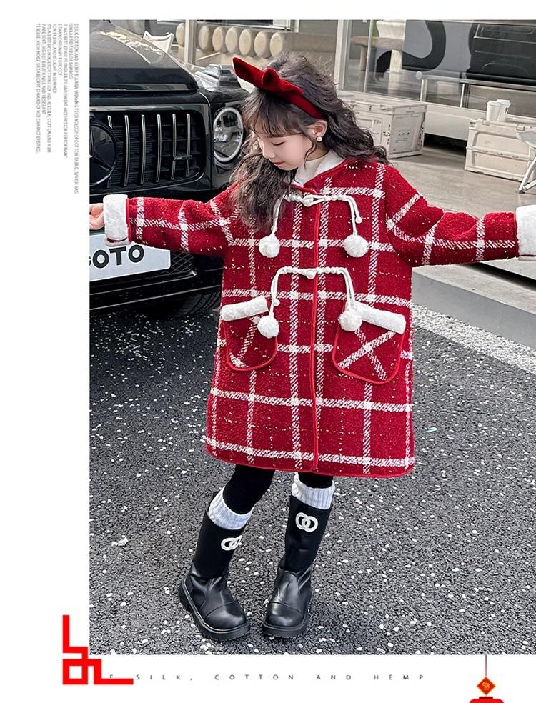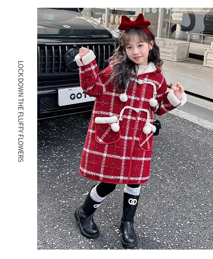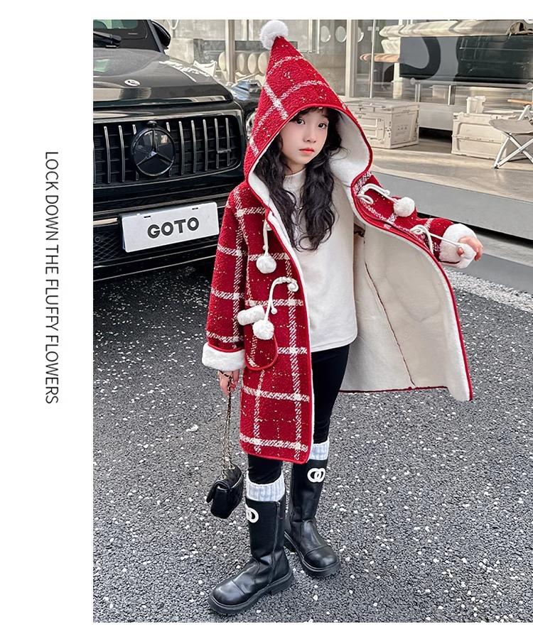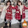 Estilo Coreano 2025 Nueva Ropa de Invierno para Niñas Chaqueta de Lana de Terciopelo Engrosada Abrigo a Cuadros de Estilo Coreano de Longitud Media