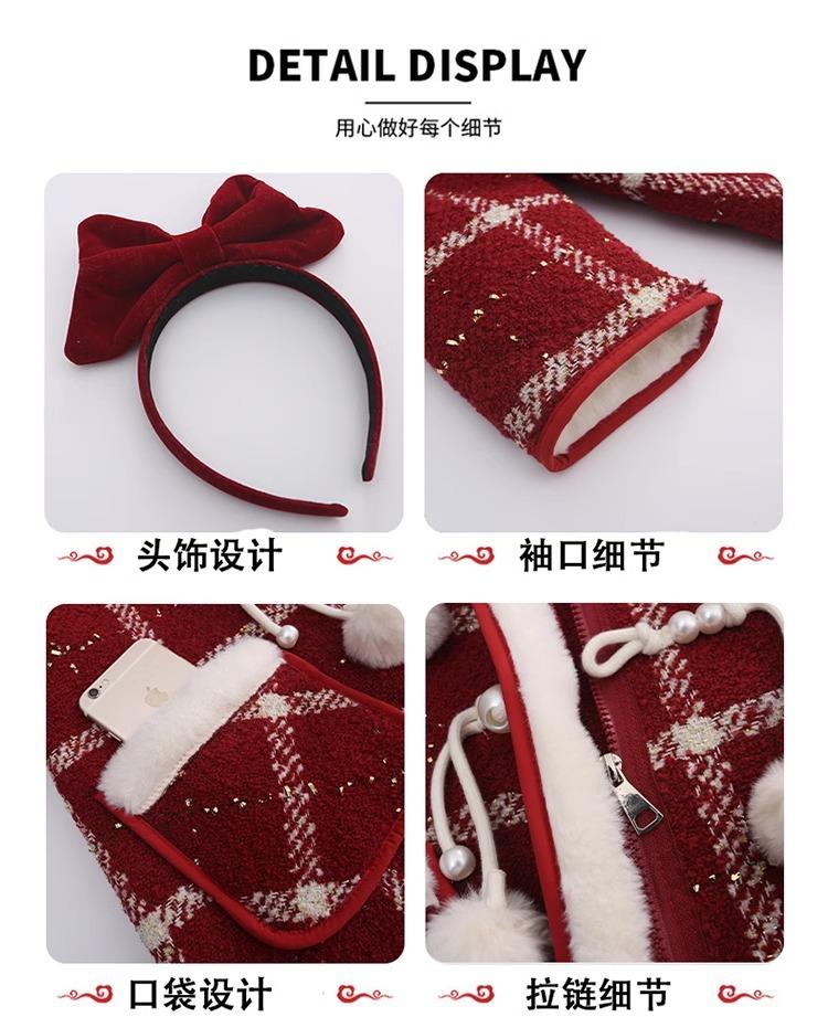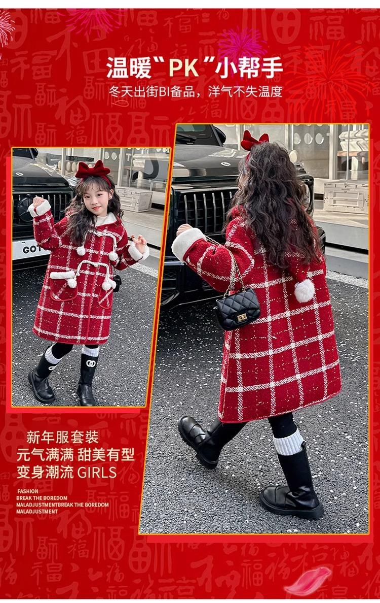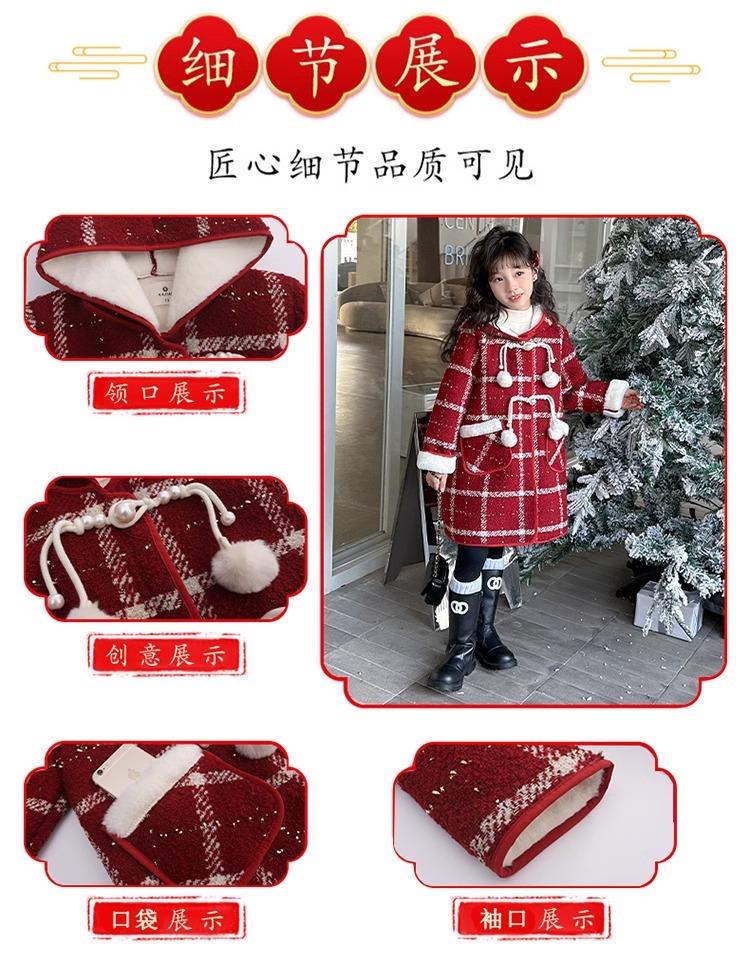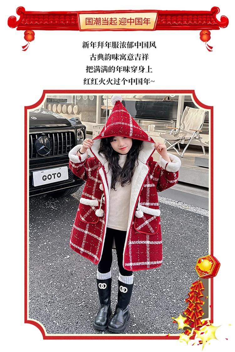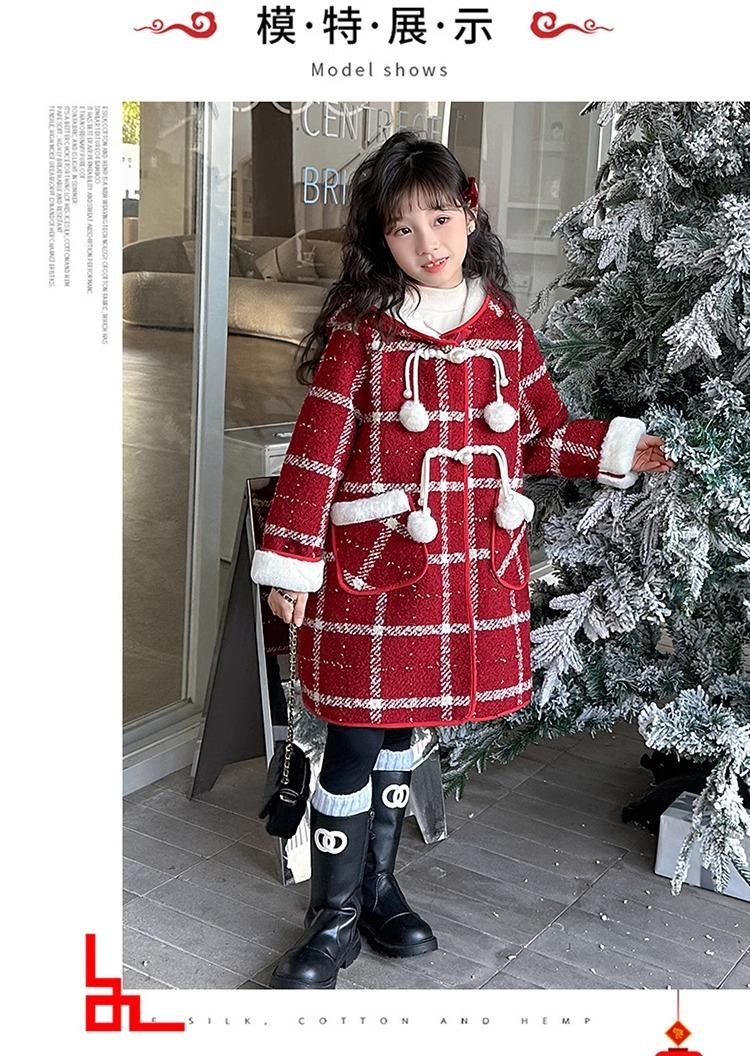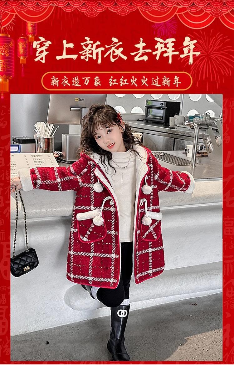 Estilo Coreano 2025 Nueva Ropa de Invierno para Niñas Chaqueta de Lana de Terciopelo Engrosada Abrigo a Cuadros de Estilo Coreano de Longitud Media