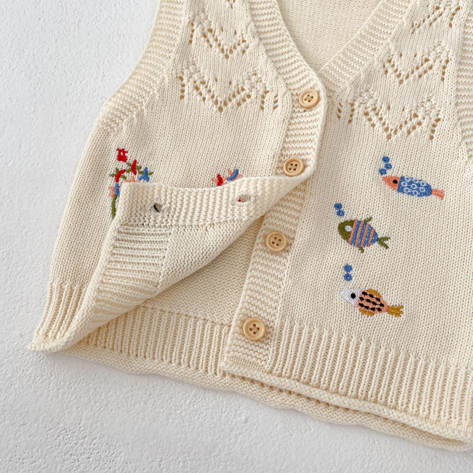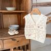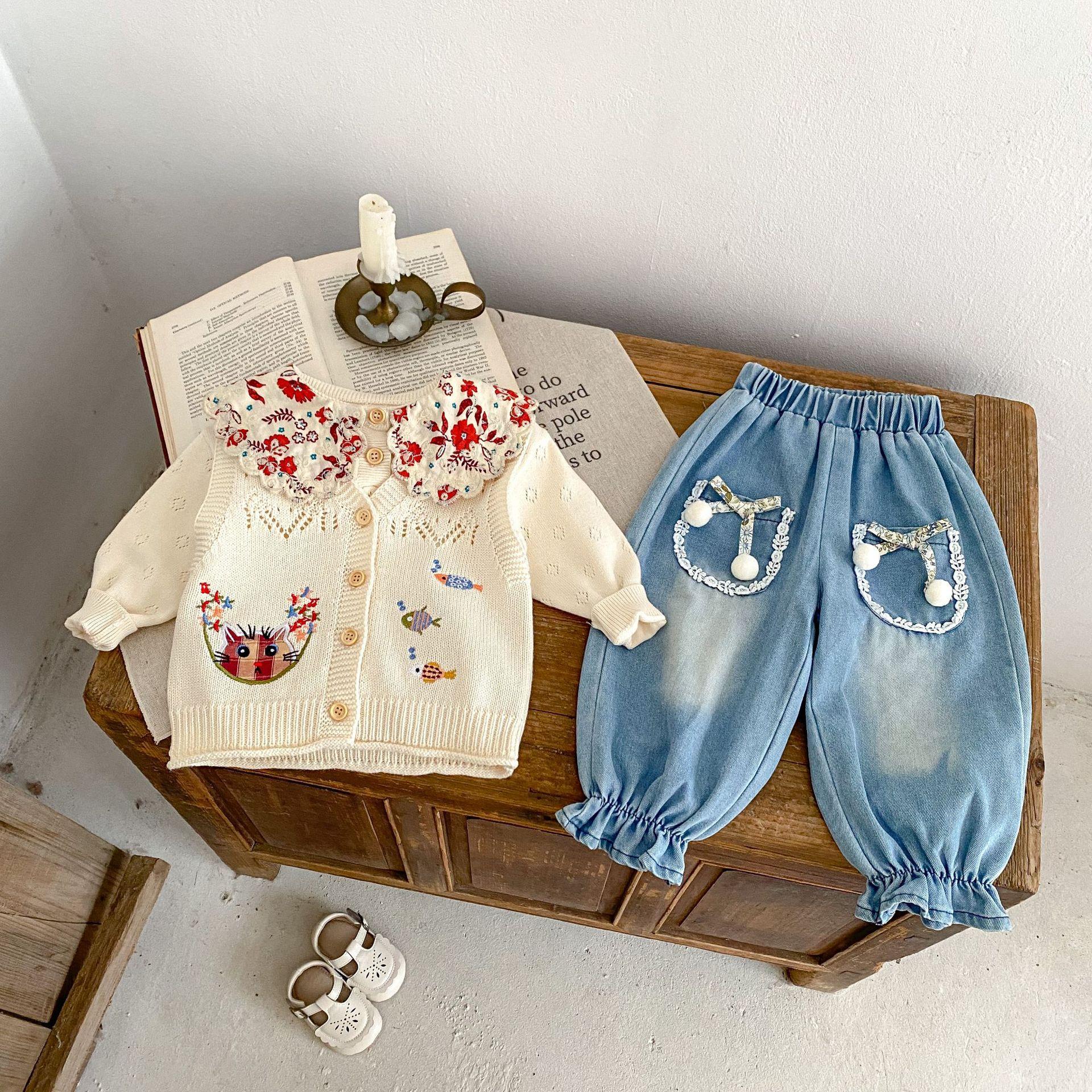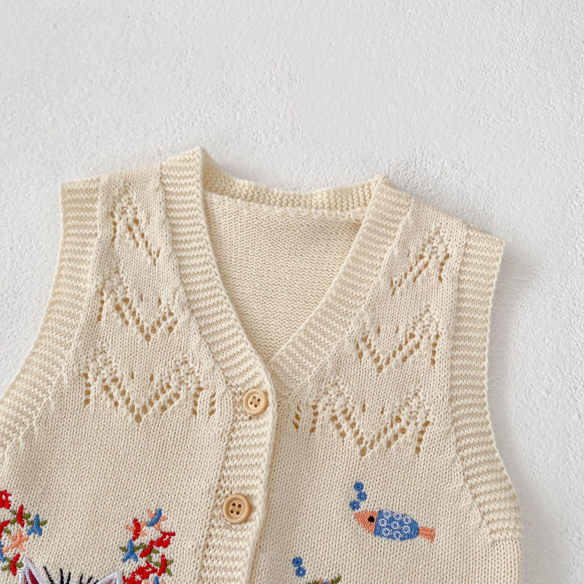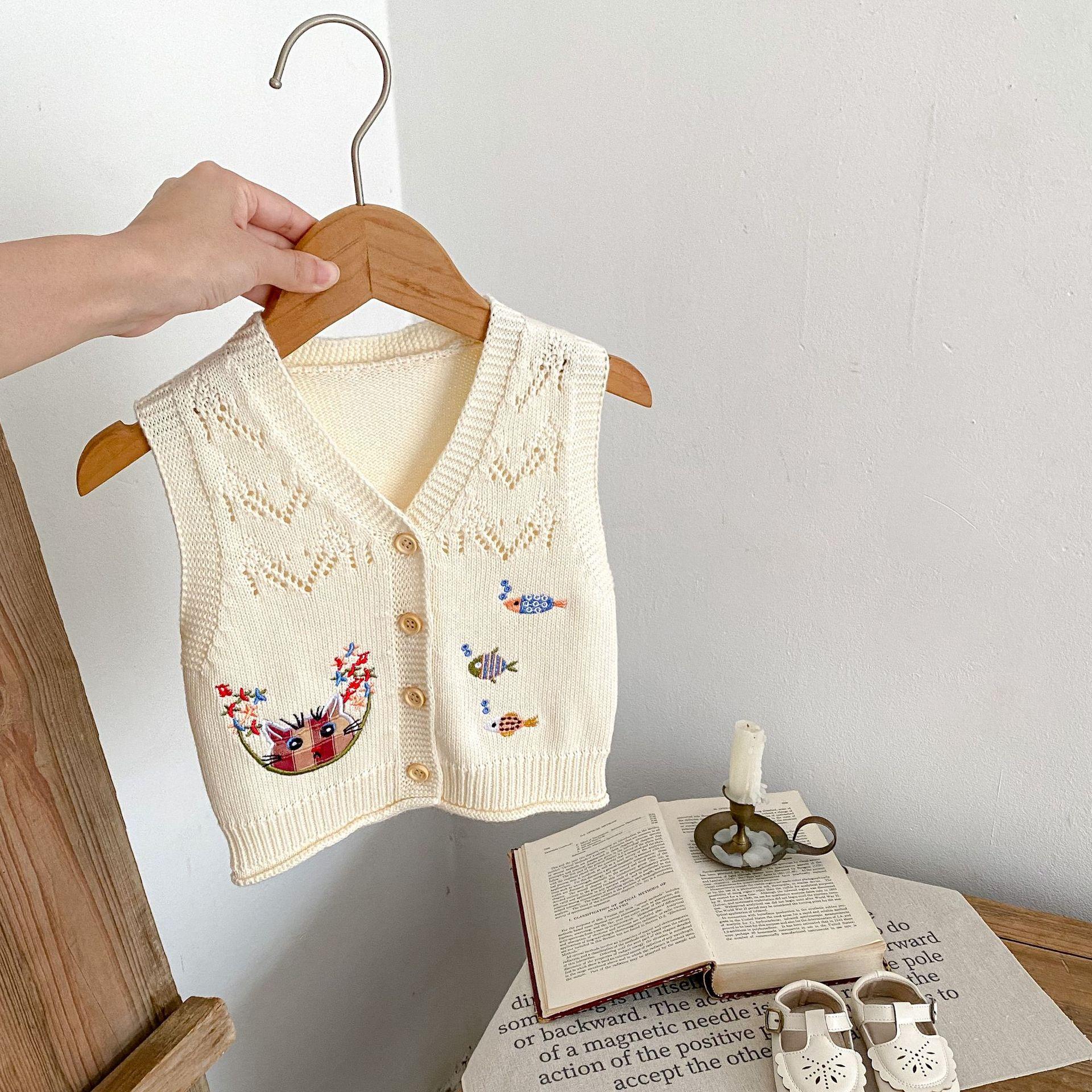 Ropa para Niños 2025 Bebé Niña Otoño Algodón Gasa Cárdigan Cuello en V Chaleco Tejido Bordado de Gato Suéter Infantil 0-3 Años