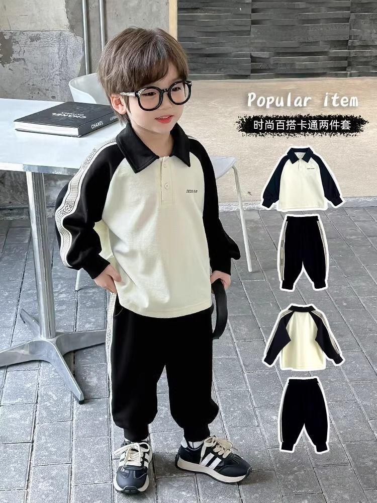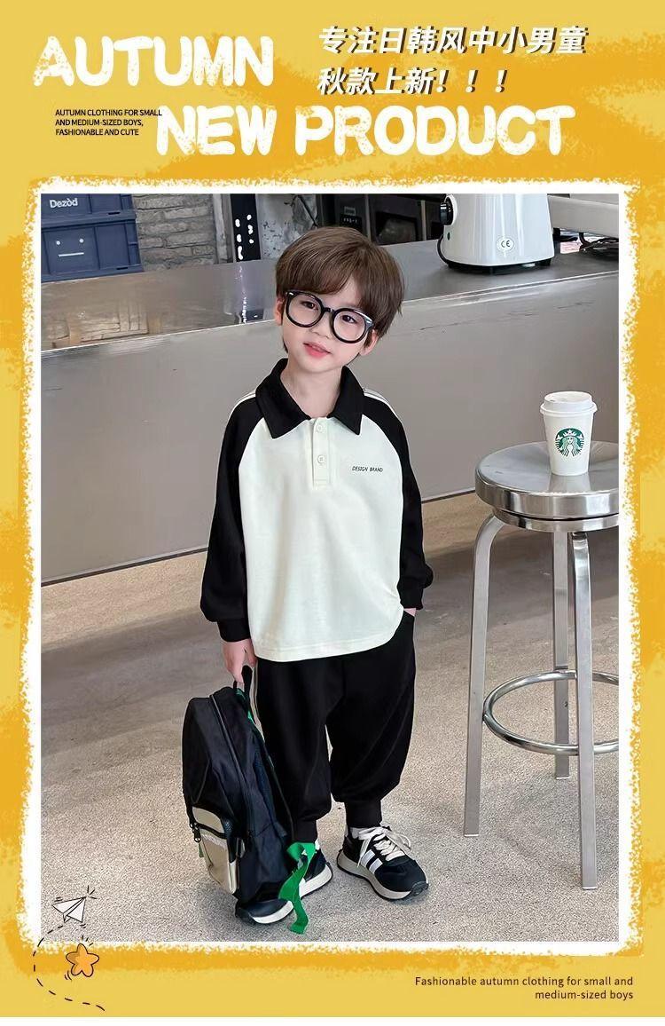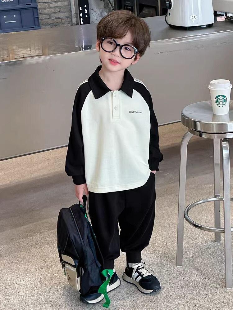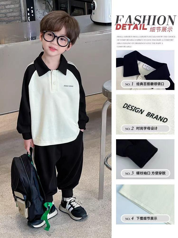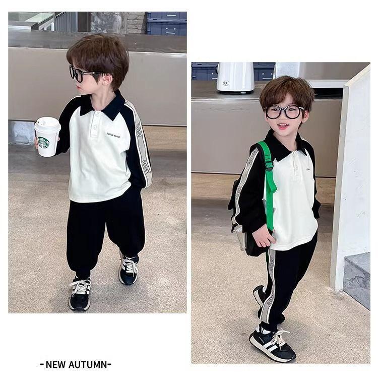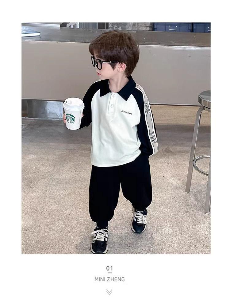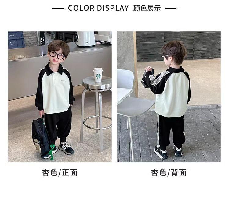 2024 nuevo traje de solapa de estilo occidental para niños primavera y otoño, conjunto de dos piezas de suéter y camisa POLO para bebé niño primavera y otoño