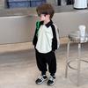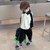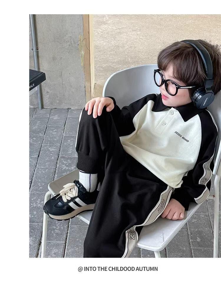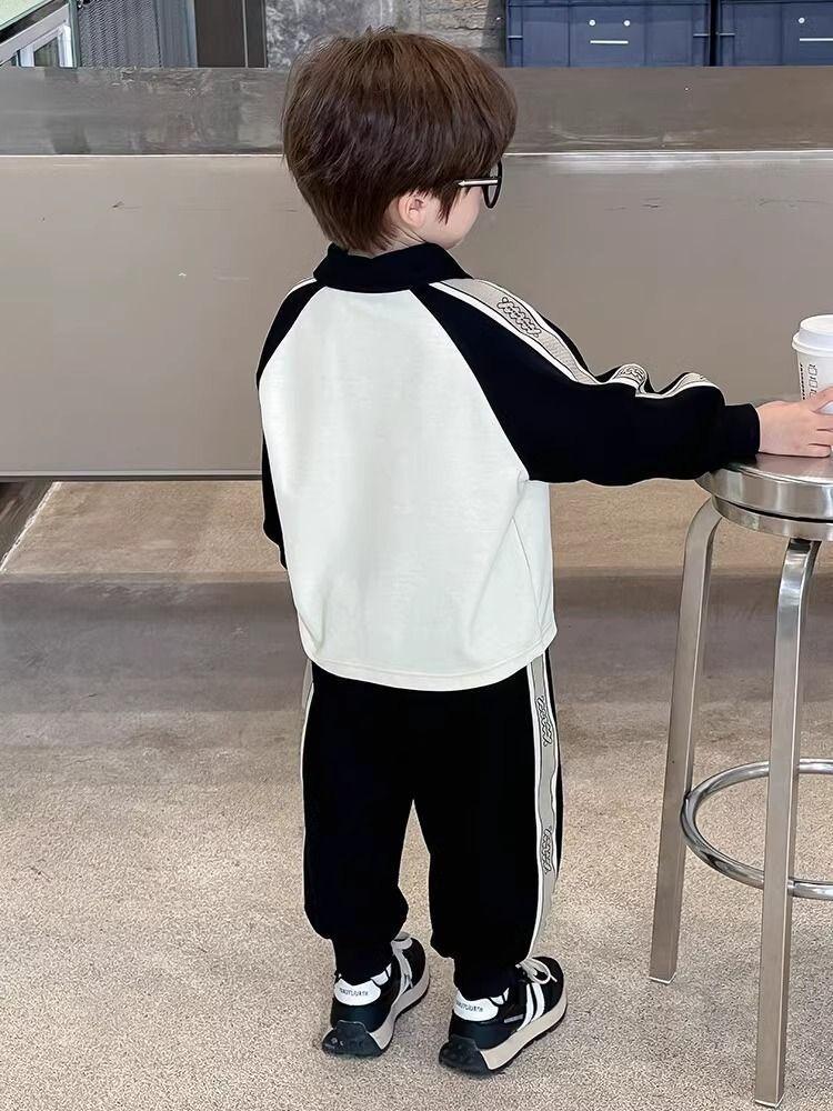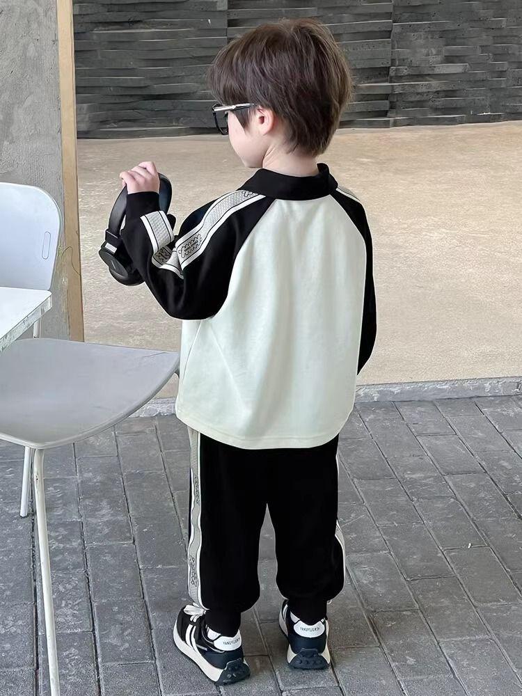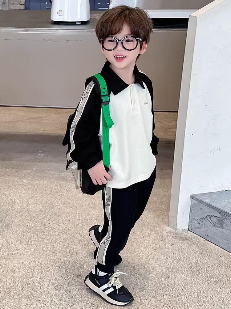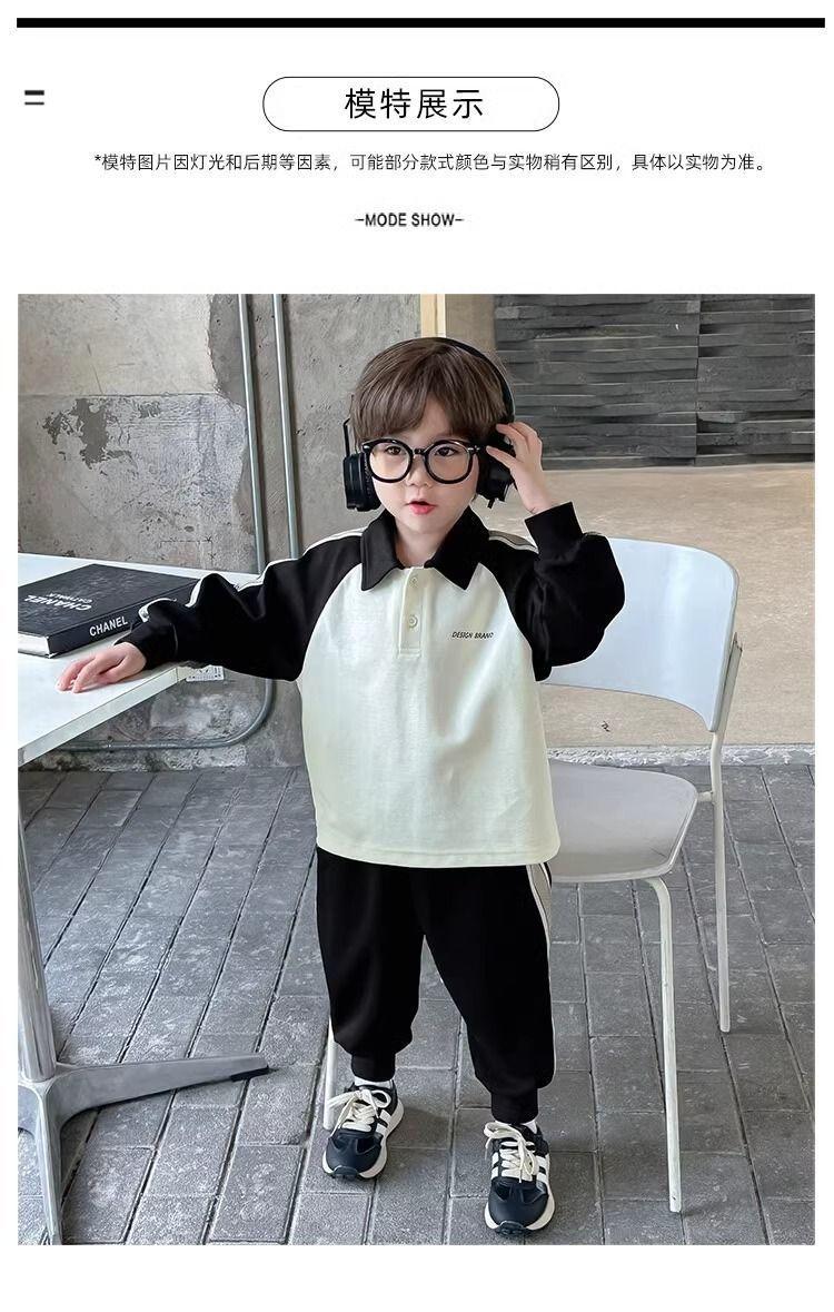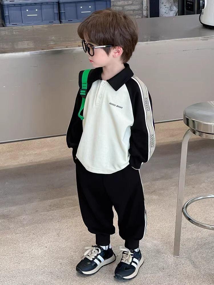 2024 nuevo traje de solapa de estilo occidental para niños primavera y otoño, conjunto de dos piezas de suéter y camisa POLO para bebé niño primavera y otoño