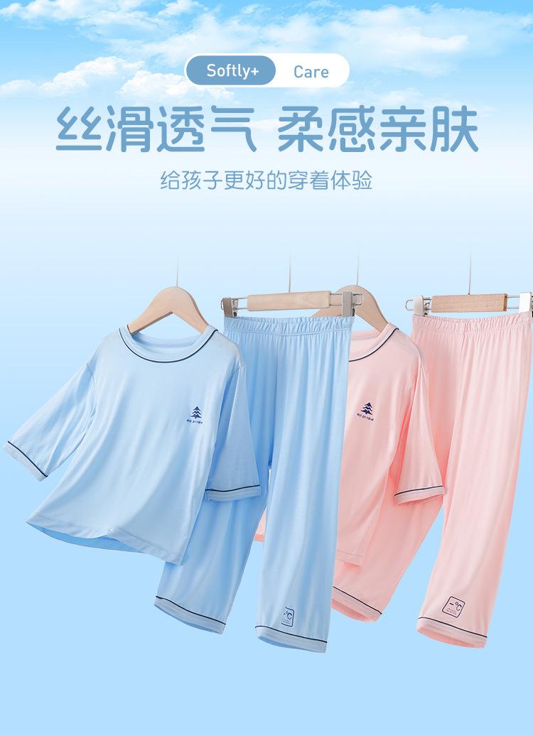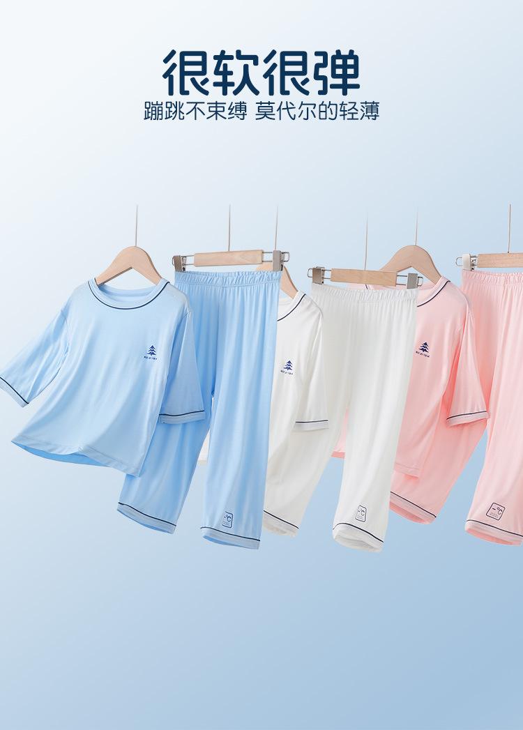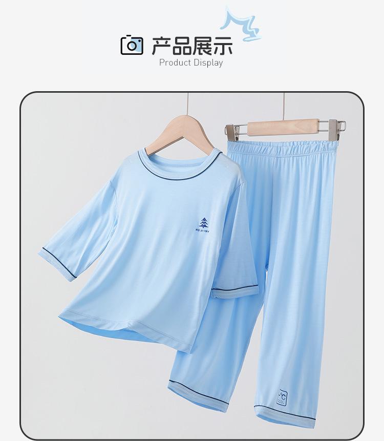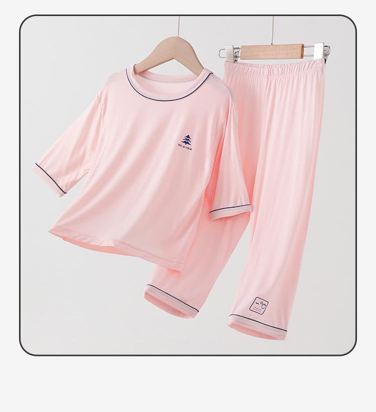 Conjunto Modal para Niños para Casa Primavera y Otoño Pijama Delgado para Niños y Niñas Traje para Aire Acondicionado Verano A