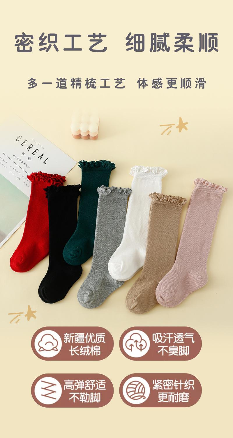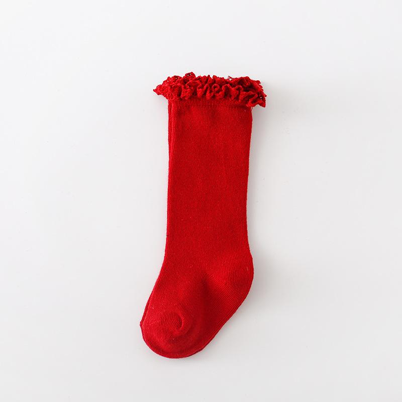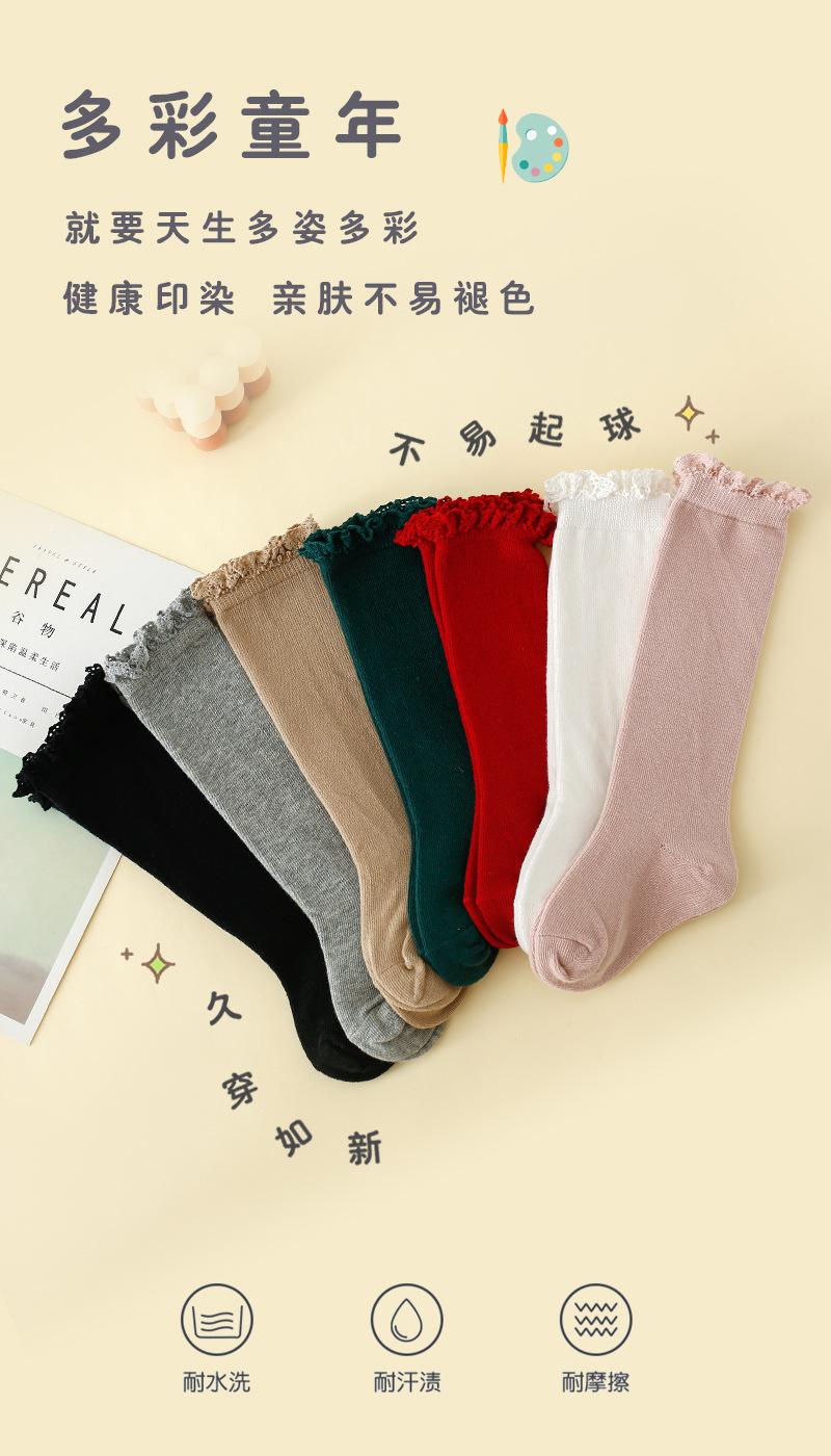 Calcetines de Primavera y Otoño para Niñas Calcetines de Encaje de Princesa de Otoño e Invierno Calcetines de Media Caña Calcetines Tejidos de Color Sólido de Tubo Alto Apilados