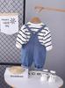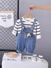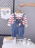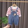 Conjunto de ropa de otoño para niño 2024, nuevo conjunto de primavera y otoño para niño, estilo occidental, pantalones de tirantes de manga larga para bebé, ropa de moda de dos piezas.