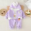 Purple rabbit radish long-sleeved three-piece set, Pink rabbit radish long-sleeved three-piece set