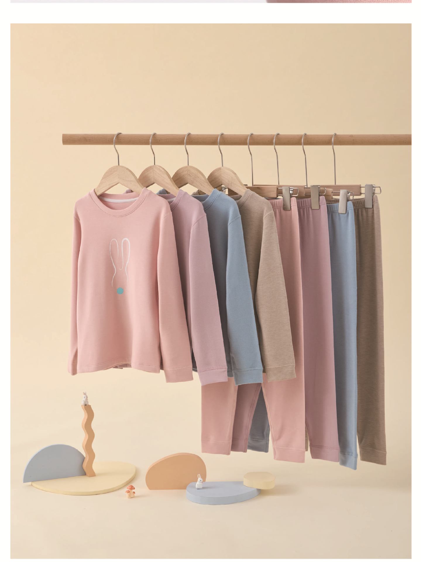 Gray and blue line bear, Light brown line bear, Pink line rabbit, Purple line rabbit