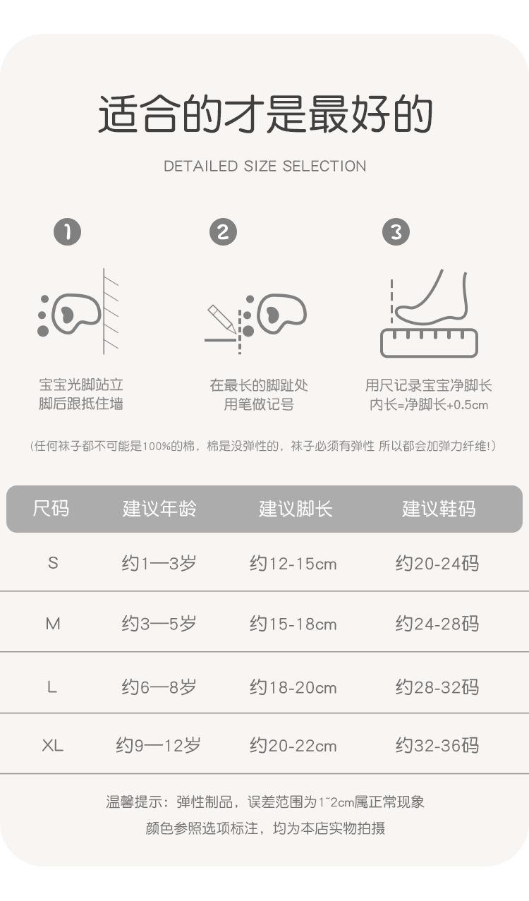 S (recommended foot length 12-15cm) about 1-3 years old, M (recommended foot length 15-18cm) about 3-5 years o...