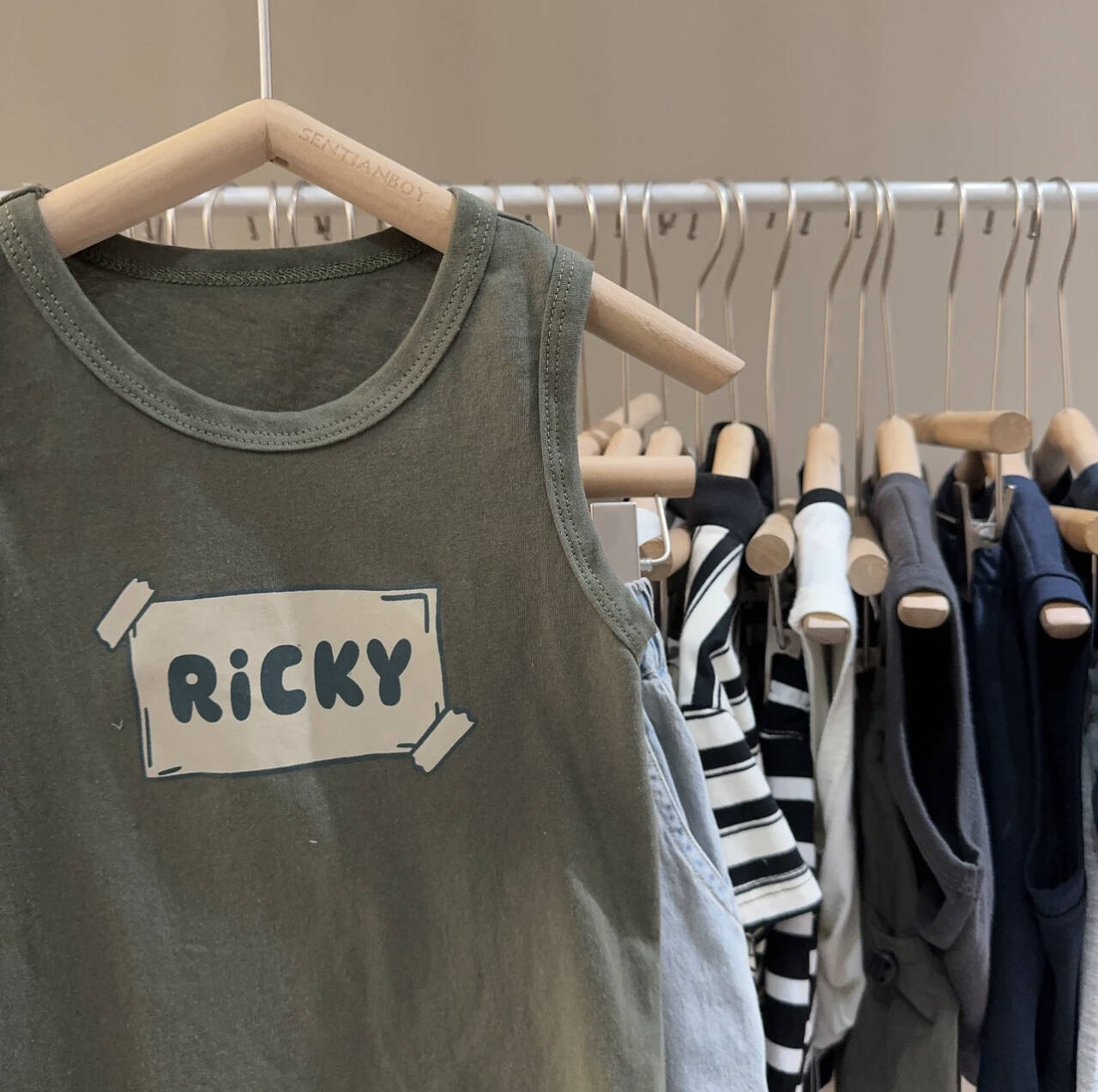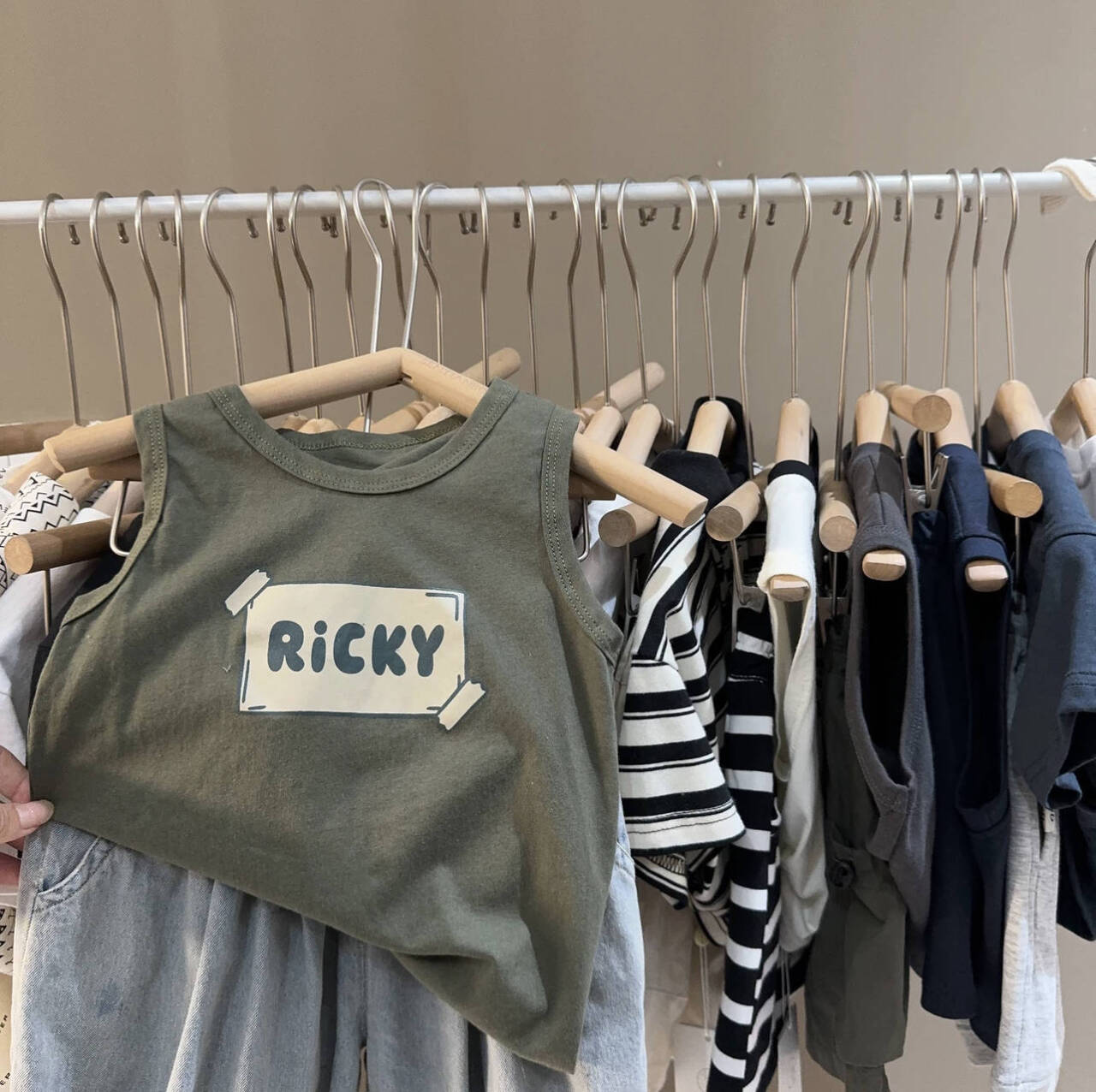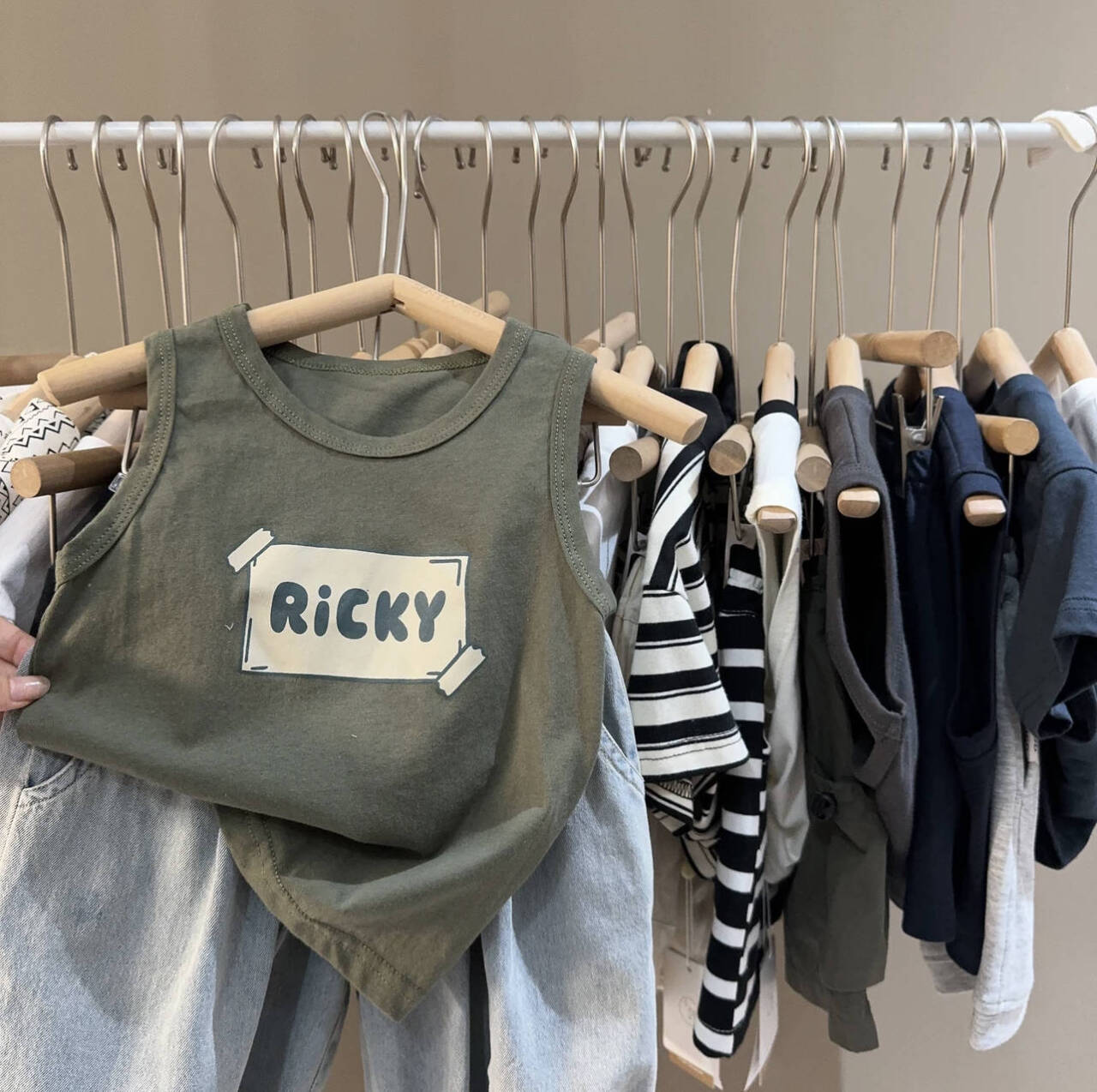 Chaleco para Niños 2025 Verano Niños Verde Nueva Letra Casual Simple Chaleco Marca Trendy Top Sin Mangas Venta al por Mayor