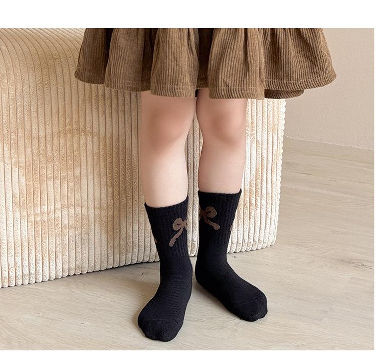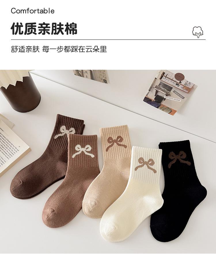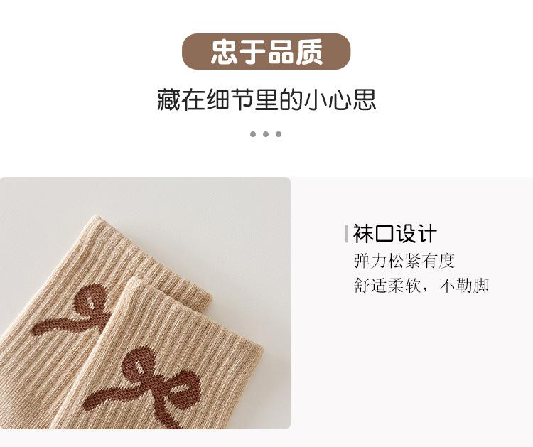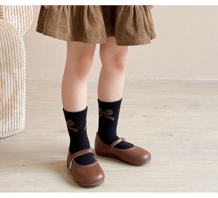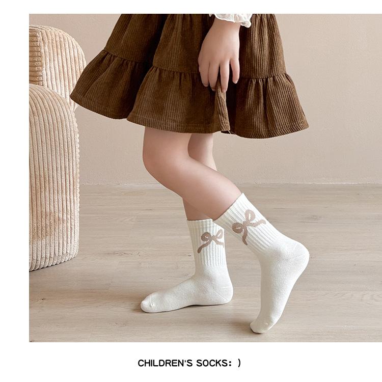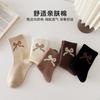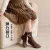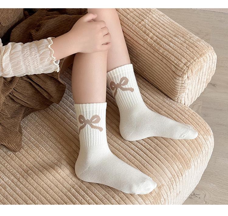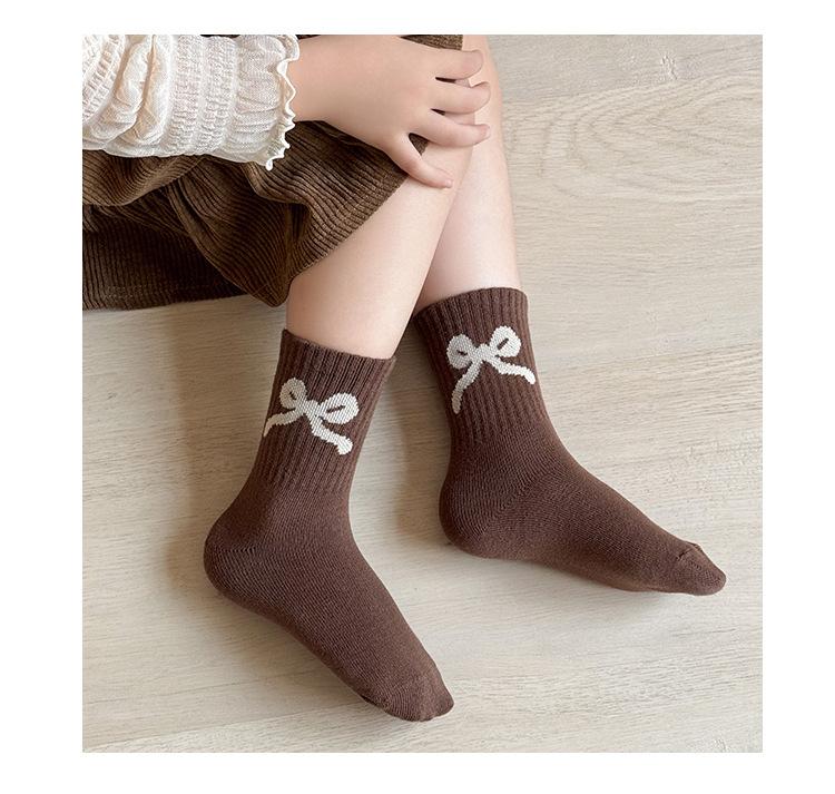 Calcetines de algodón para niñas, otoño e invierno, nuevos calcetines marrones con lazo, calcetines deportivos de tubo medio, calcetines dulces y lindos de princesa para estudiantes.