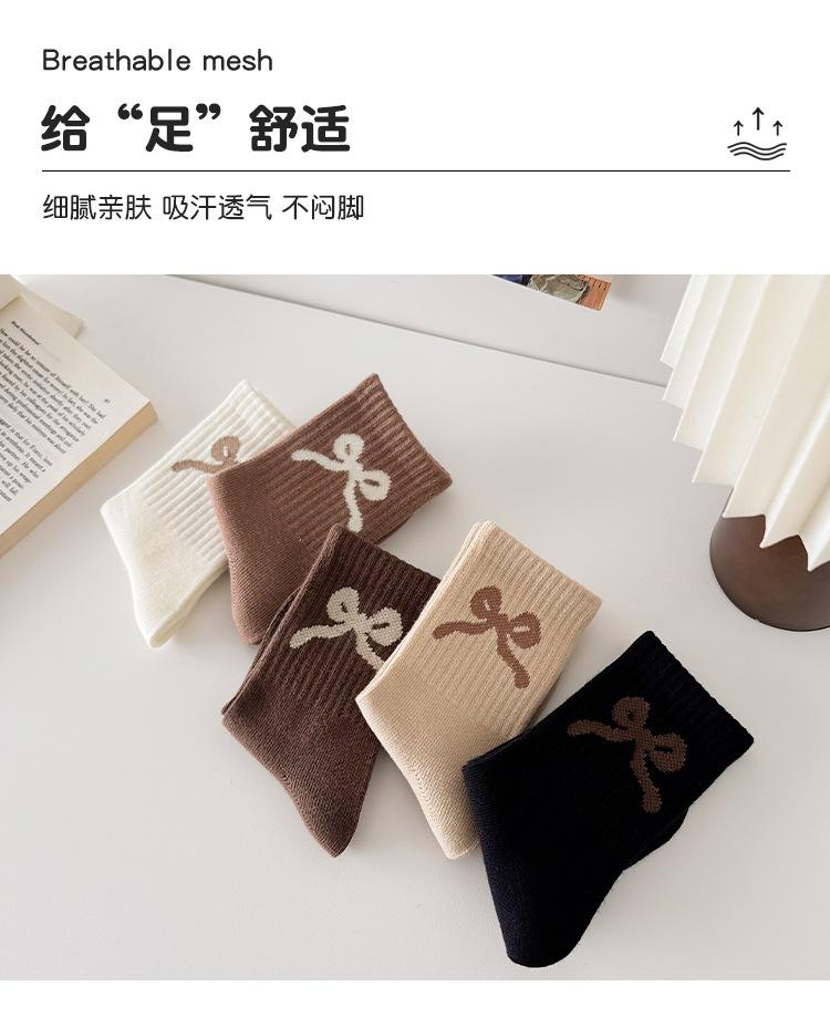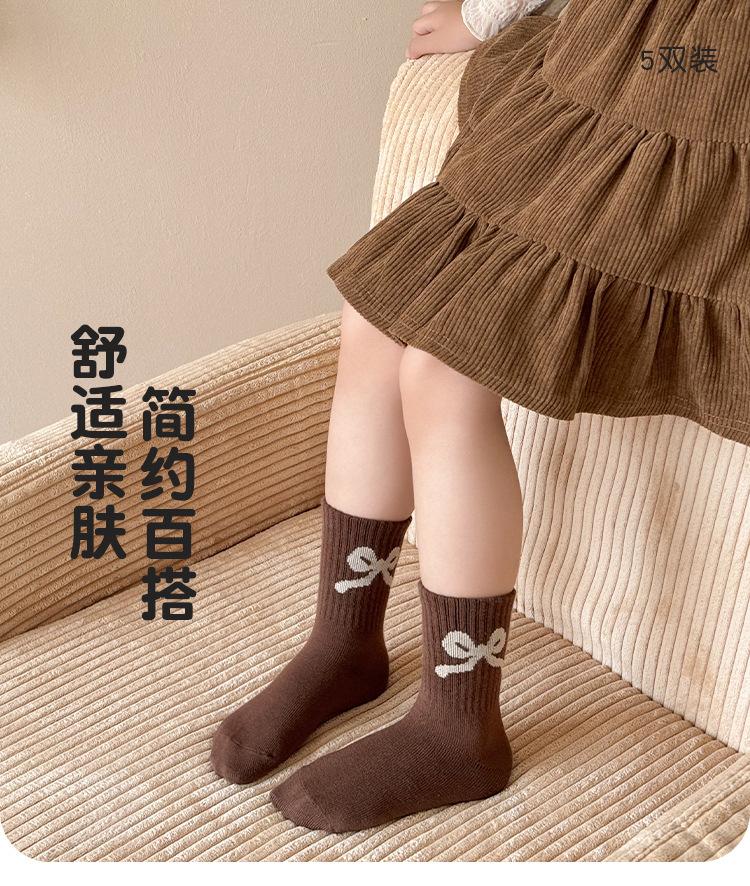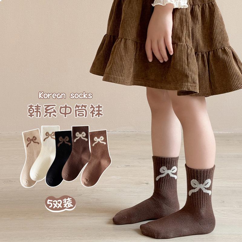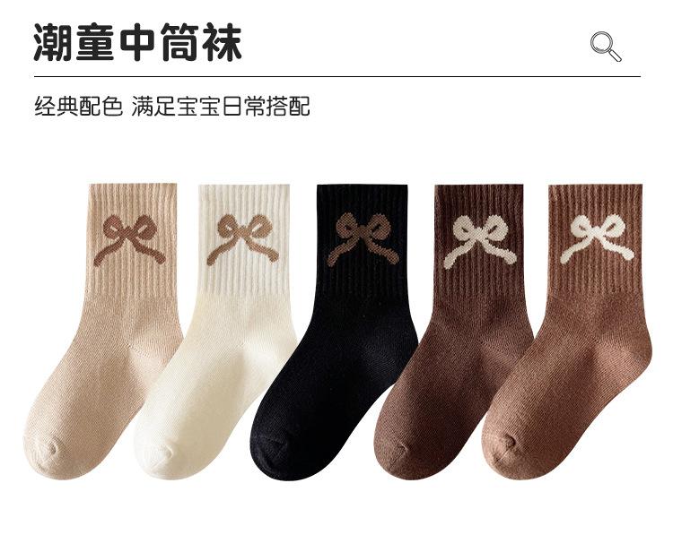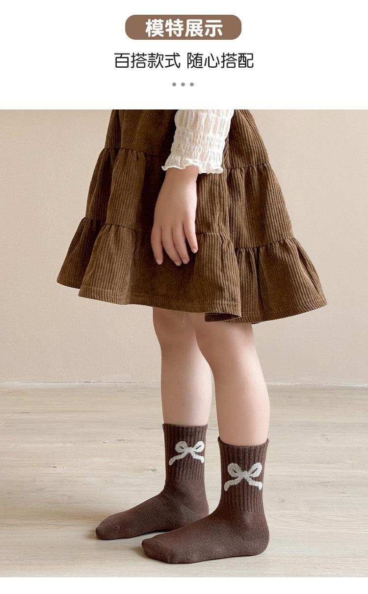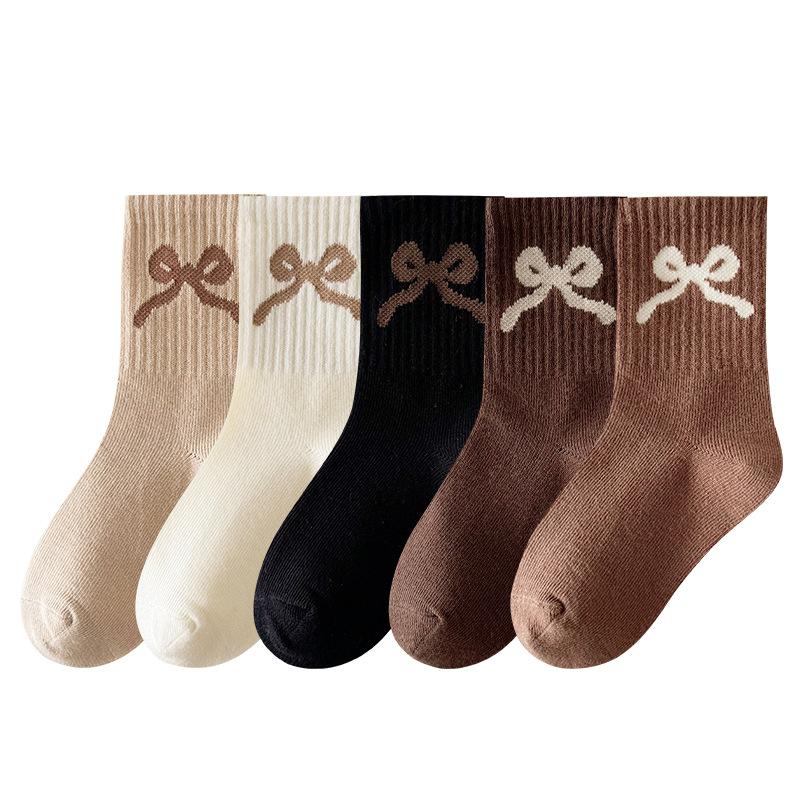 Calcetines de algodón para niñas, otoño e invierno, nuevos calcetines marrones con lazo, calcetines deportivos de tubo medio, calcetines dulces y lindos de princesa para estudiantes.