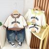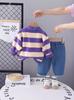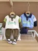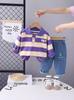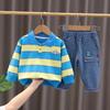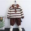 Traje de Otoño de Manga Larga para Niño 2024 Nuevo Camiseta POLO a Rayas de Estilo Occidental para Niño Primavera y Otoño de Dos Piezas Moda