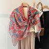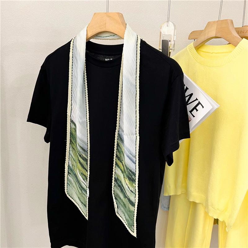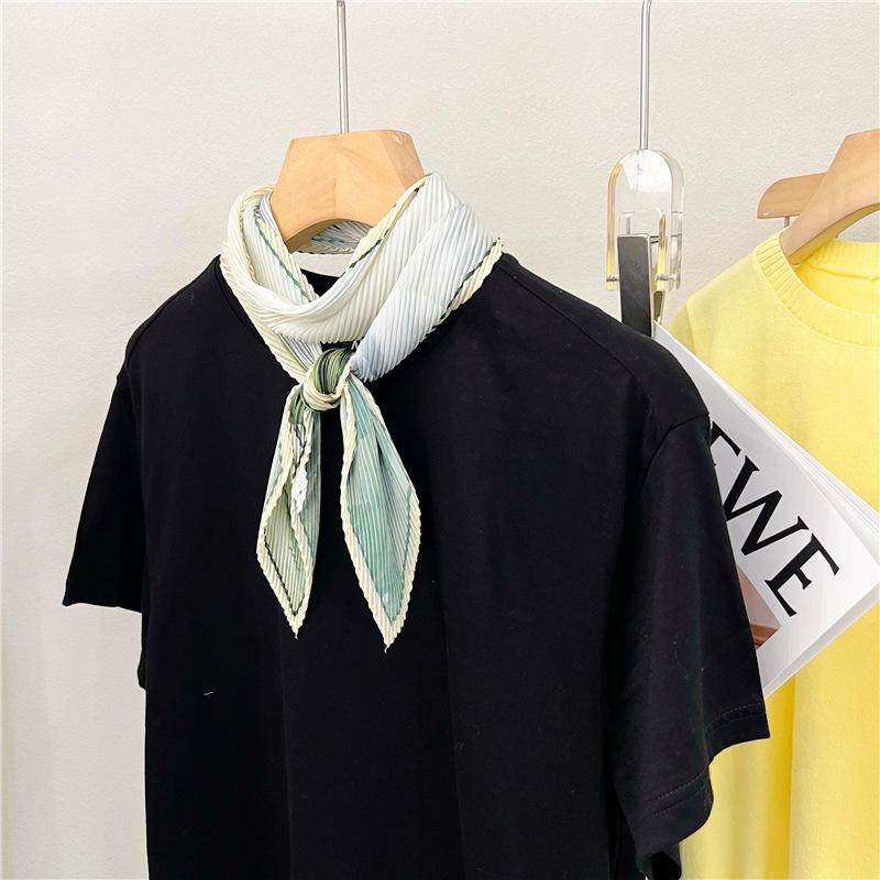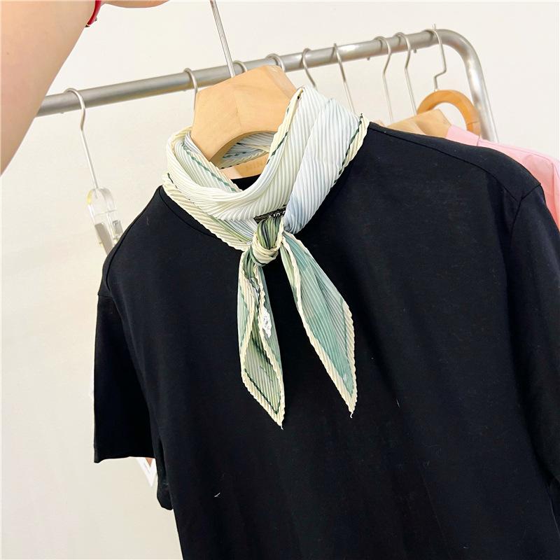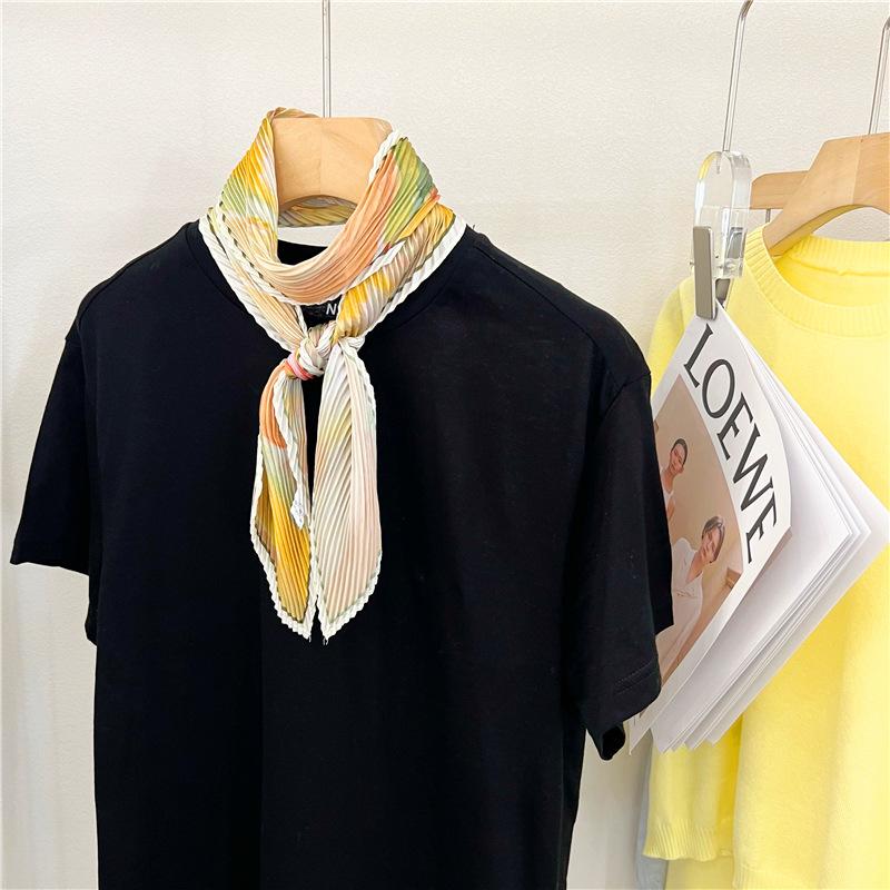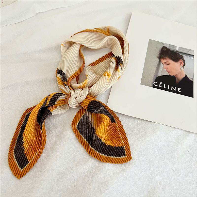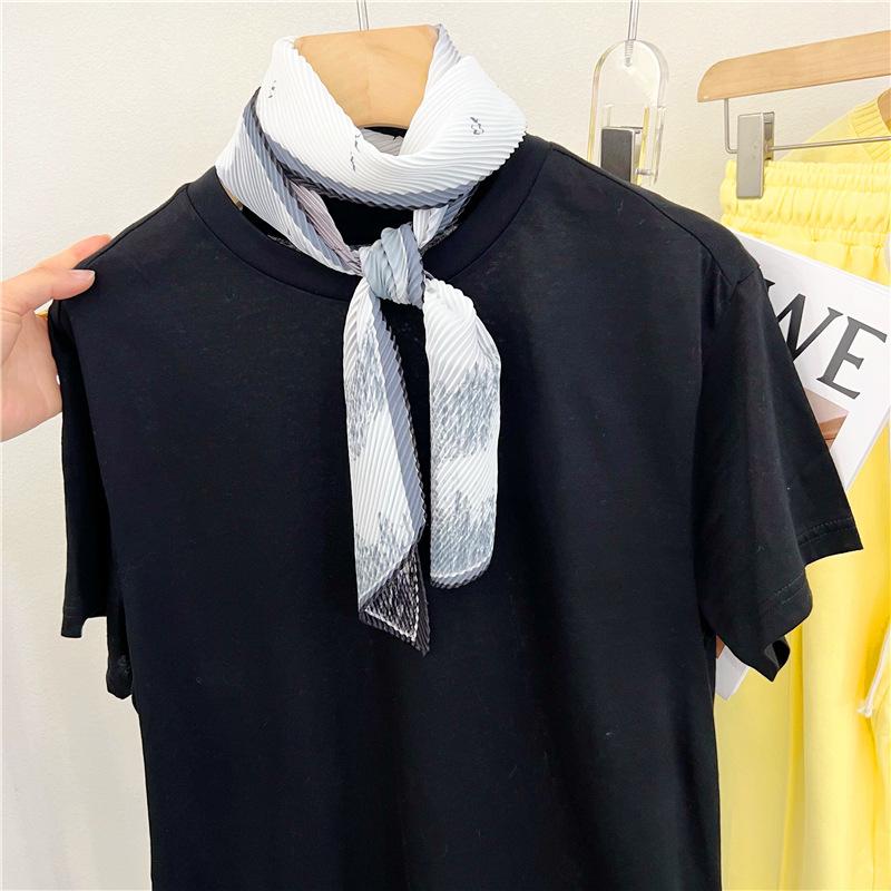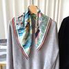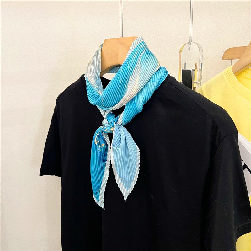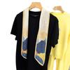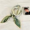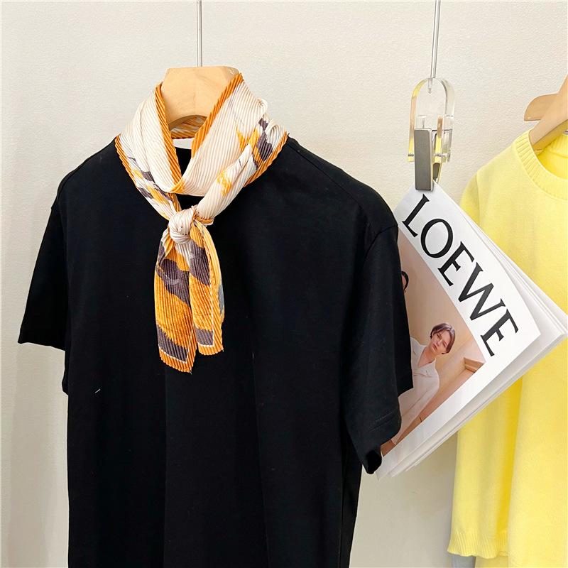 Bufanda larga de seda arrugada con pintura al óleo de paisaje de primavera y otoño para mujer, cinturón decorativo para el cabello, bufanda protectora para el cuello, bufanda pequeña, bolsa para atar