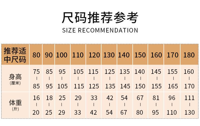 Children (3~8 years old, 100~140cm)