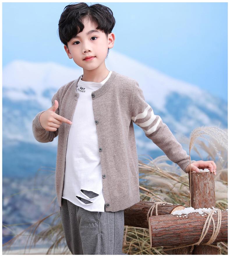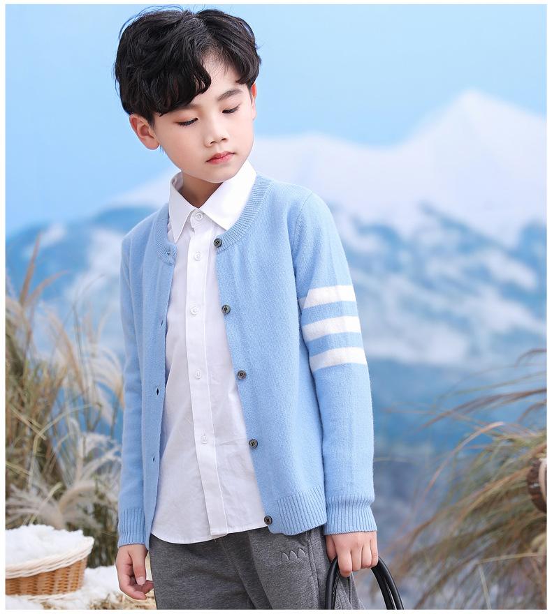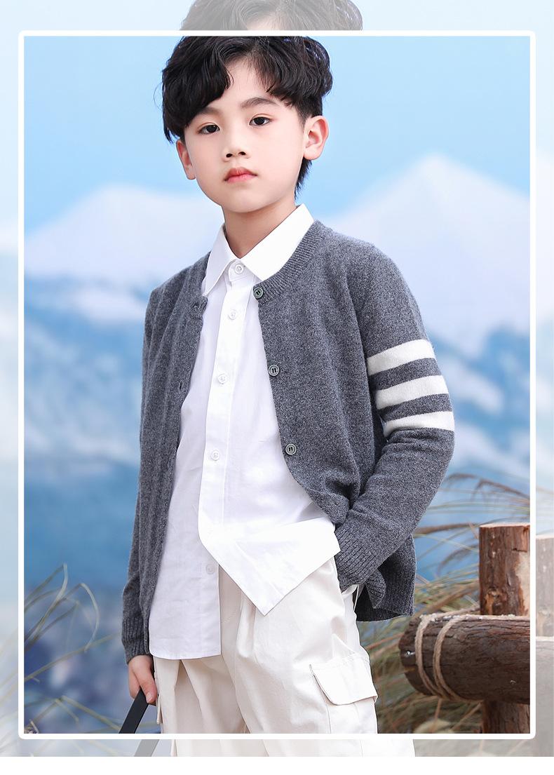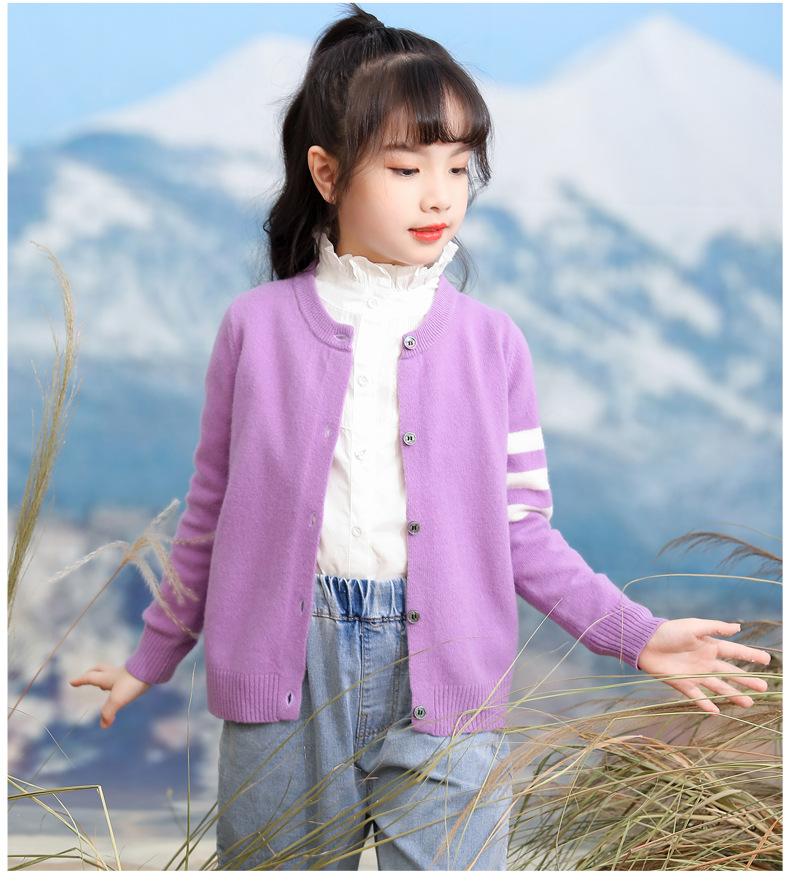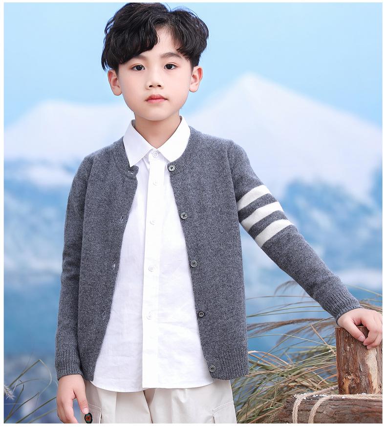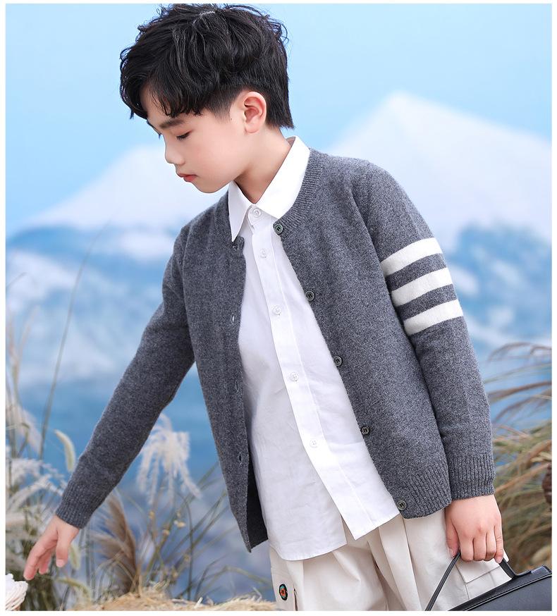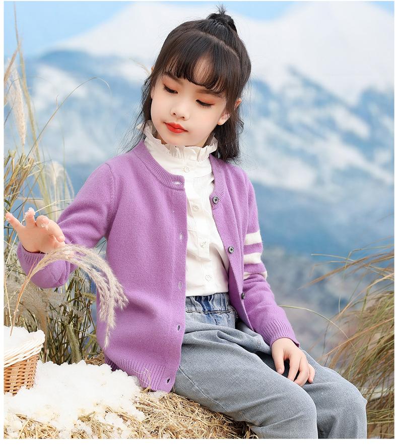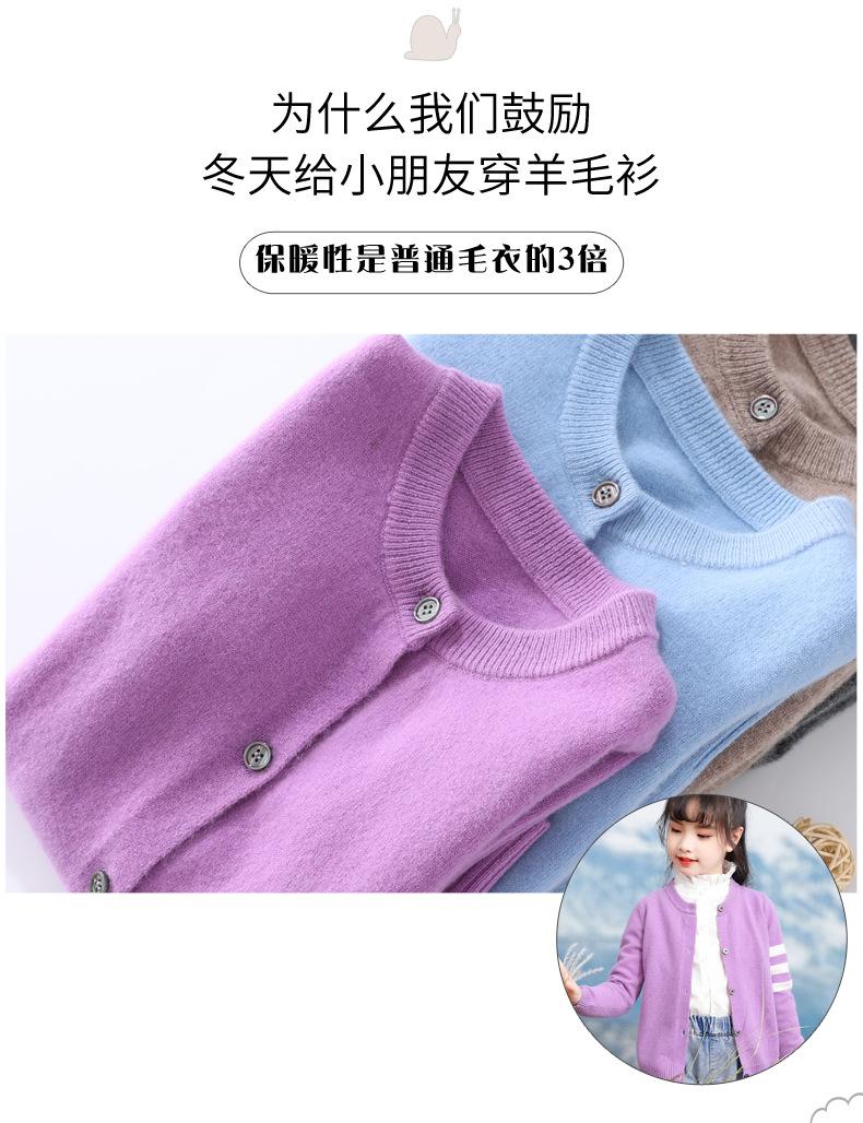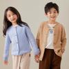 Cárdigan de lana para niños y niñas, cuello redondo, otoño e invierno 2024, nuevo bebé, 100% lana pura, estilo universitario, abrigo, suéter