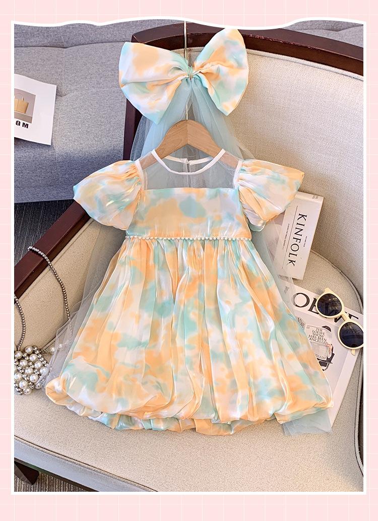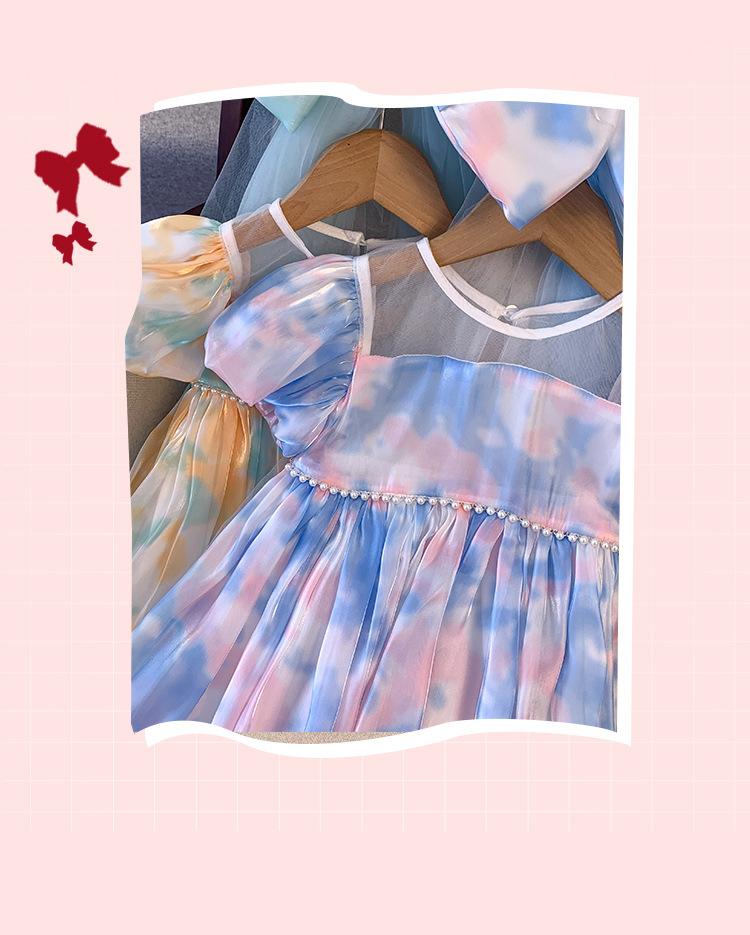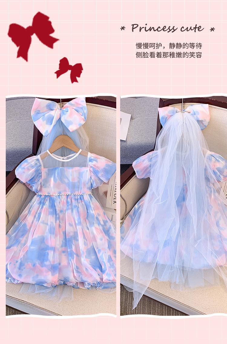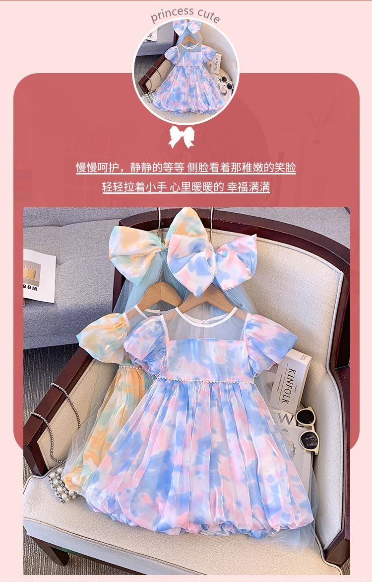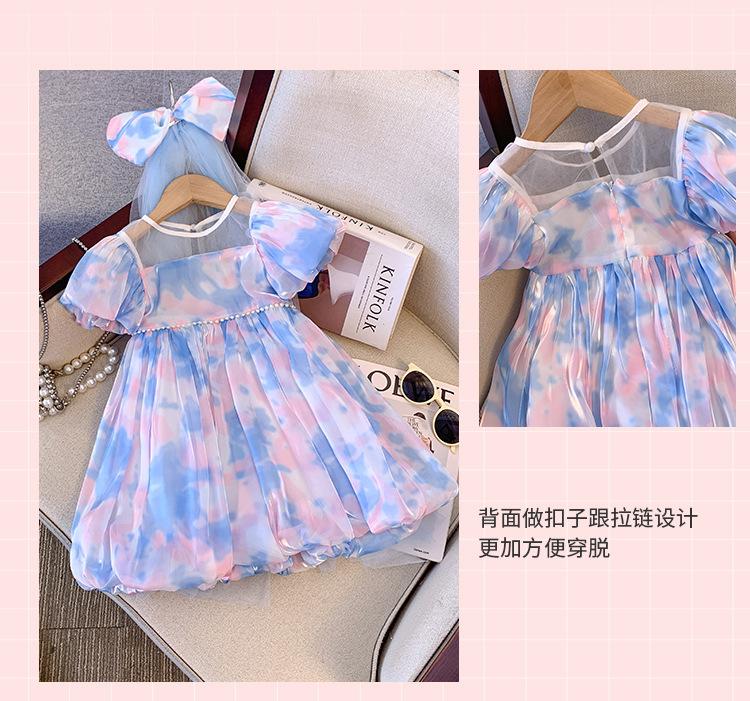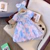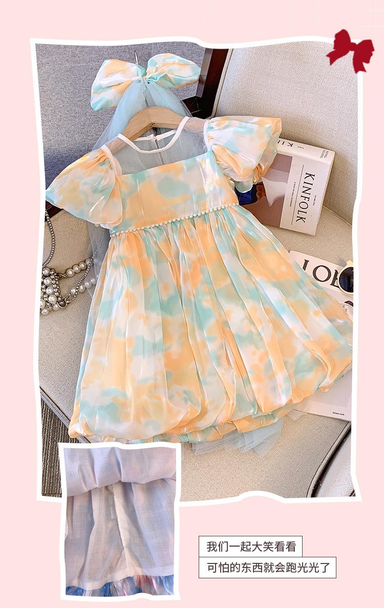 Vestido de Manga Abullonada para Niñas Verano 2025 Estilo Mariposa Dulce Falda Abullonada Vestido de Cumpleaños Vestido de Princesa Floral