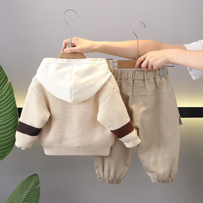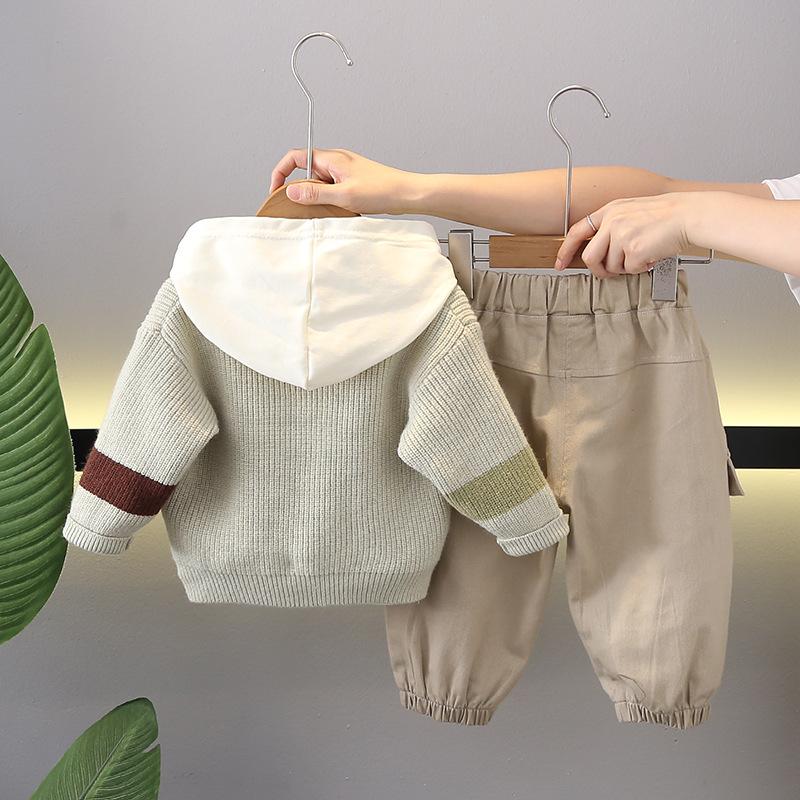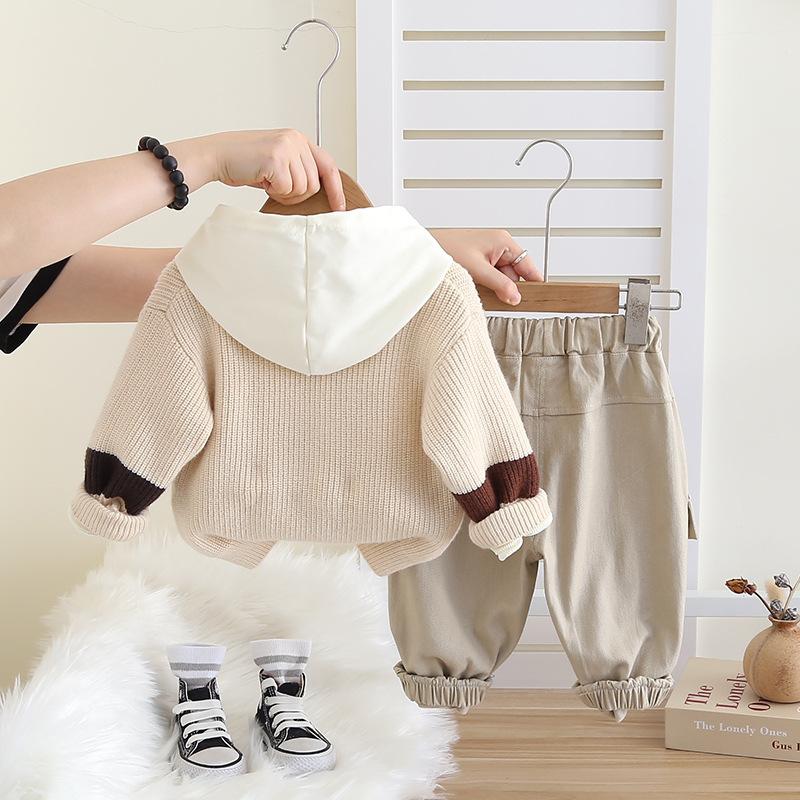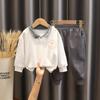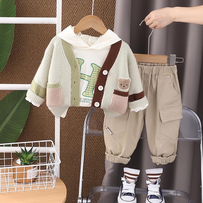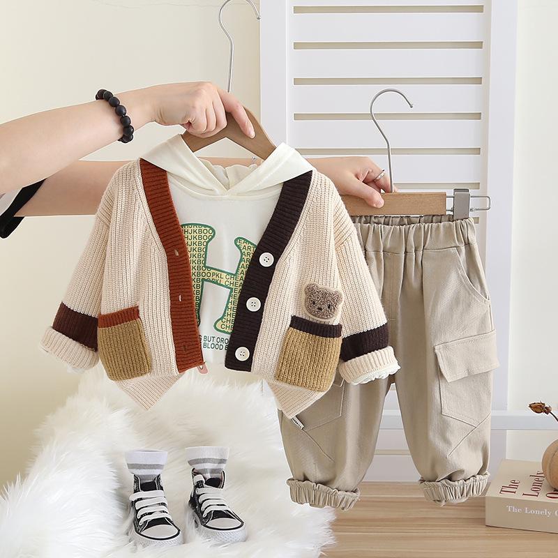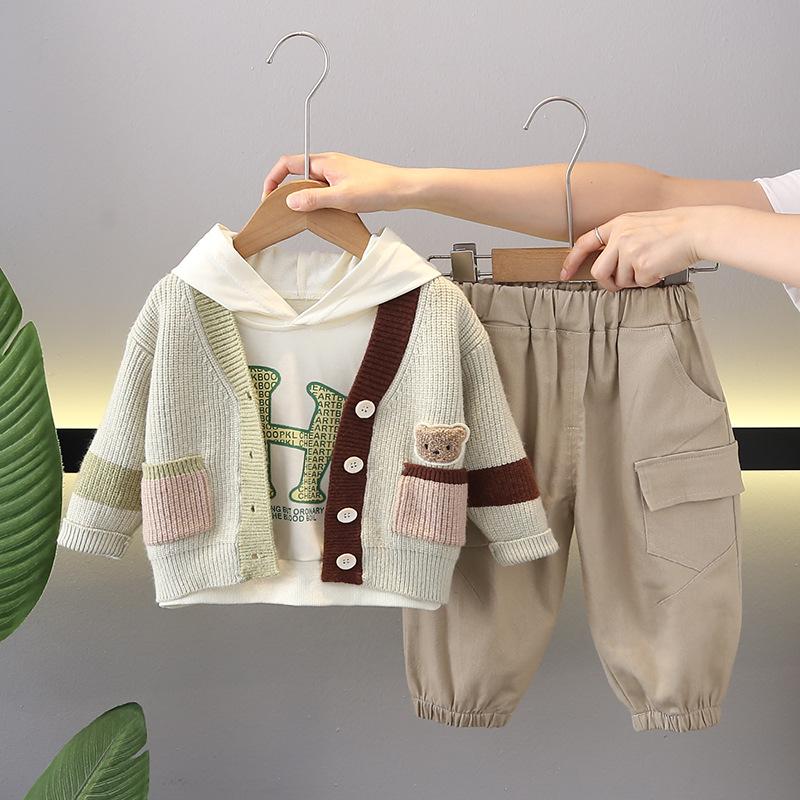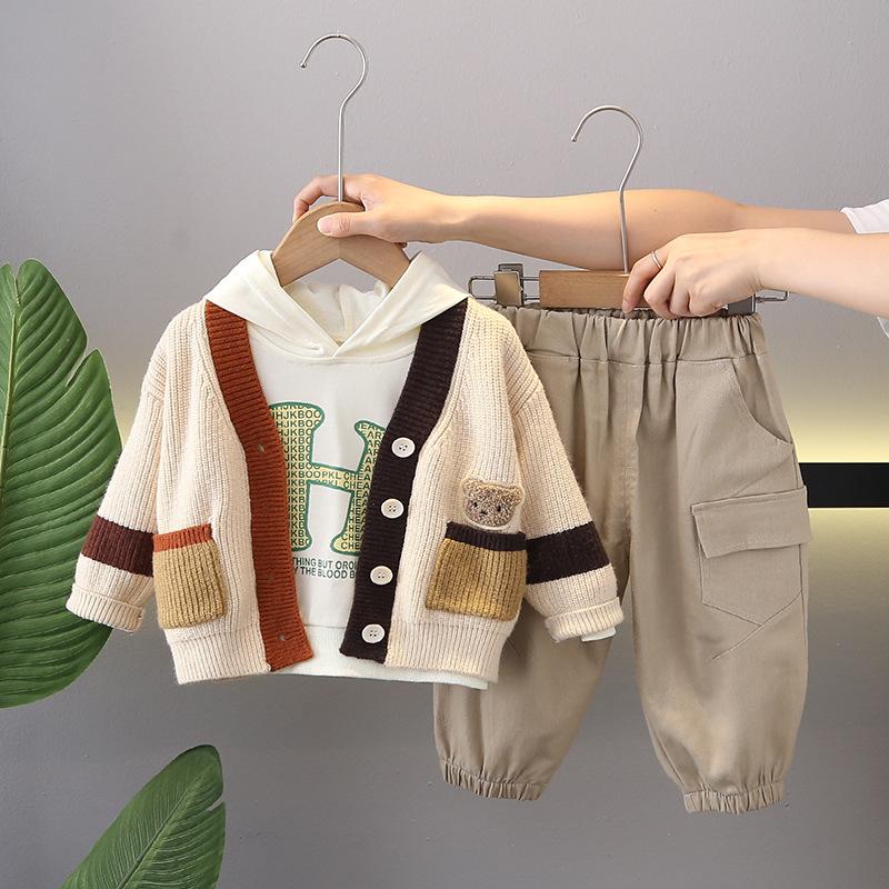 Ropa para Niños Traje de Otoño para Niño Nuevo Estilo Occidental Bebé Varón Estándar Oso Suéter Primavera y Otoño para Niños Set de Tres Piezas Estilo Coreano