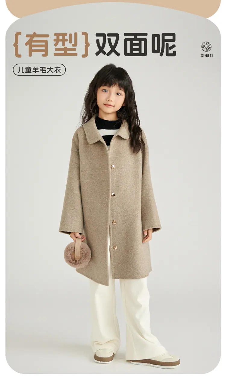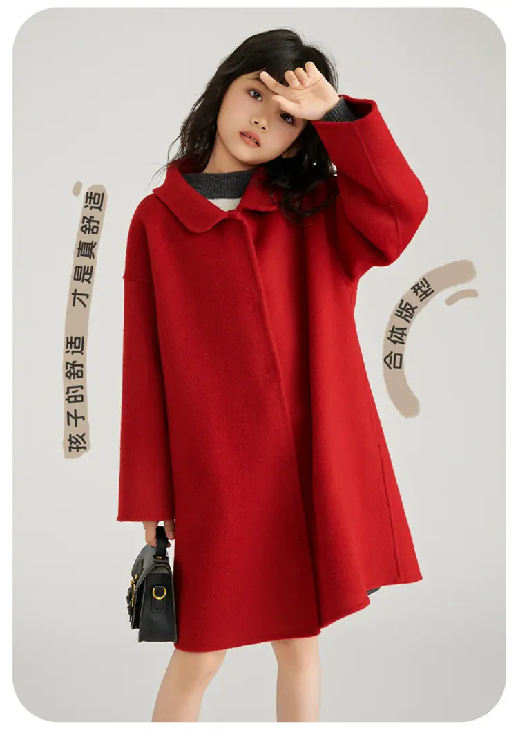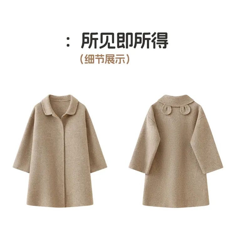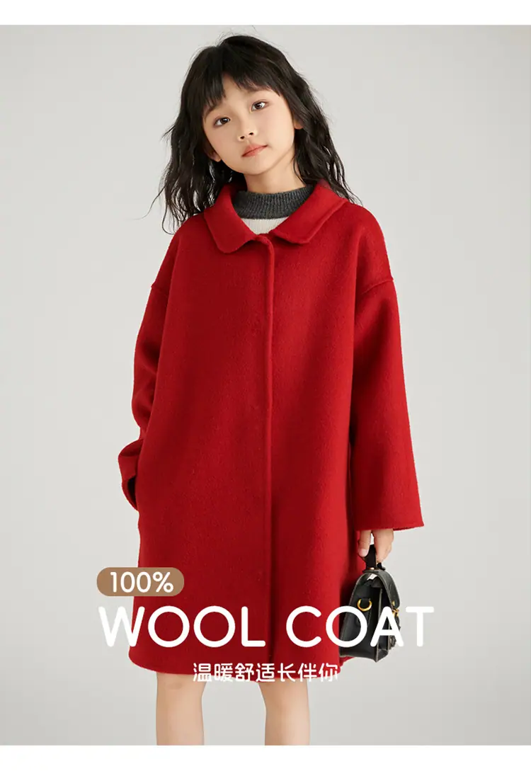 Abrigo de Lana de Doble Vista para Niñas y Niños 2025 Otoño Nuevo Chaqueta de Lana para Niños 100% Lana Engrosado Estilo Largo Medio