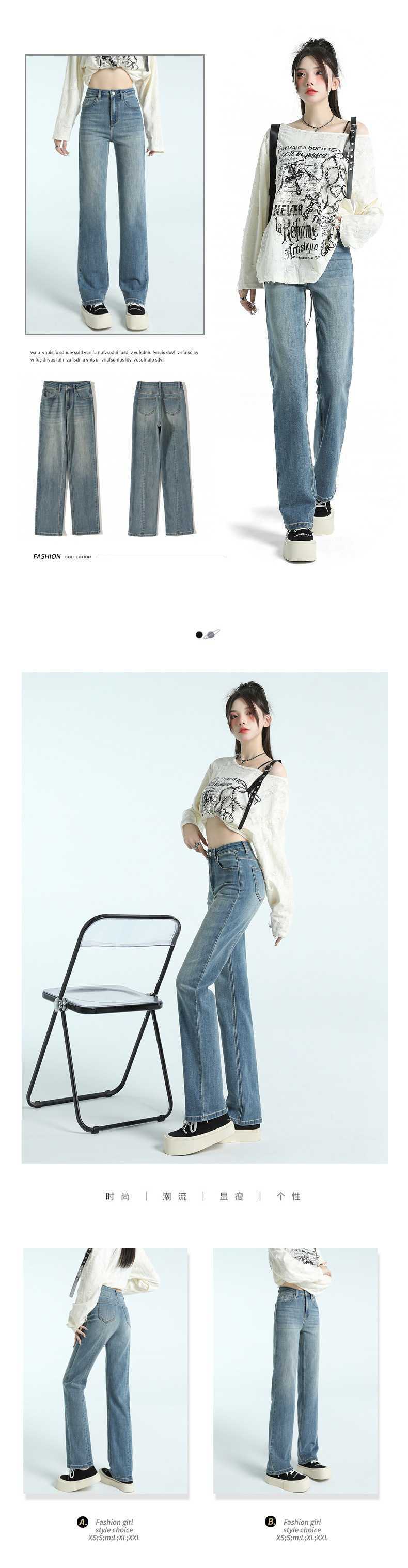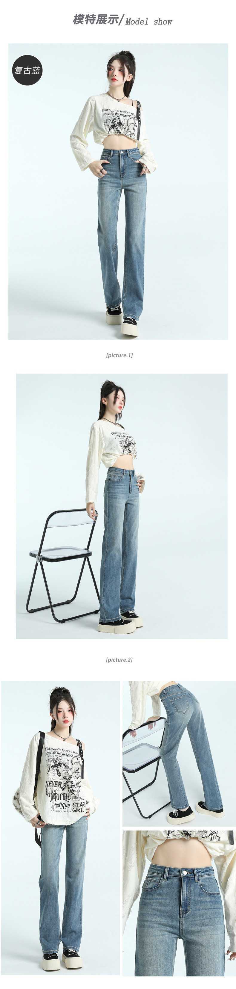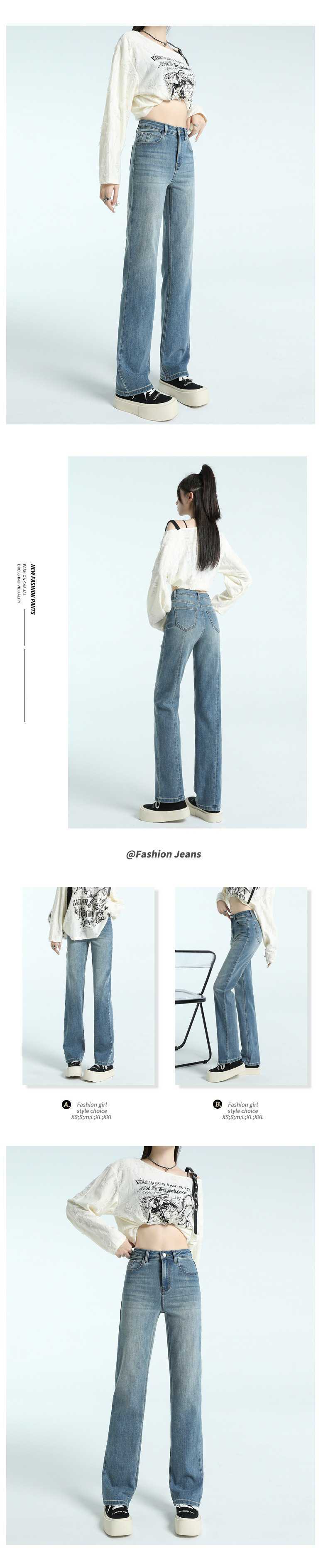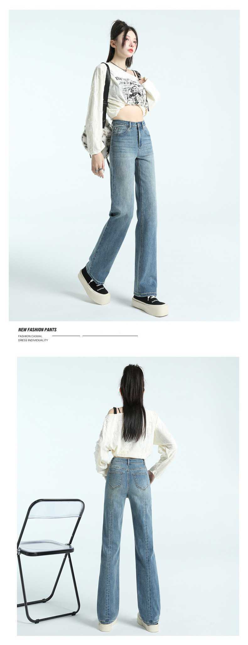 Pantalones vaqueros clásicos elásticos rectos versátiles tipo pitillo con largo extendido