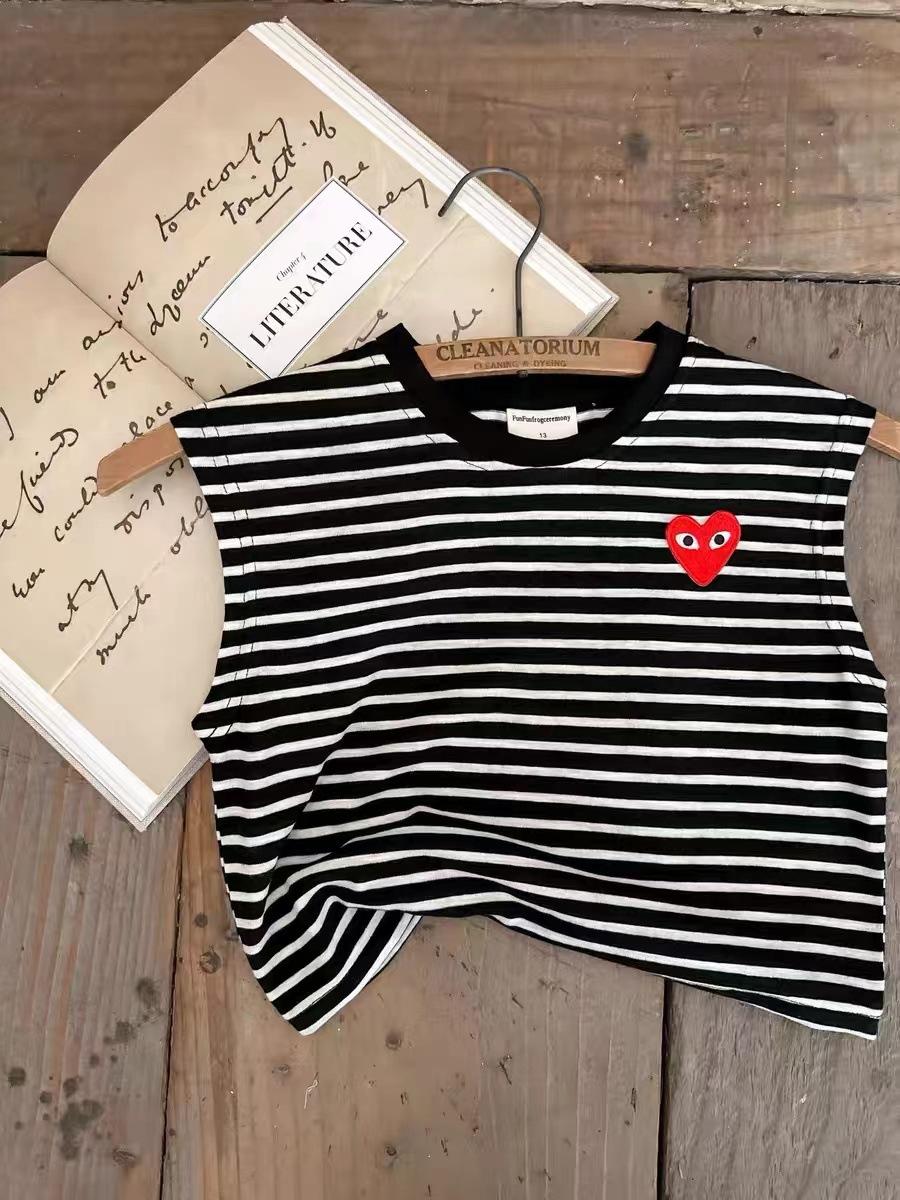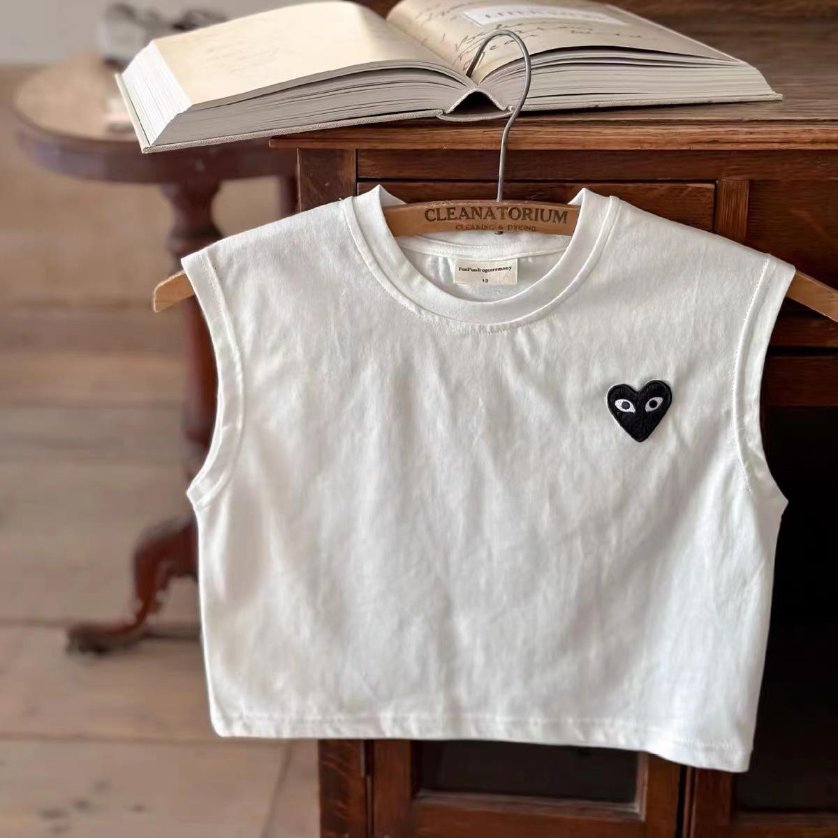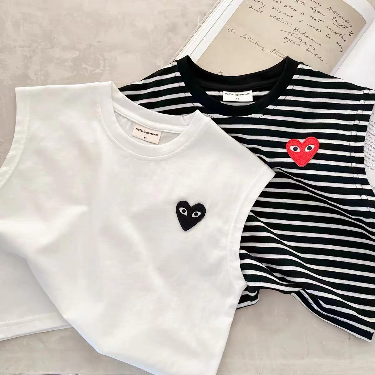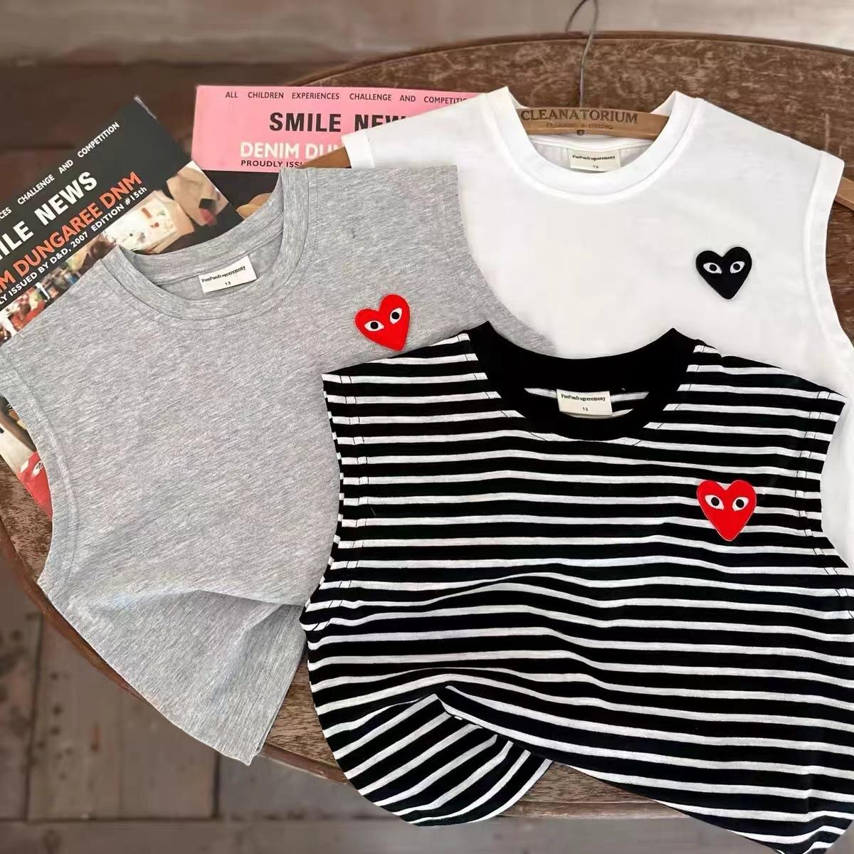Chaleco para Niños 2025 Verano Nuevo Estilo Niños y Niñas Etiqueta de Corazón Chaleco sin Mangas Bebé Color Puro Rayas Camiseta