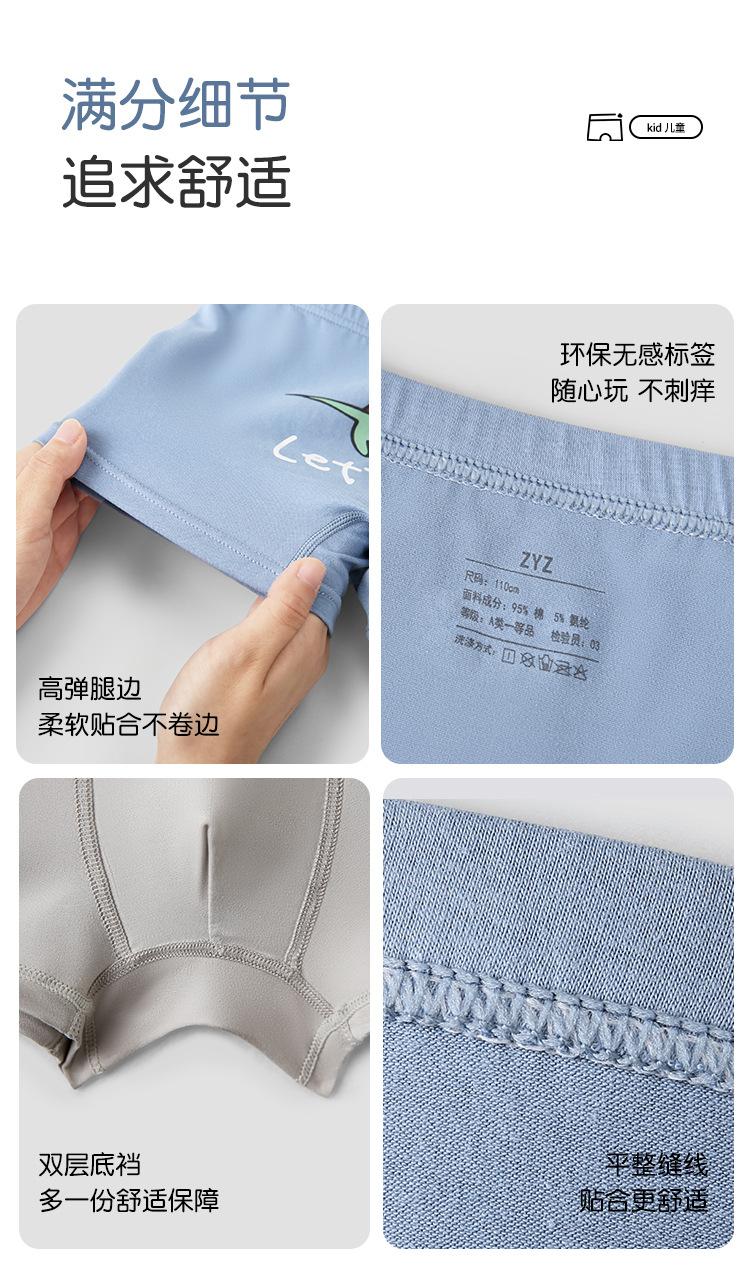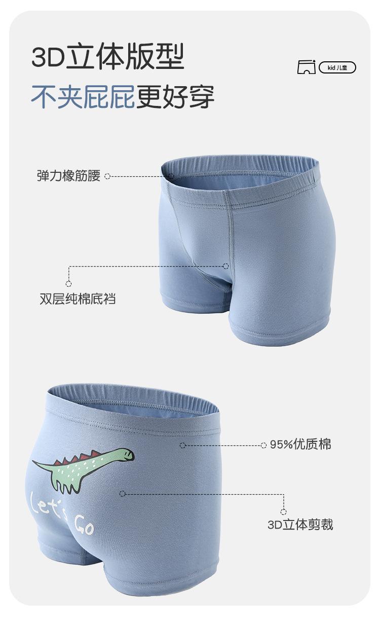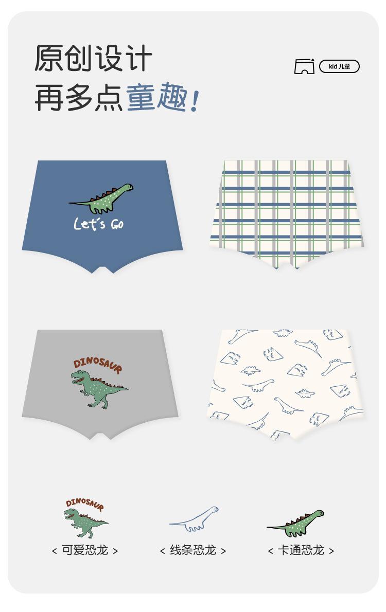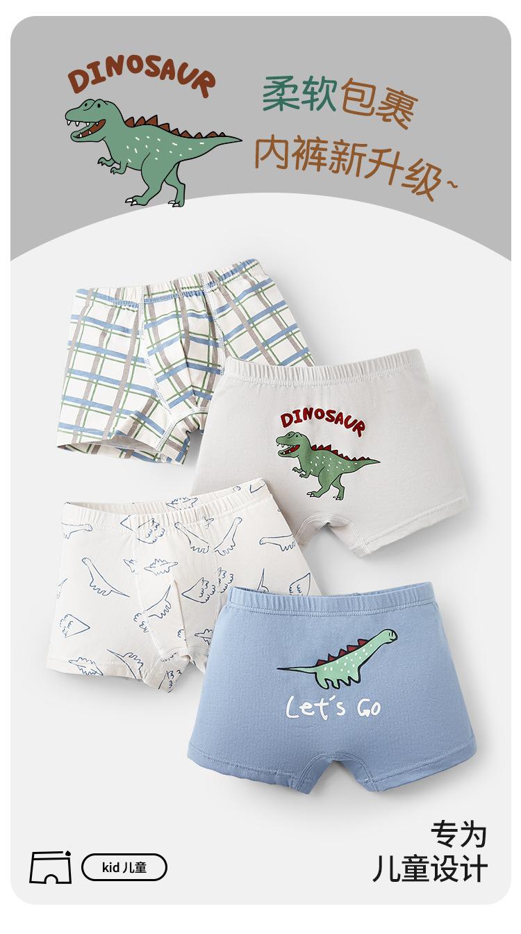 Ropa interior para niños, clase A, venta al por mayor, bóxer de bebé con dibujos de dinosaurios, paquete de cuatro, algodón, sin clip, PP, ropa interior para niños.