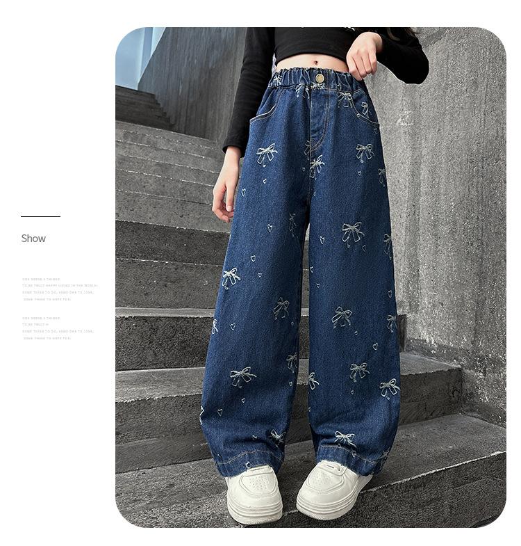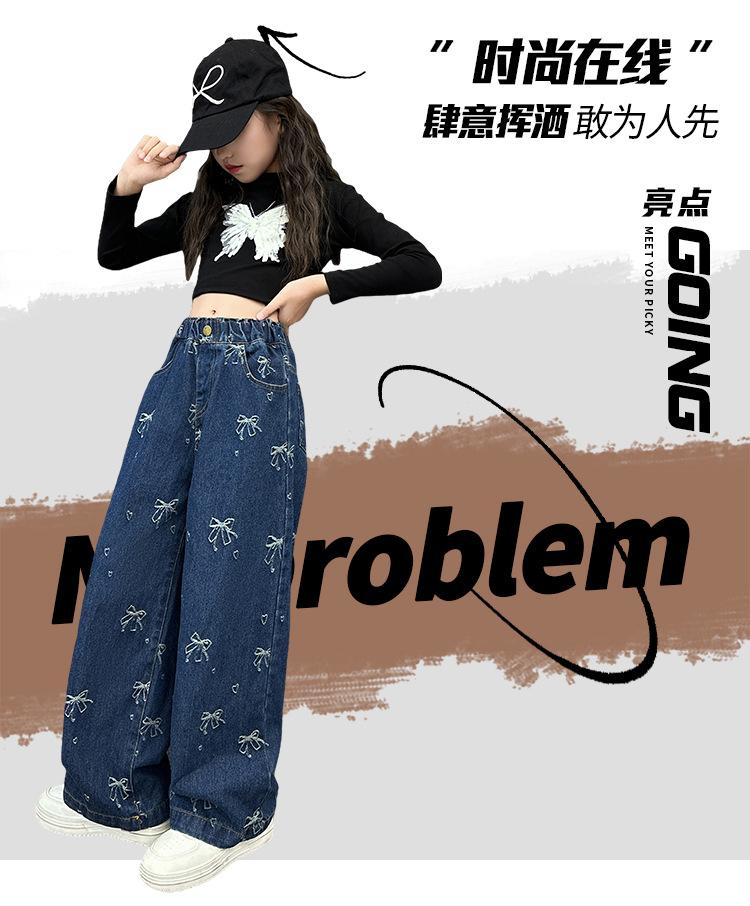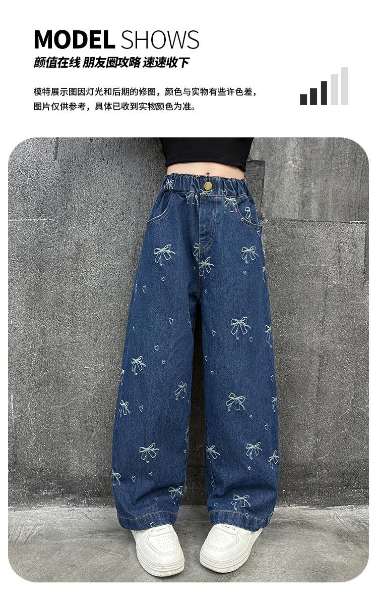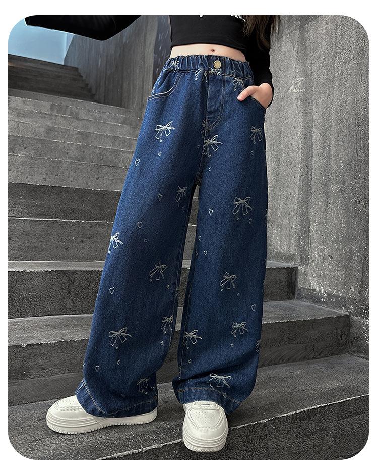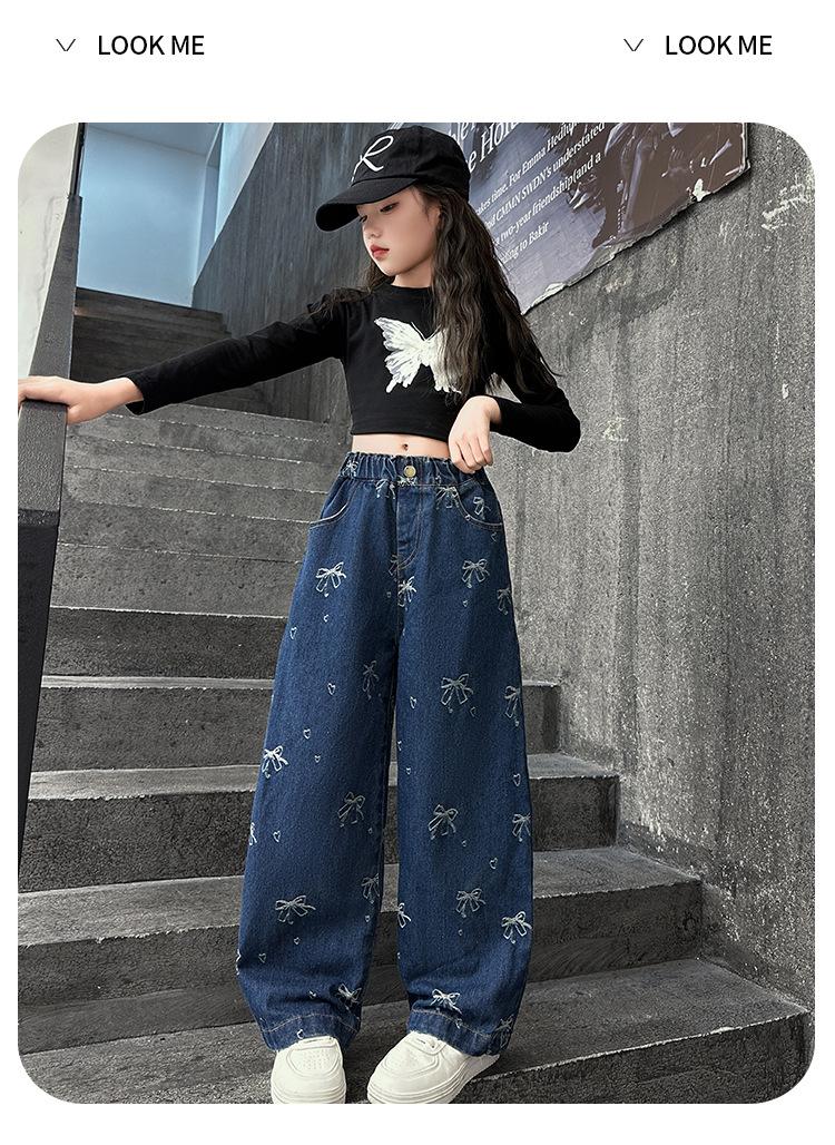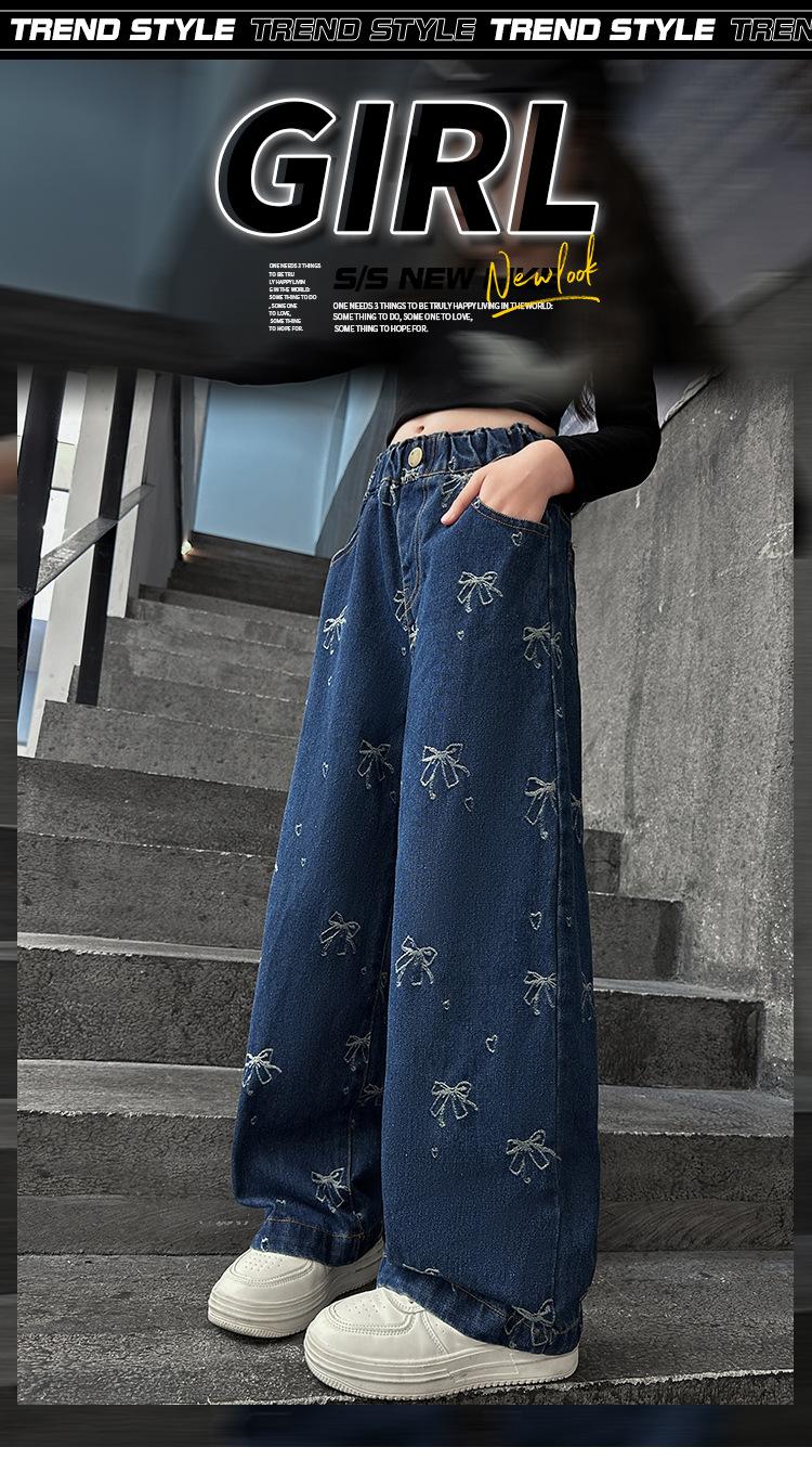 Pantalones vaqueros de otoño para niñas 2024, nuevos pantalones de pierna recta con estilo a la moda para niñas, pantalones de primavera y otoño para niños.